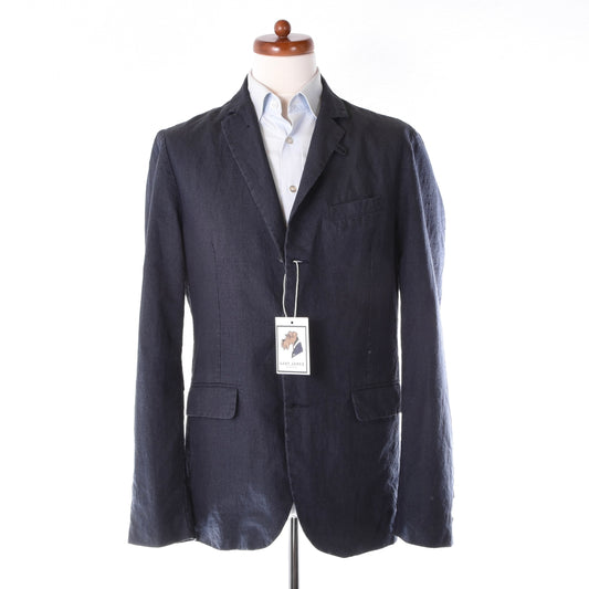 Calvin Klein Collection Leinenjacke mit Lederkragen Größe 48/38 Brustumfang ca. 51,5cm - Mitternacht