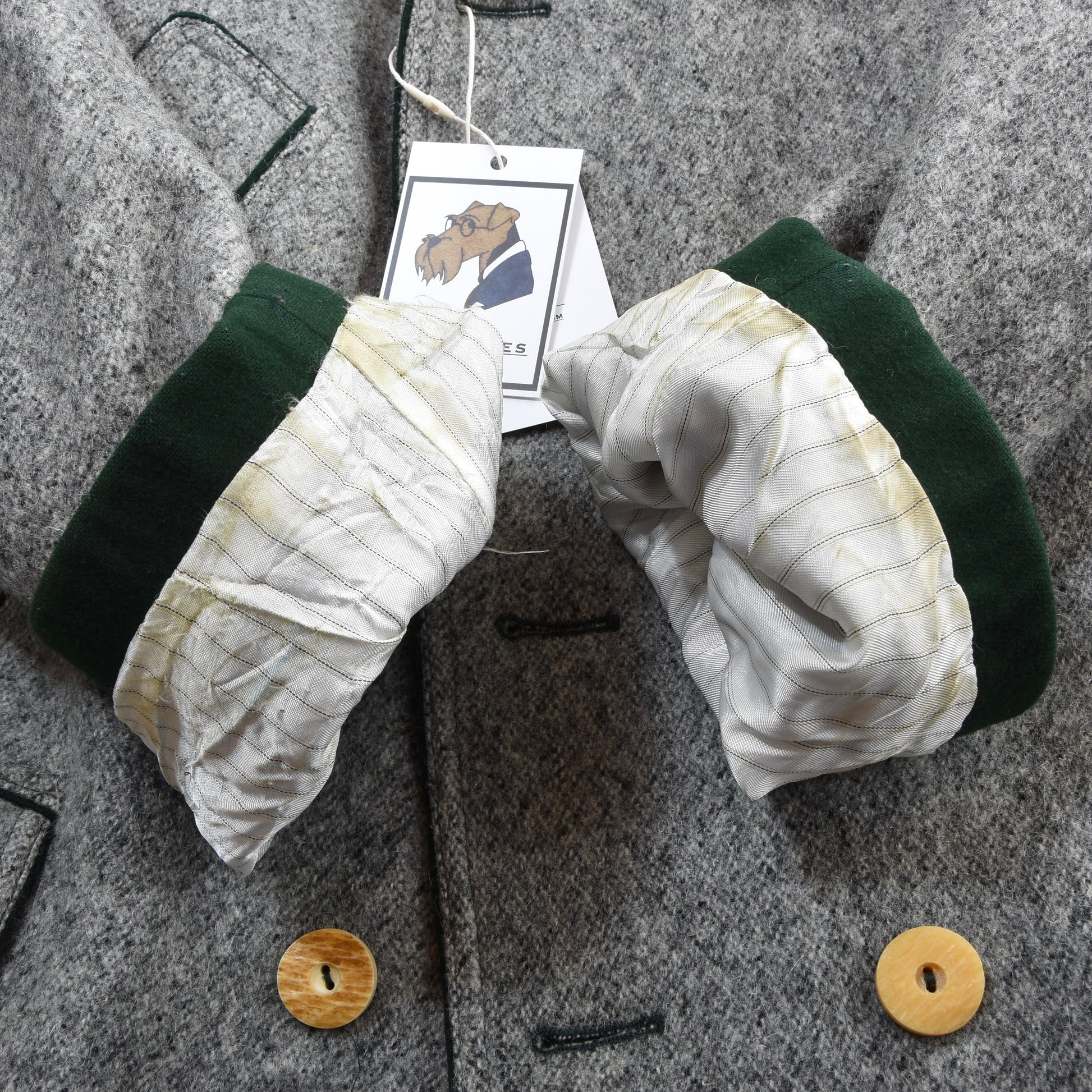 Zustand: Gebraucht. Ärmelinnenfutter fleckig. Geringe Tragespuren am Kragen und Ärmelstulpen.