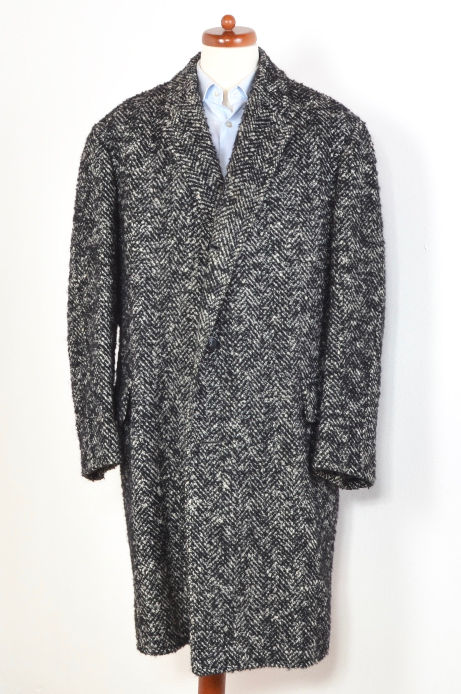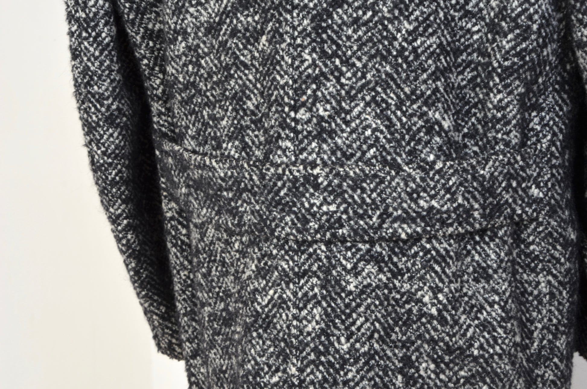 Handgefertigter Tweed-Mantel in Schwarz-Weiß, Größe 54. Aus Holsten Tweed (Wolle).