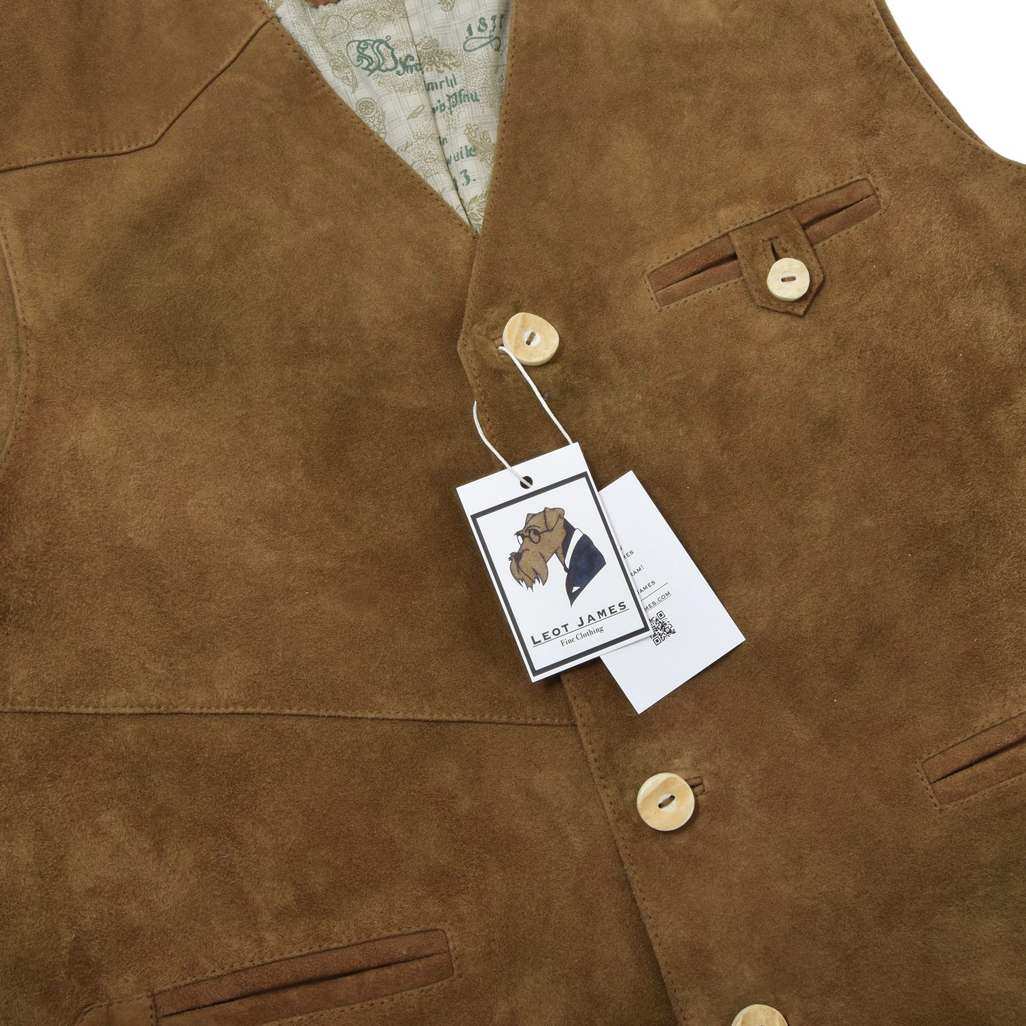 Speith & Wensky Weste/Trachtenweste aus Ziegenwildleder Größe 54 ca. 59cm - Hellbraun/Braun