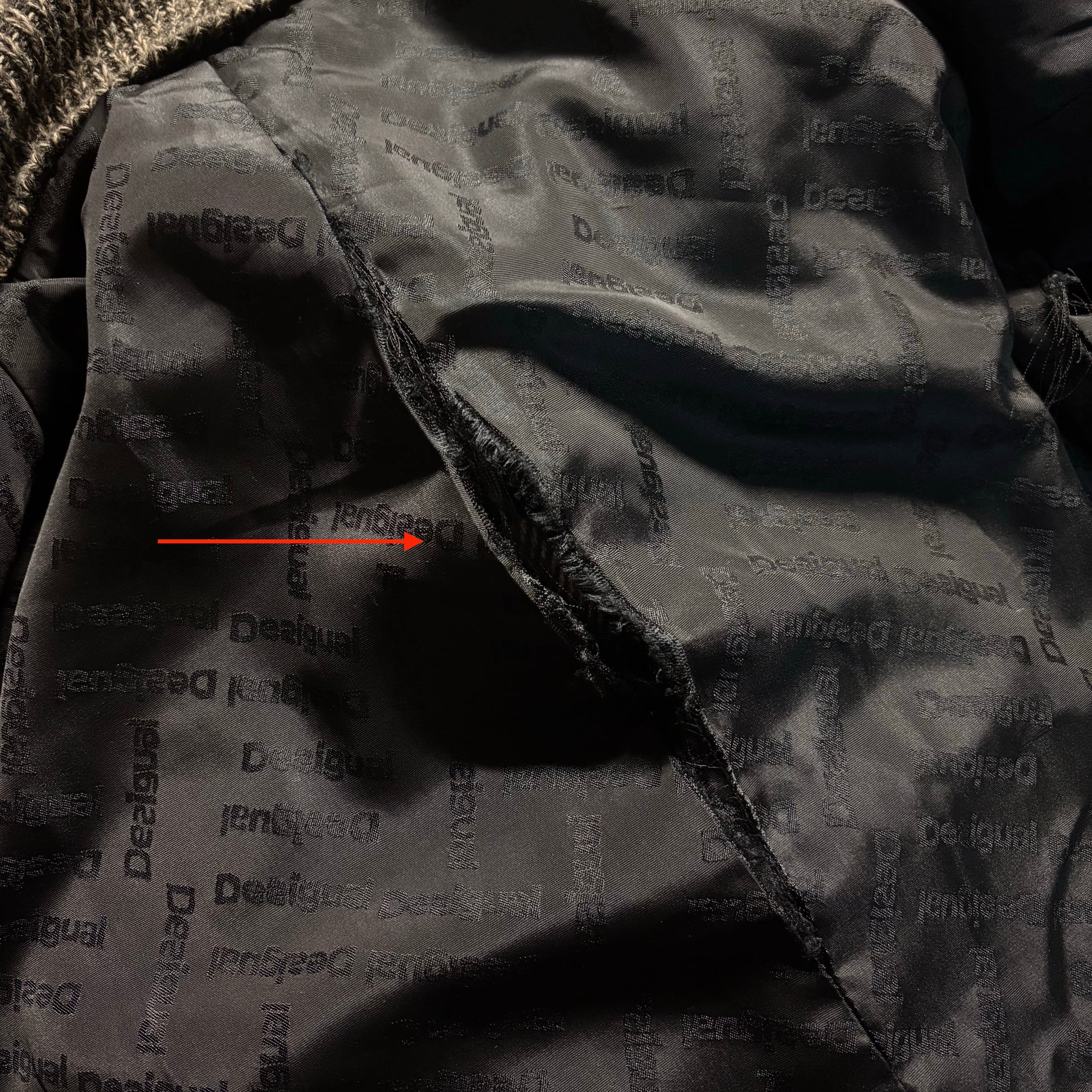 Condition: Used condition. Seam in lining completely torn, see photos.