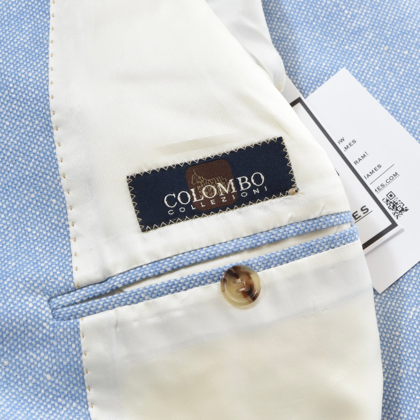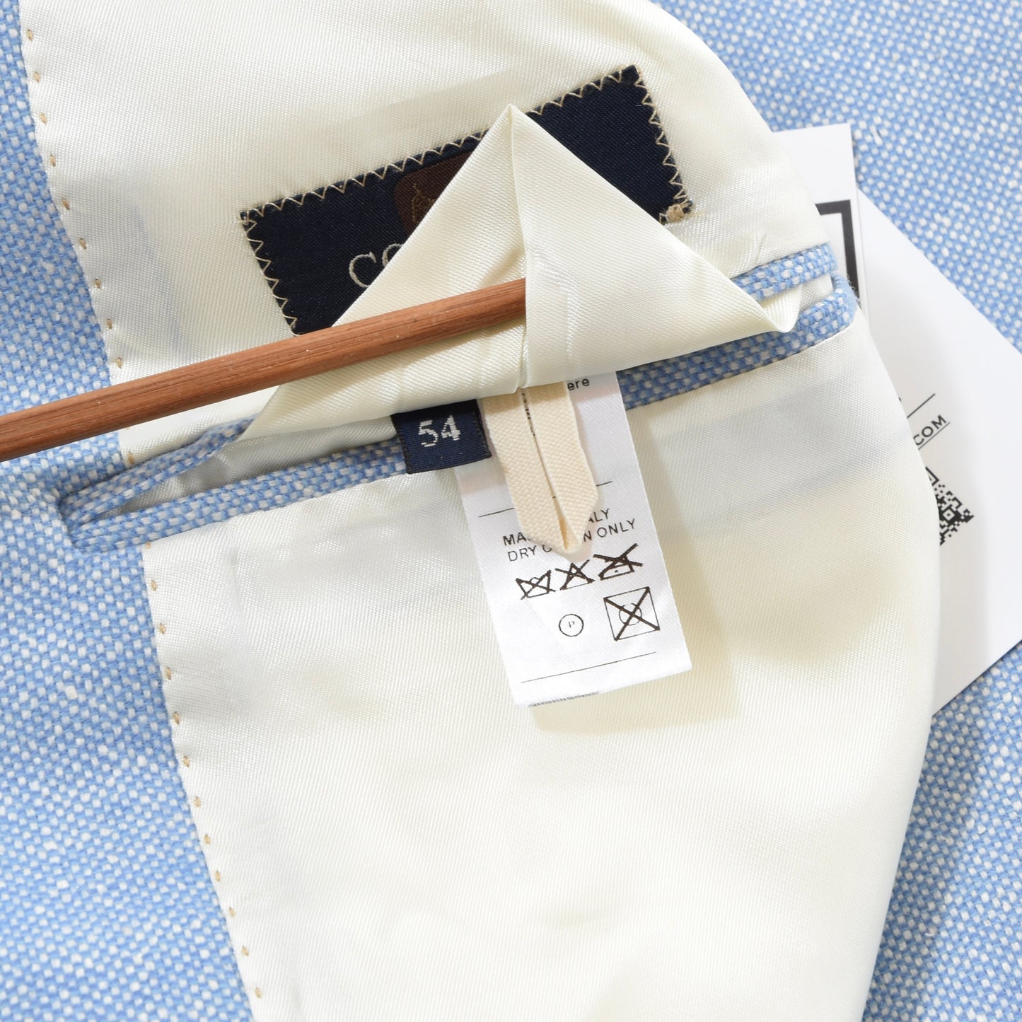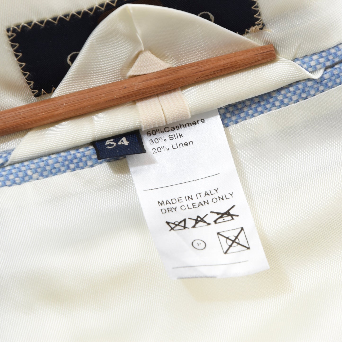 Colombo Collezioni cashmere-silk-linen jacket, size 54. Made in Italy of 50% cashmere, 30% silk, and 20% linen.