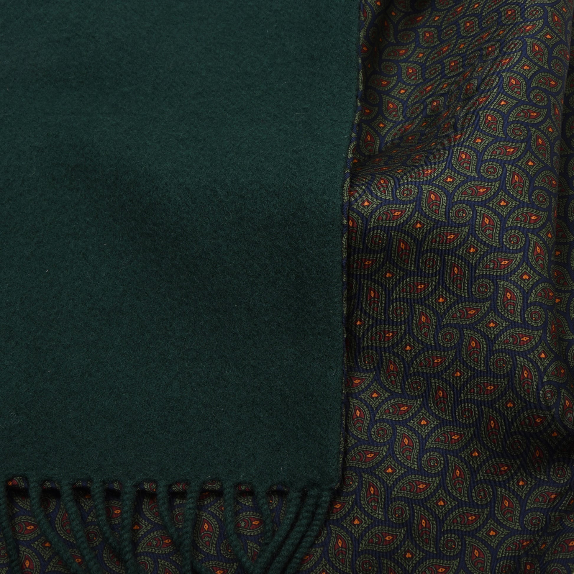Double-Sided Silk/Wool Scarf ca. 150cm - Green Neat