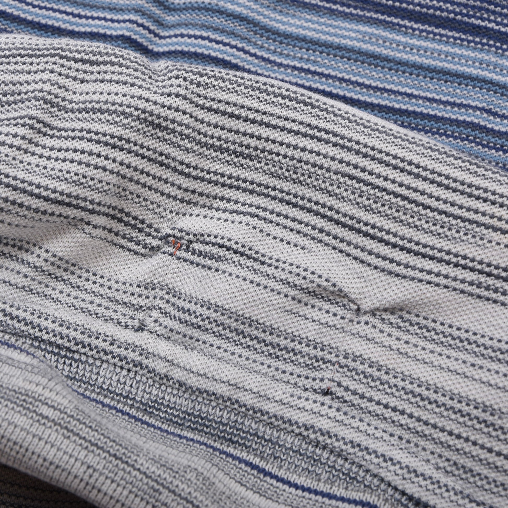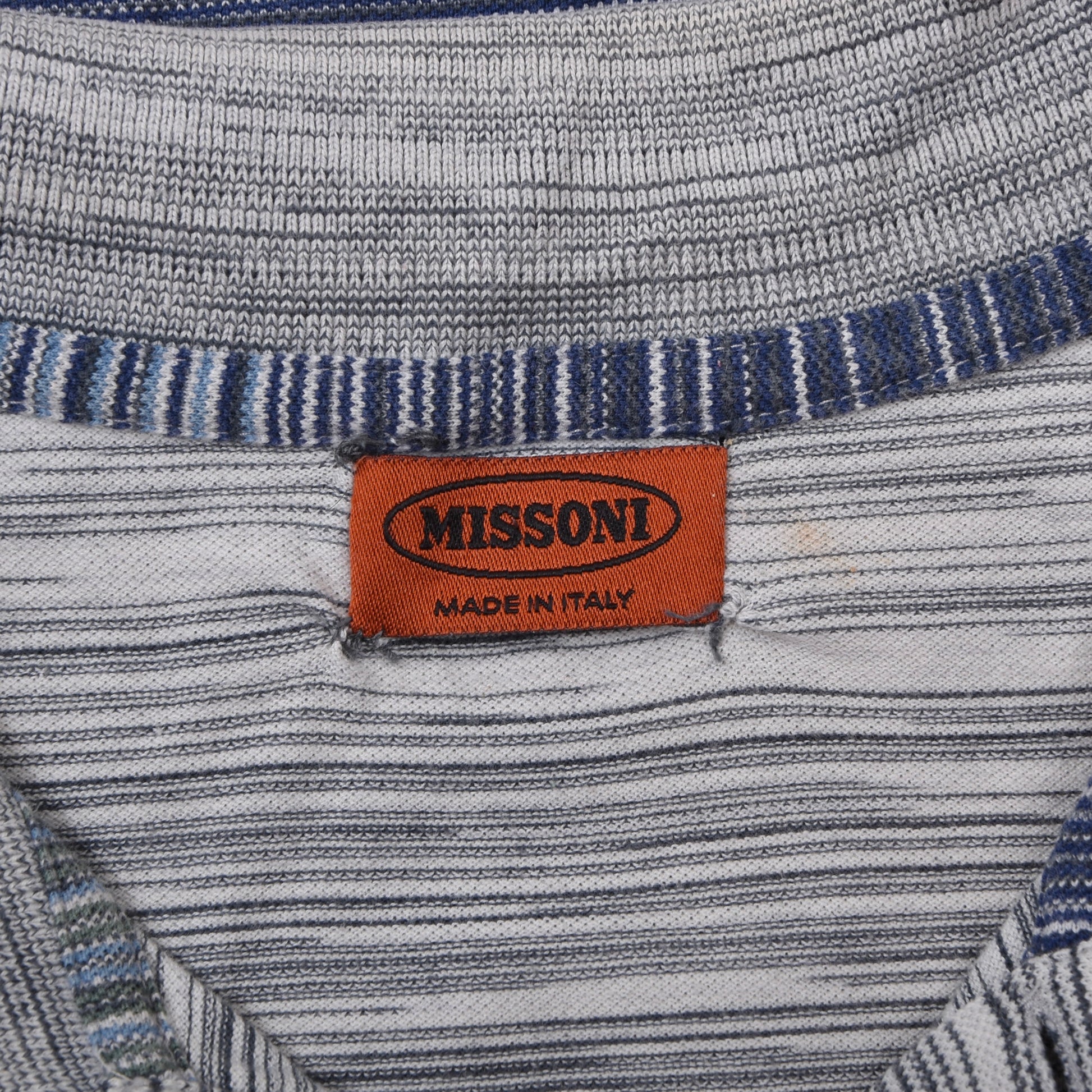 Missoni polo shirt, size L (see measurements). Made in Italy. No fabric content tag, but made of cotton.