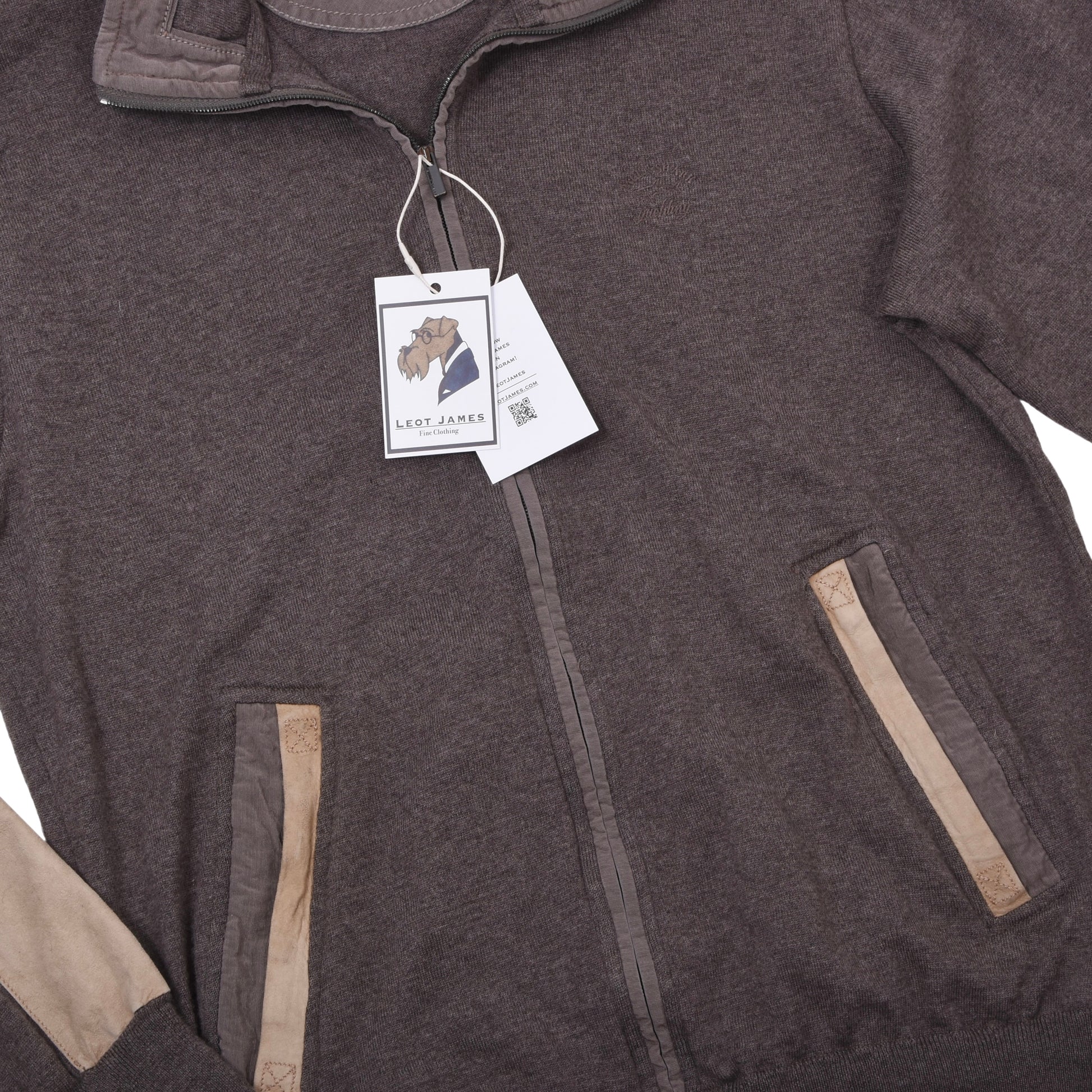 Paul & Shark 100% Wool Cardigan Sweater Feat. Leather Details Size L Chest ca. 55cm - Brown