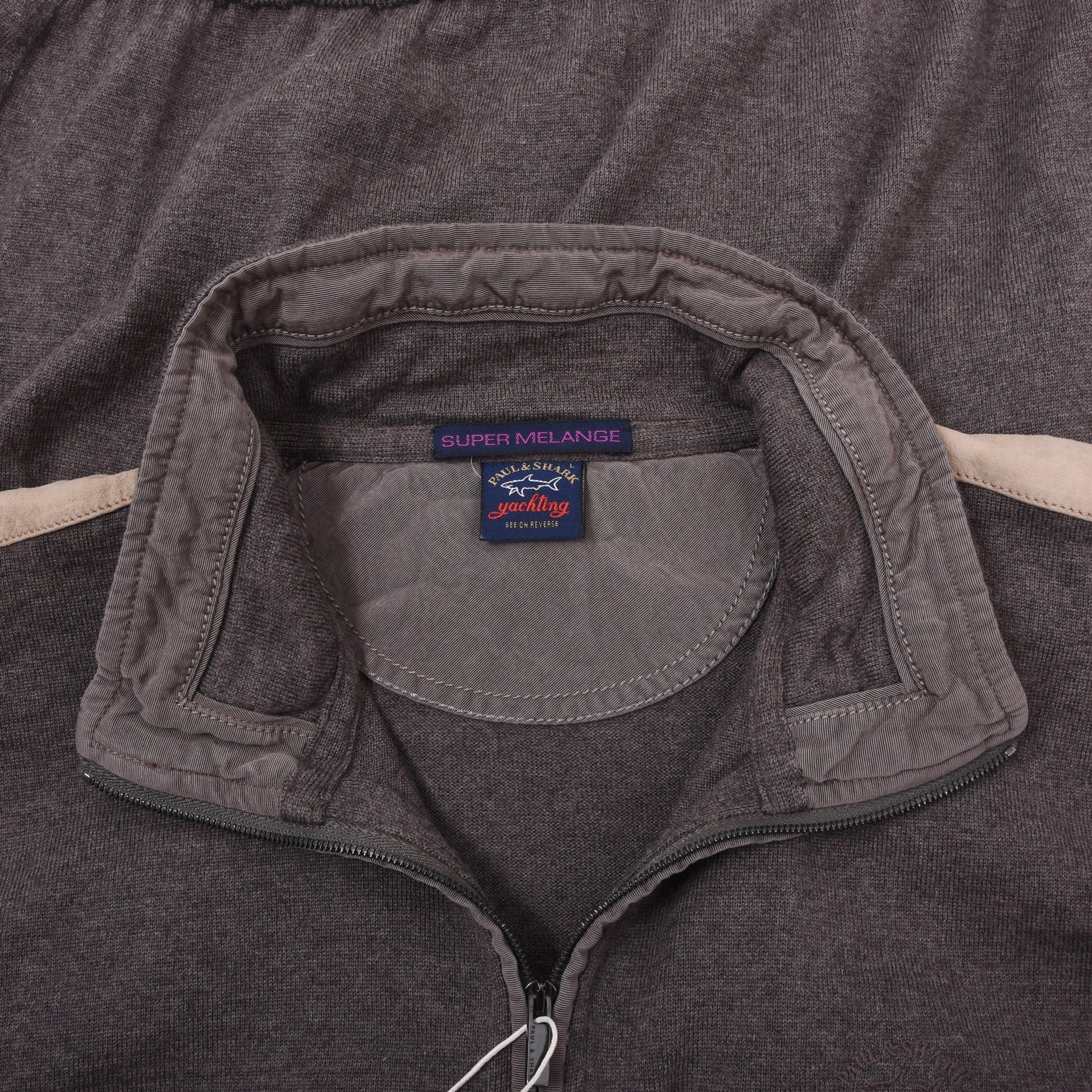 Paul & Shark wool cardigan, size L. Made in Italy of 100% wool with leather accents.