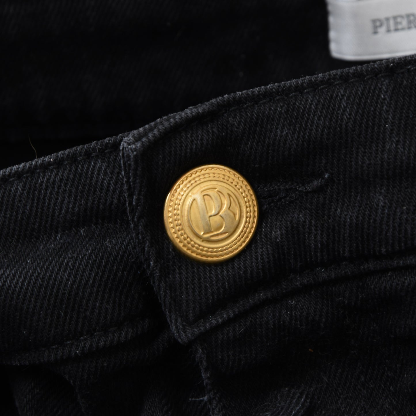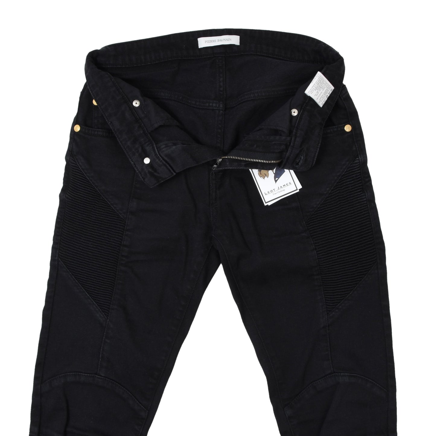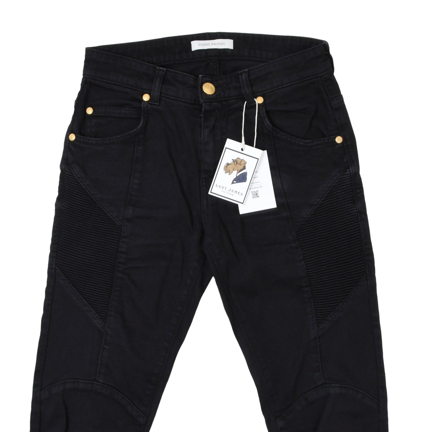 Pierre Balmain moto jeans, size W30. Made in Italy of 98% cotton and 2% elastane.