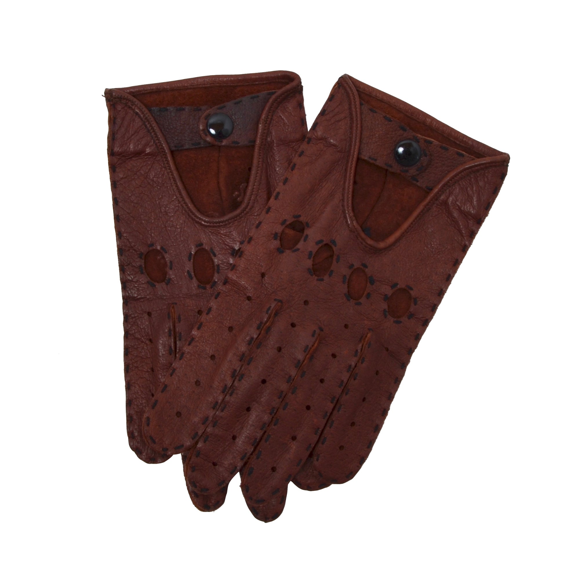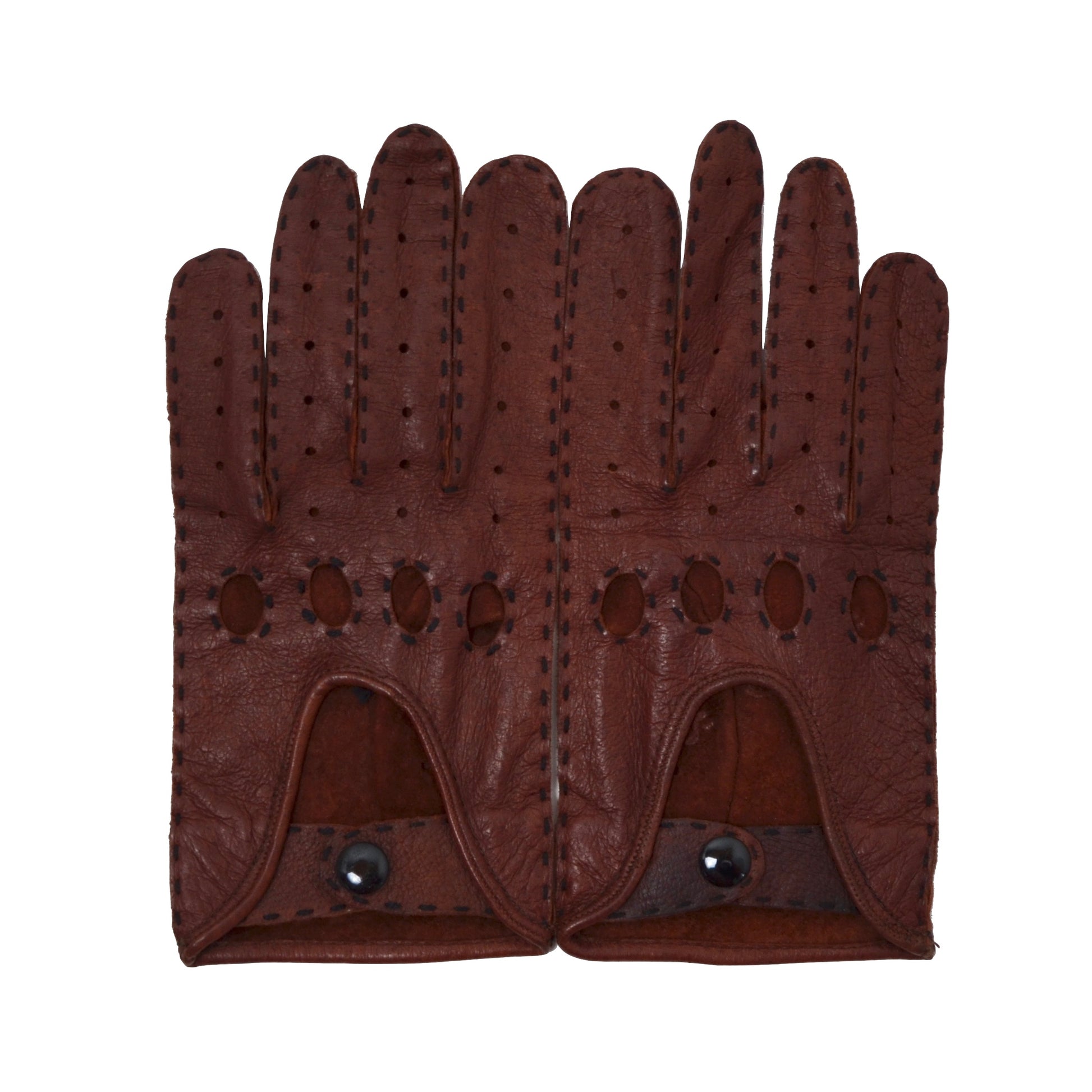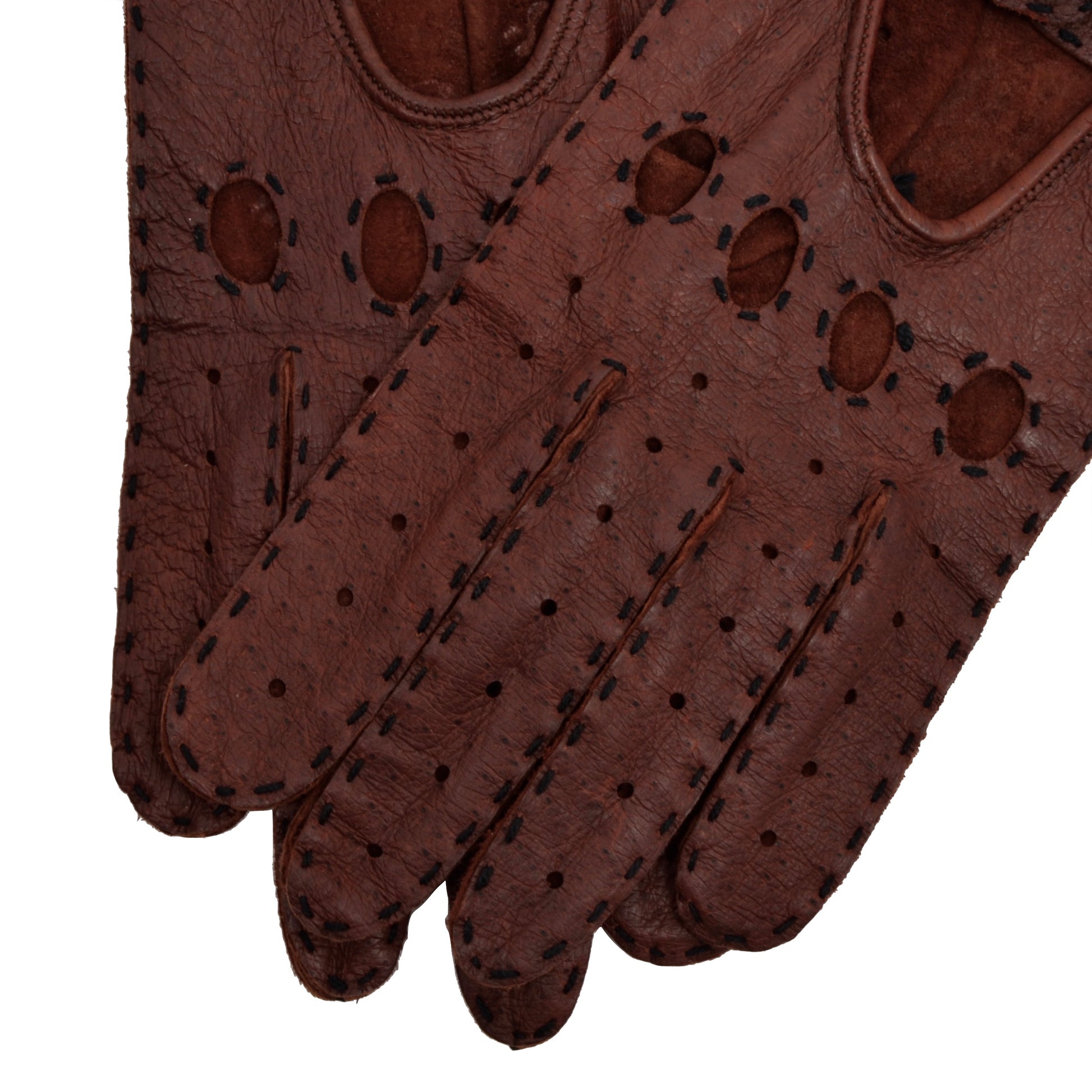 Unlined Leather Driving Gloves - Burgundy/Brown