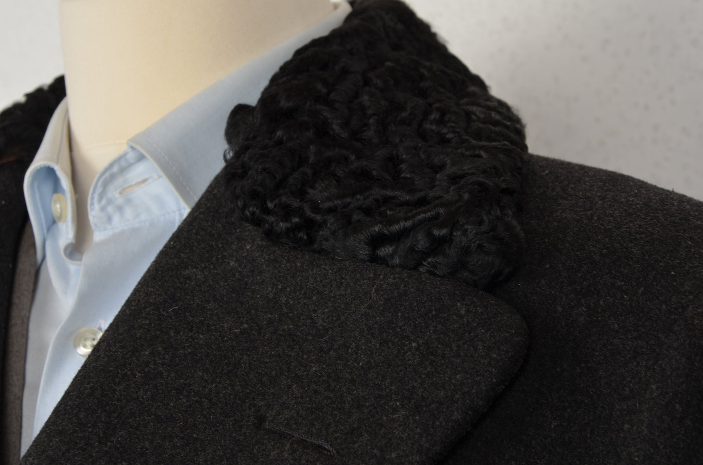 1940 Maßgeschneiderter zweireihiger Mantel Astrakan-Kragen - Anthrazit