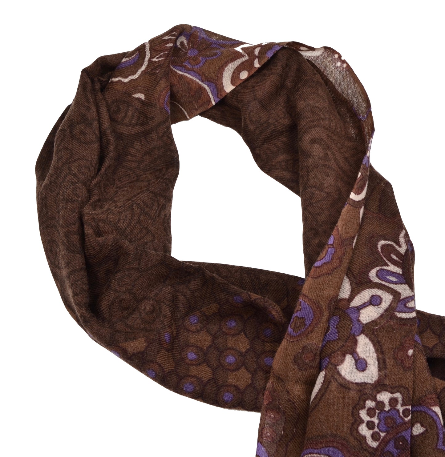 Andrew's Ties Extra langer Wollschal aus Gaze – Braunes Blumenmuster
