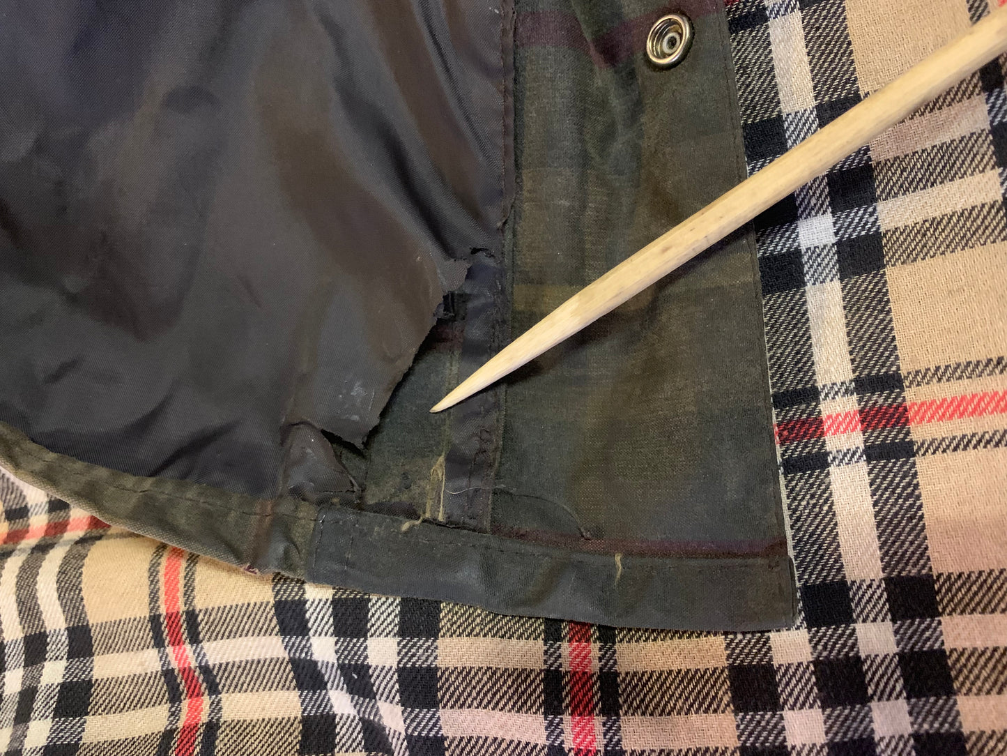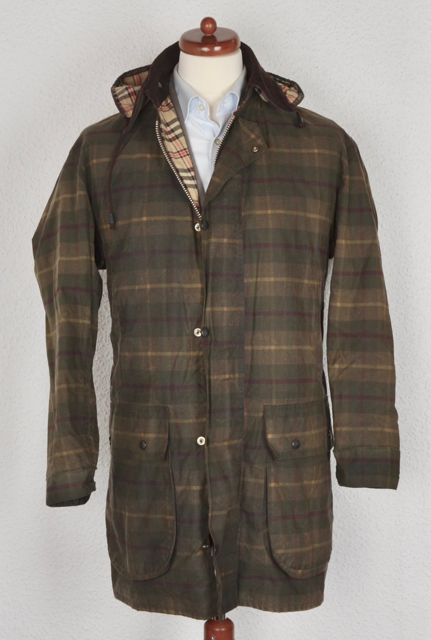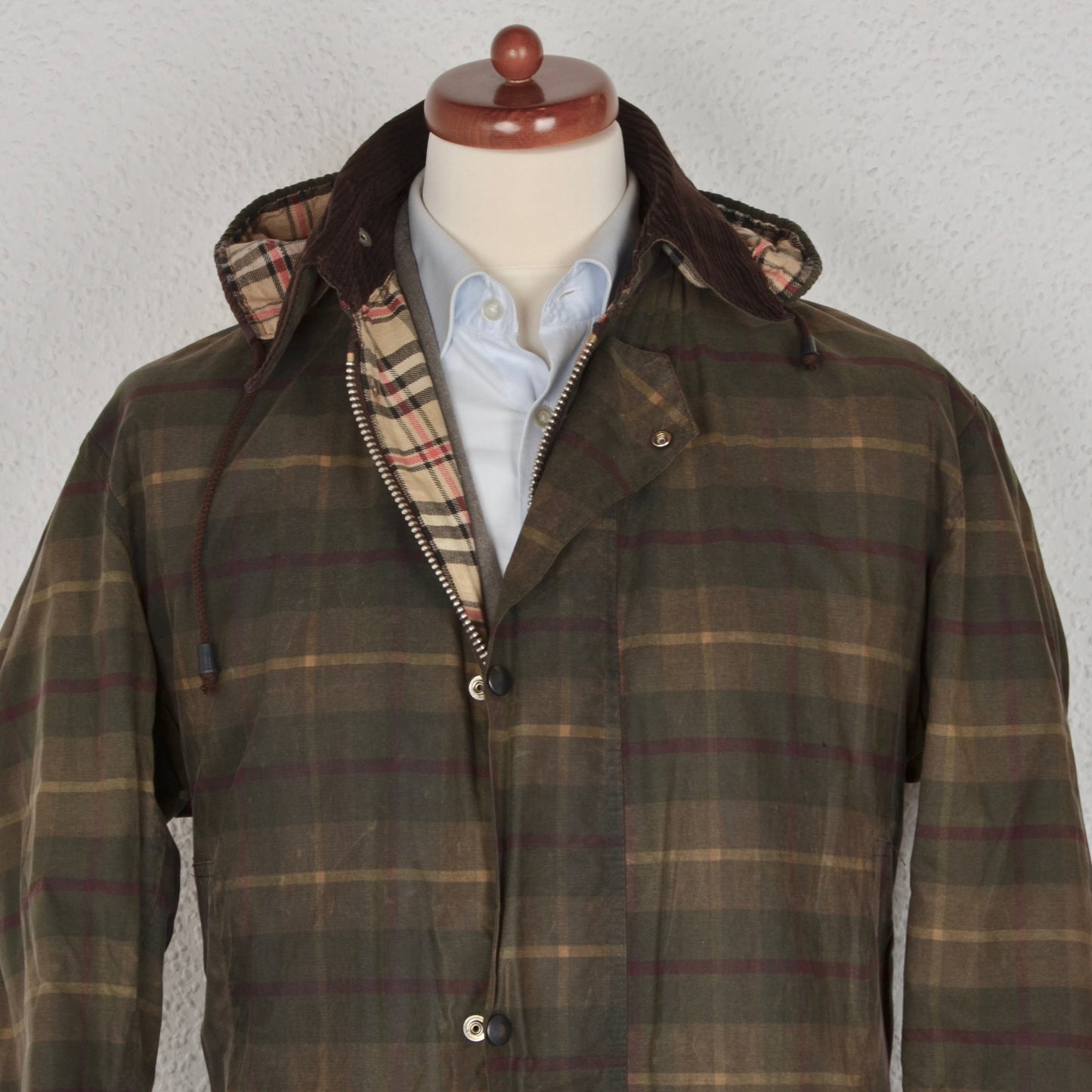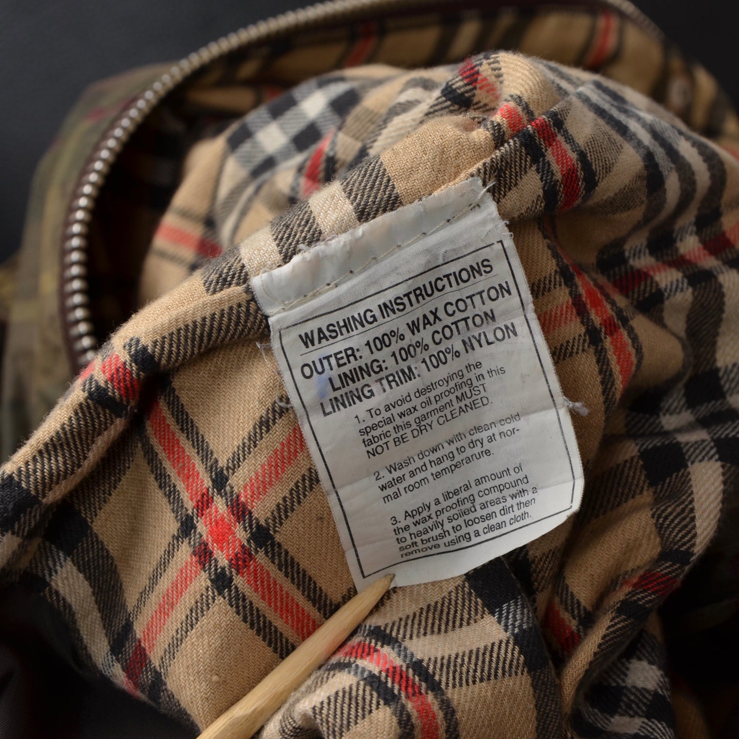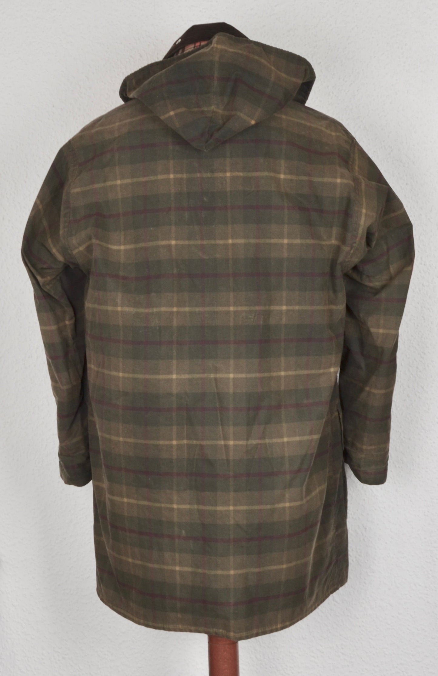 Zustand: Gebrauchter Zustand. Innere Ecke des Futters gerissen. Riecht wie eine typische Wachsjacke.