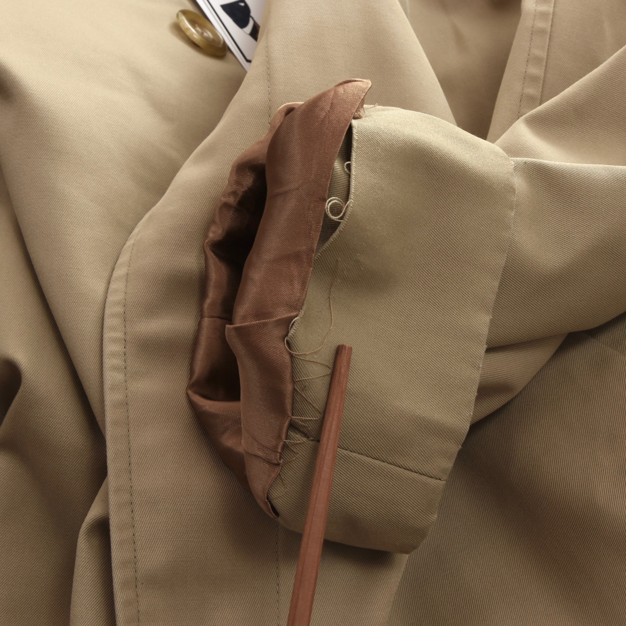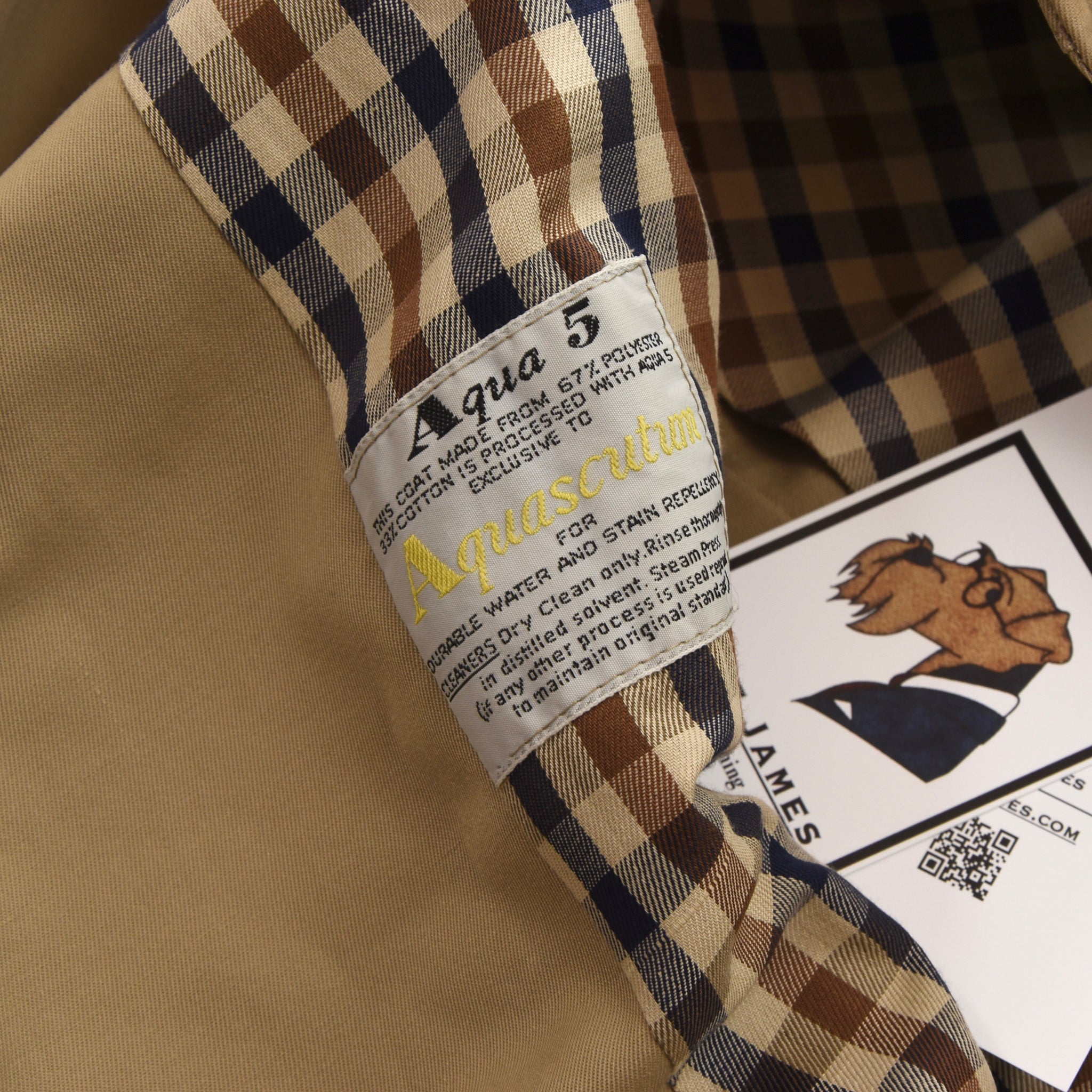 Klassischer Trenchcoat von Aquascutum. Hergestellt in England aus 67 % Polyester und 33 % Baumwolle. Kein Größenschild.