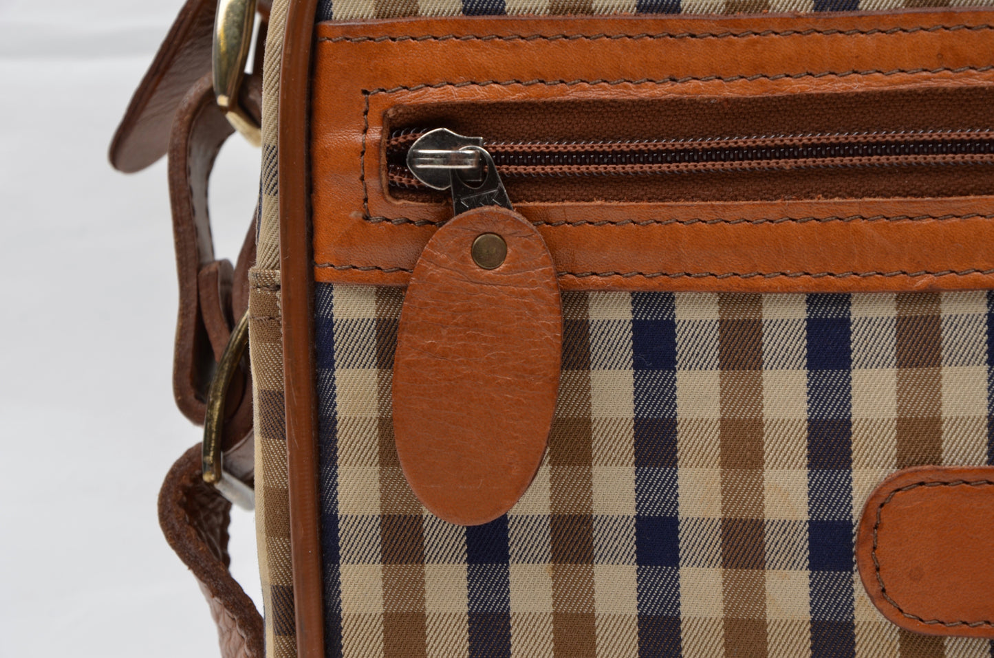 Umhängetasche mit House Check-Muster von Aquascutum London. Hergestellt in England.