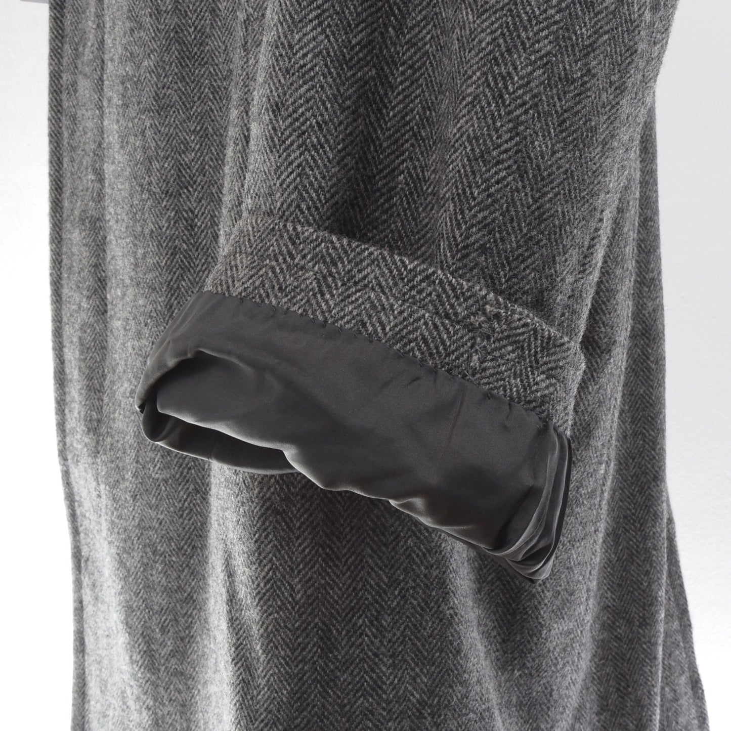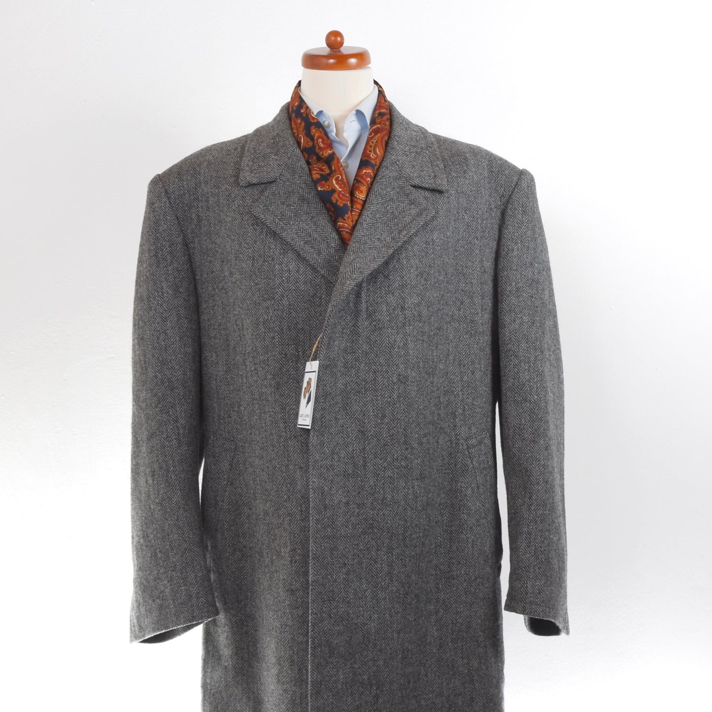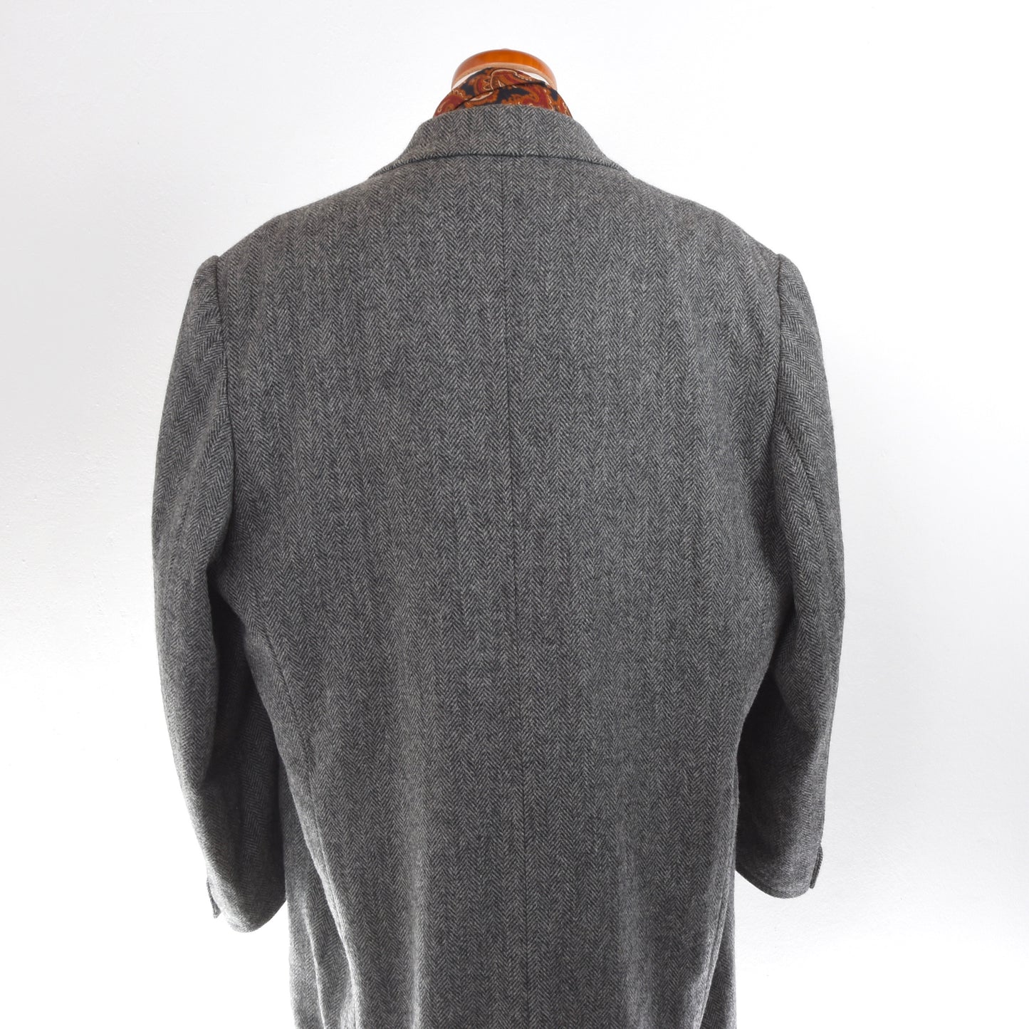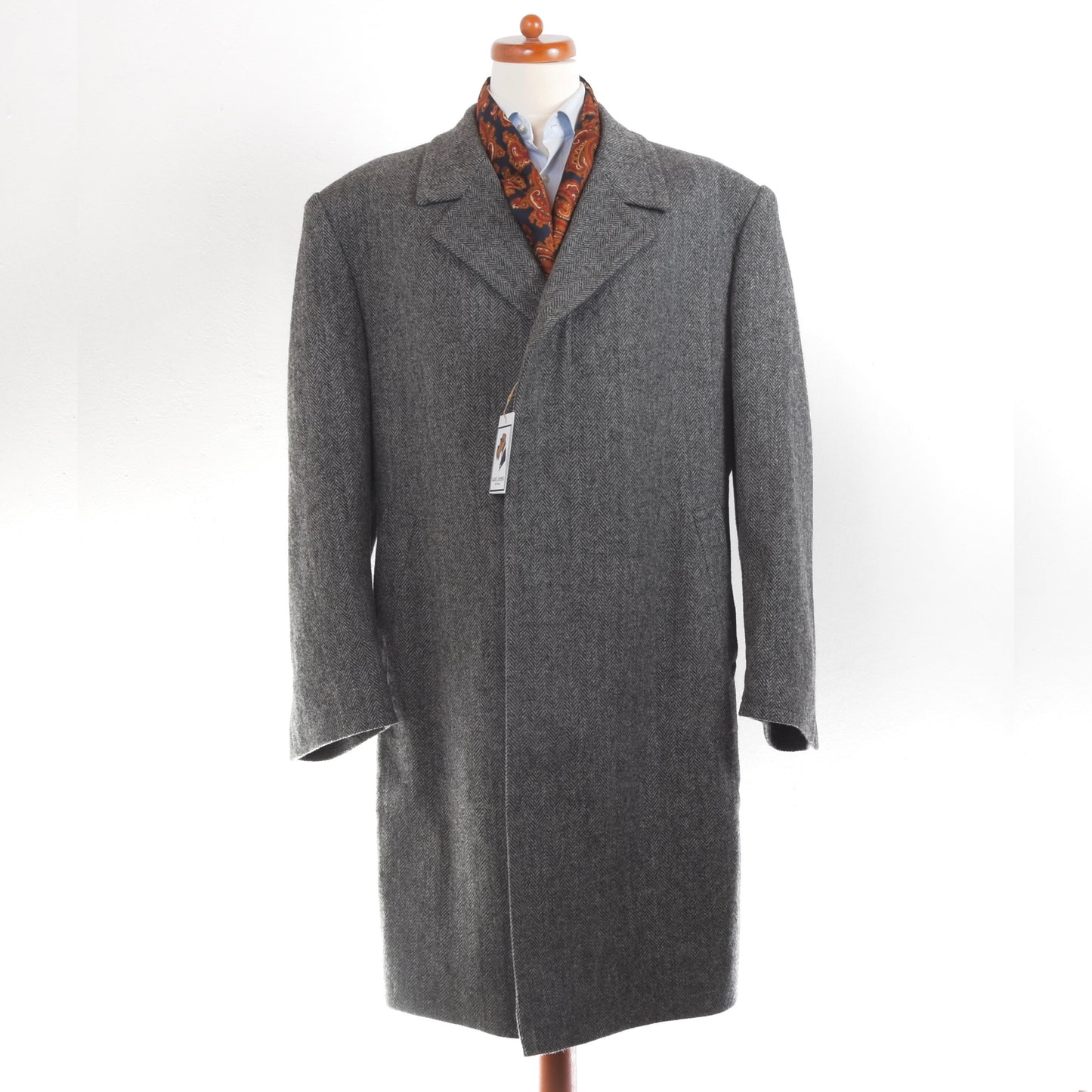 Maßgeschneiderter Mantel in Grau. Dies ist ein maßgeschneiderter Mantel und hat daher keine Größe, bitte sehen Sie sich die Maße an. Kein Stoffetikett, sondern aus Scabal-Wolle.