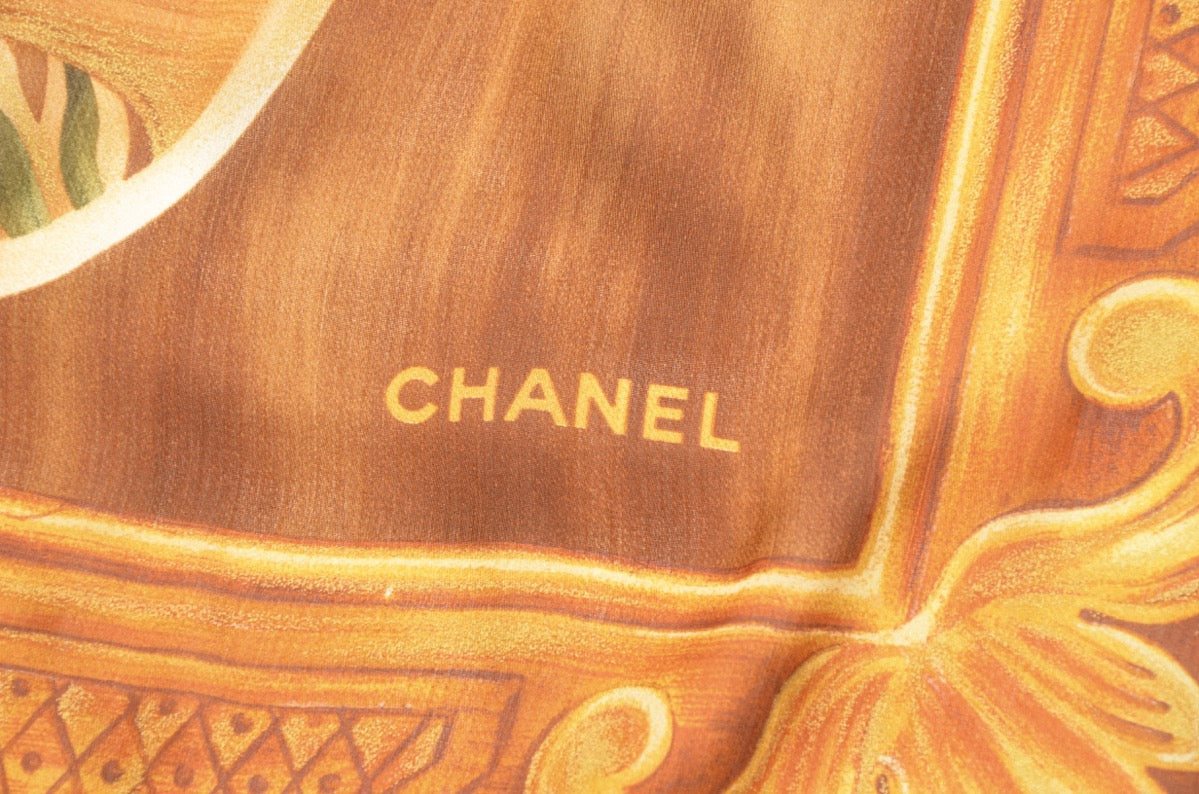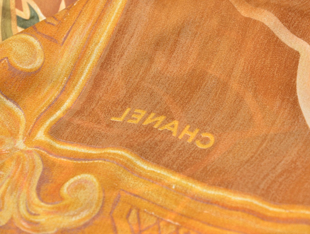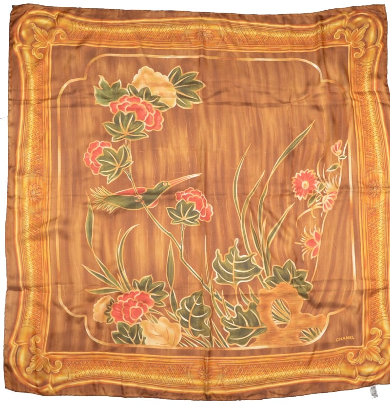 Chanel-Schal mit japanisch inspiriertem Druck. Hergestellt in Italien aus 100 % Seide.