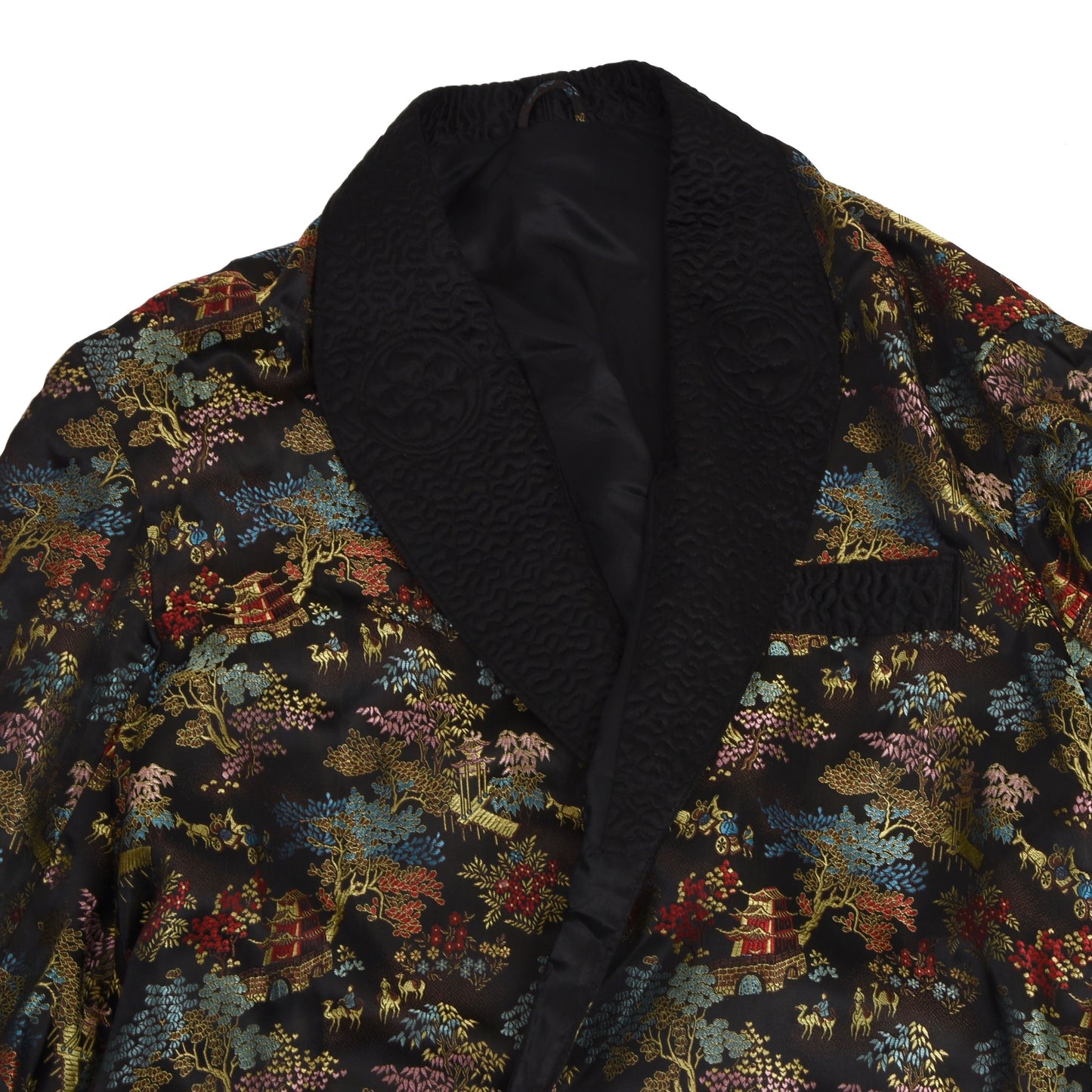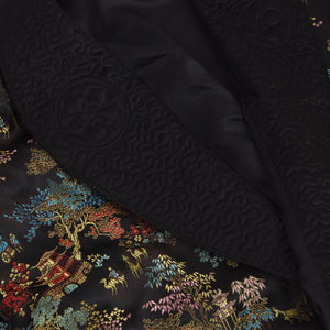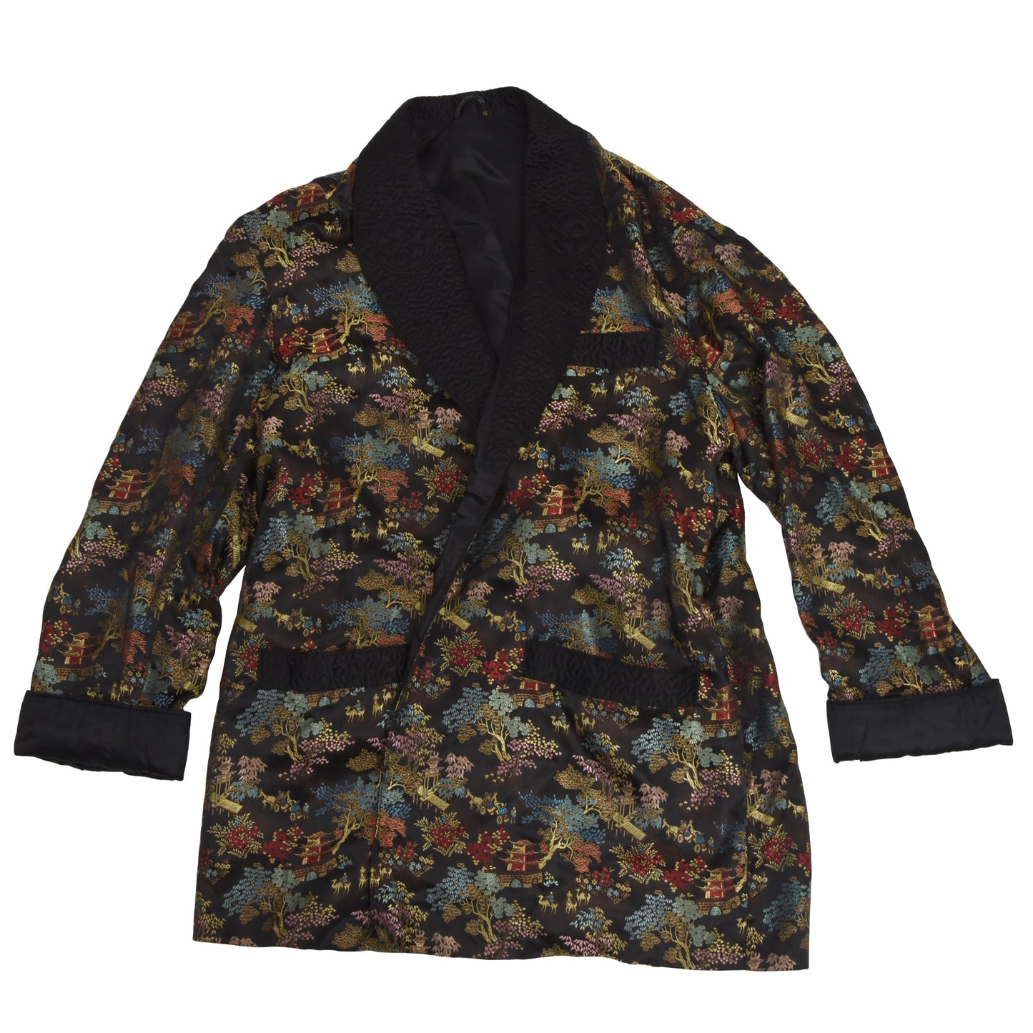 Bestickte Smokingjacke/Bademantel. Kein Stoffinhalts-/Größenetikett, aber aus Viskose.