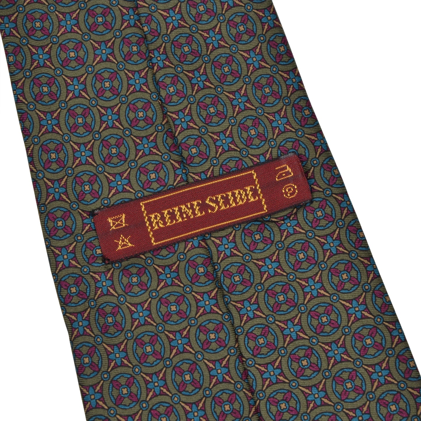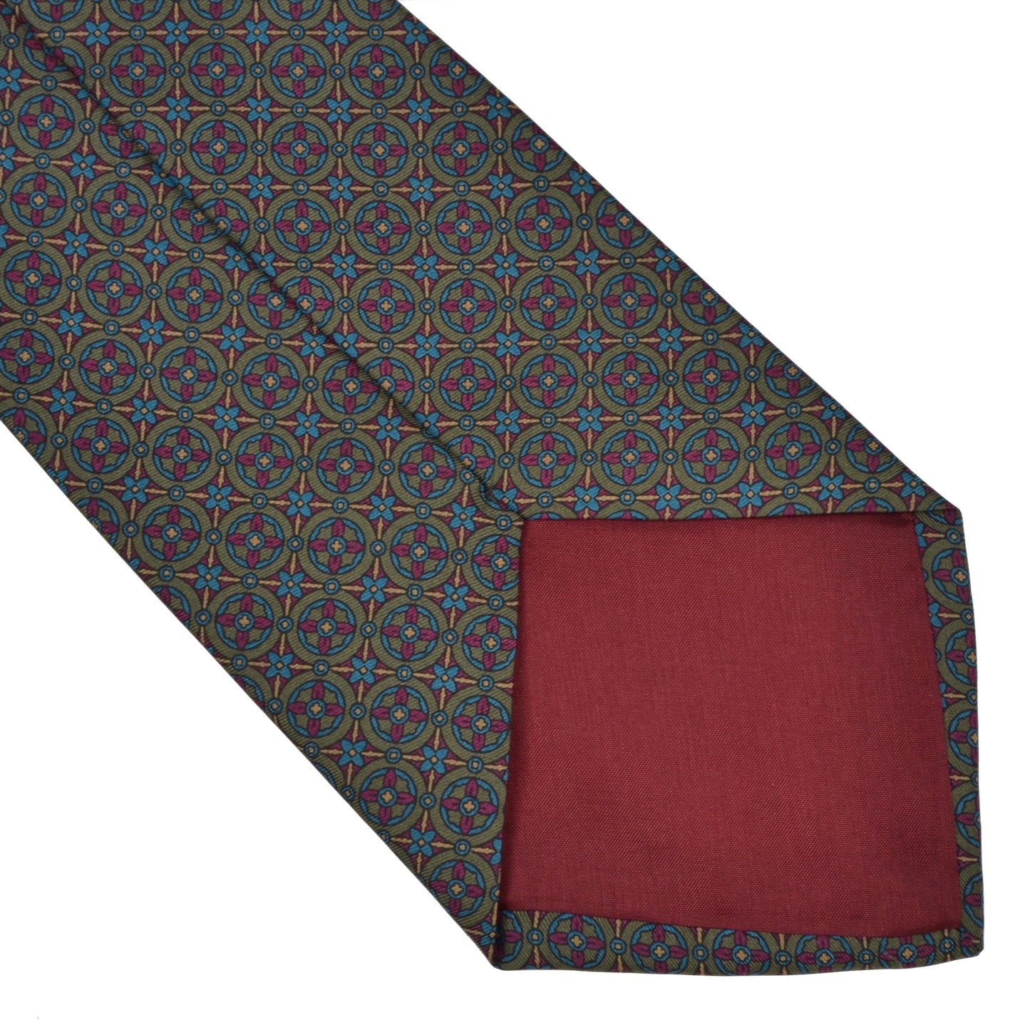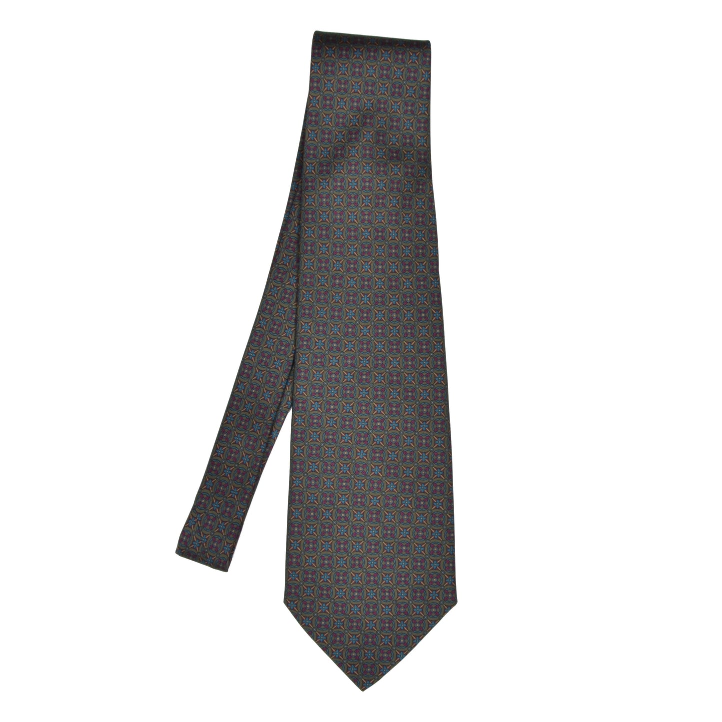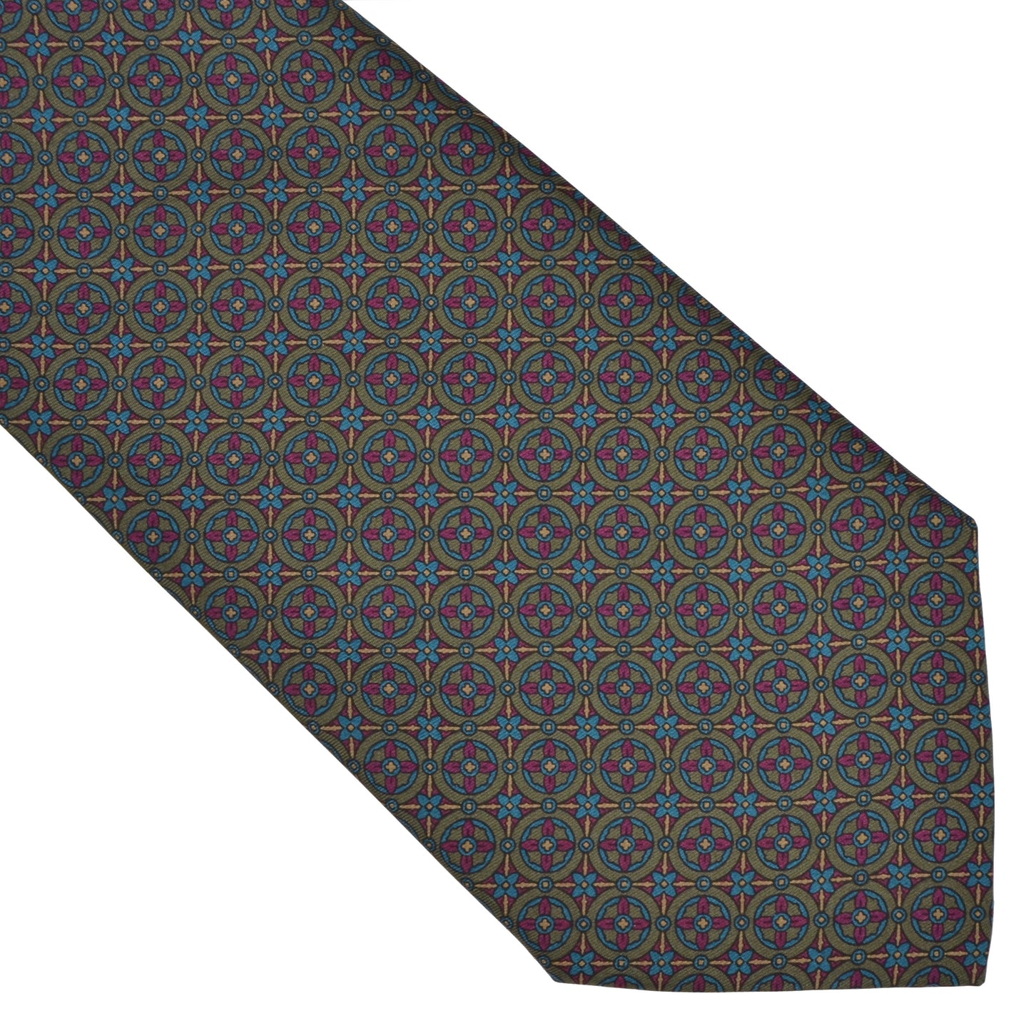 Klassische Seidenkrawatte mit Blumendruck - Grün & Lila