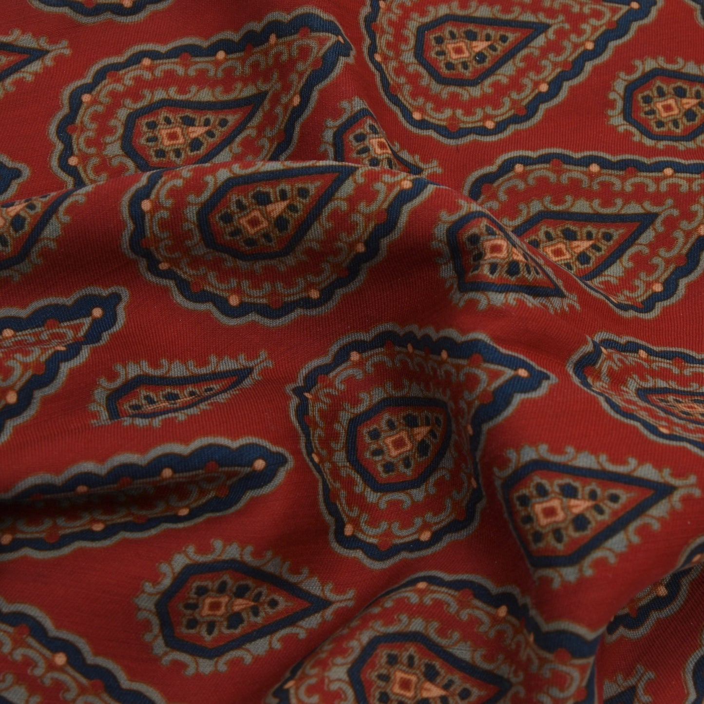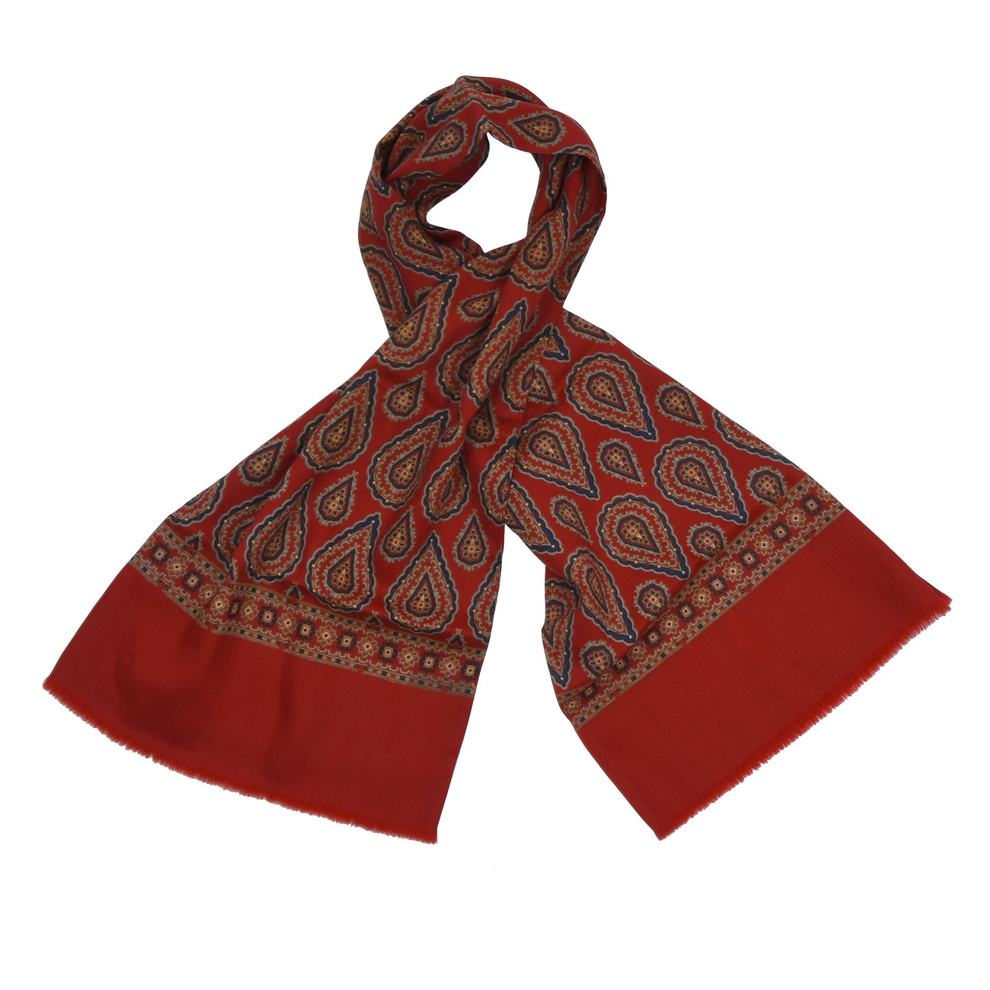 Klassischer Challis-Kleiderschal aus Wolle und Seide - Rote Medaillons