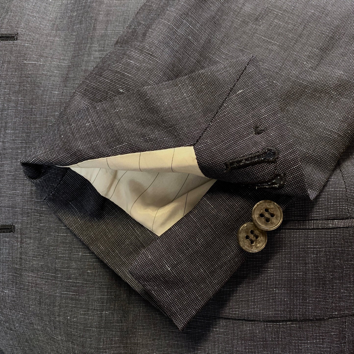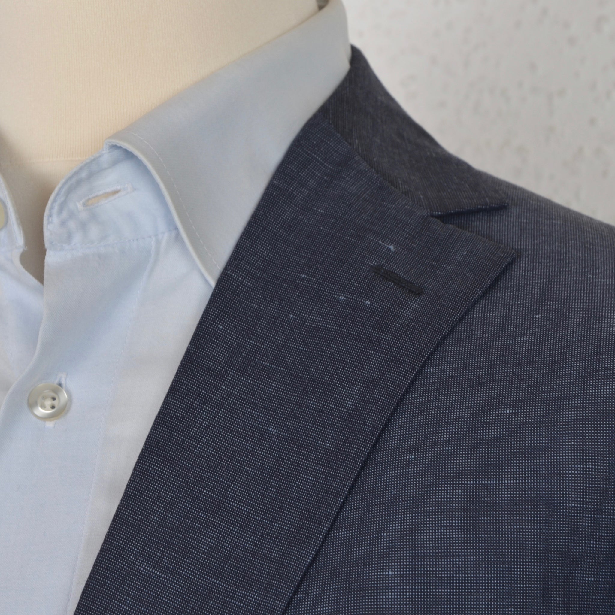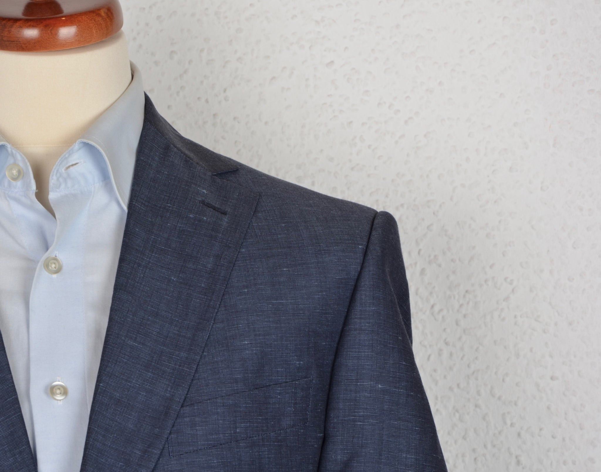 Blaue Jacke von Don Gil, Größe 52. Aus 55 % Wolle und 45 % Leinen.