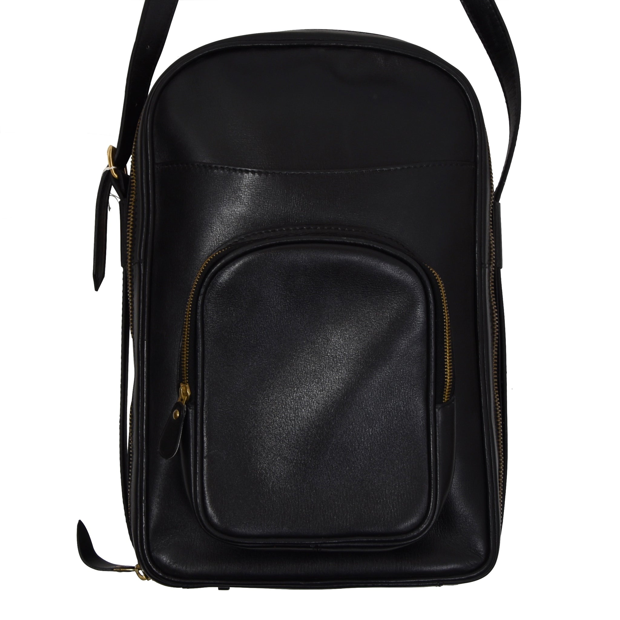 Umhängetasche aus schwarzem Leder, ursprünglich verkauft bei E. Braun & Co. Wien.
