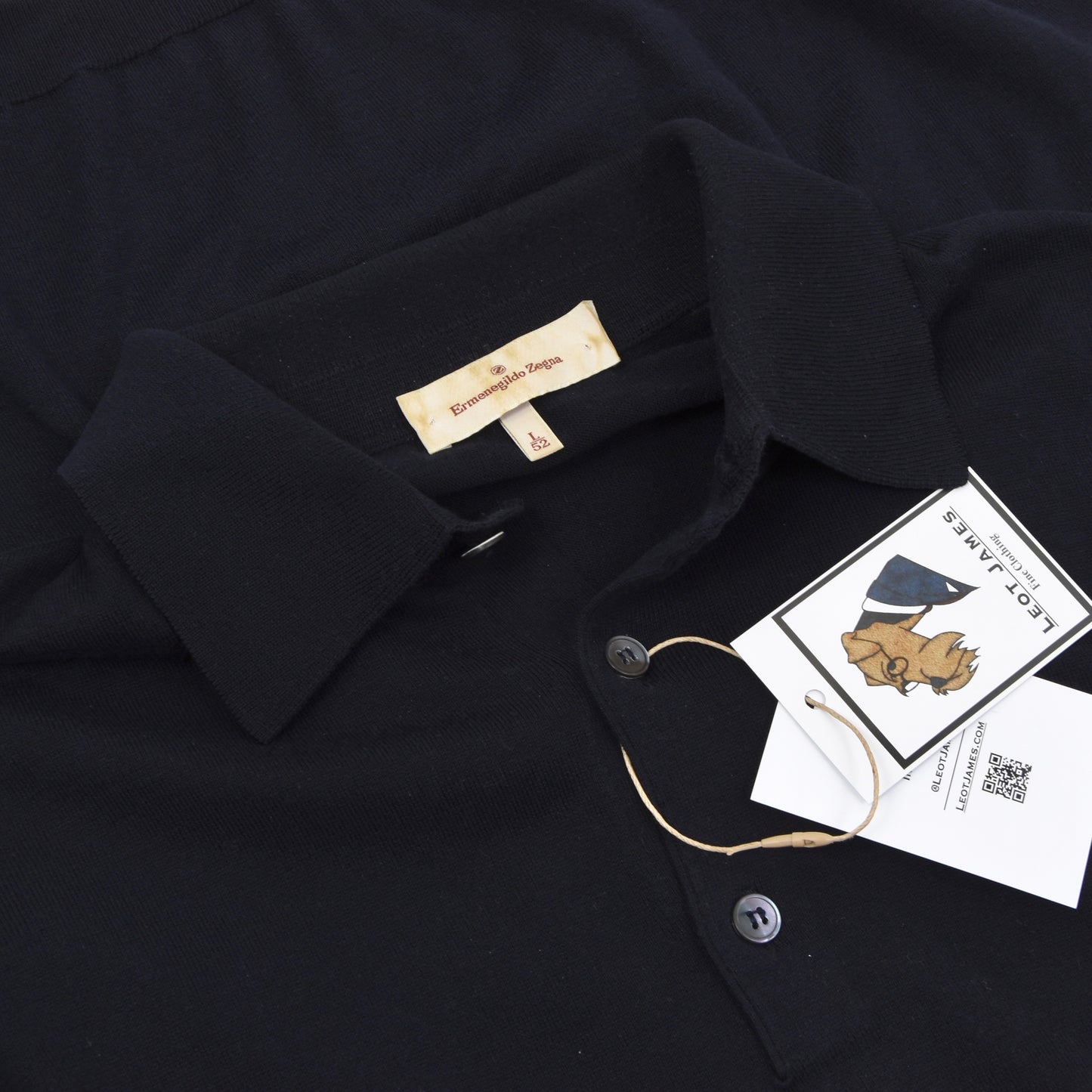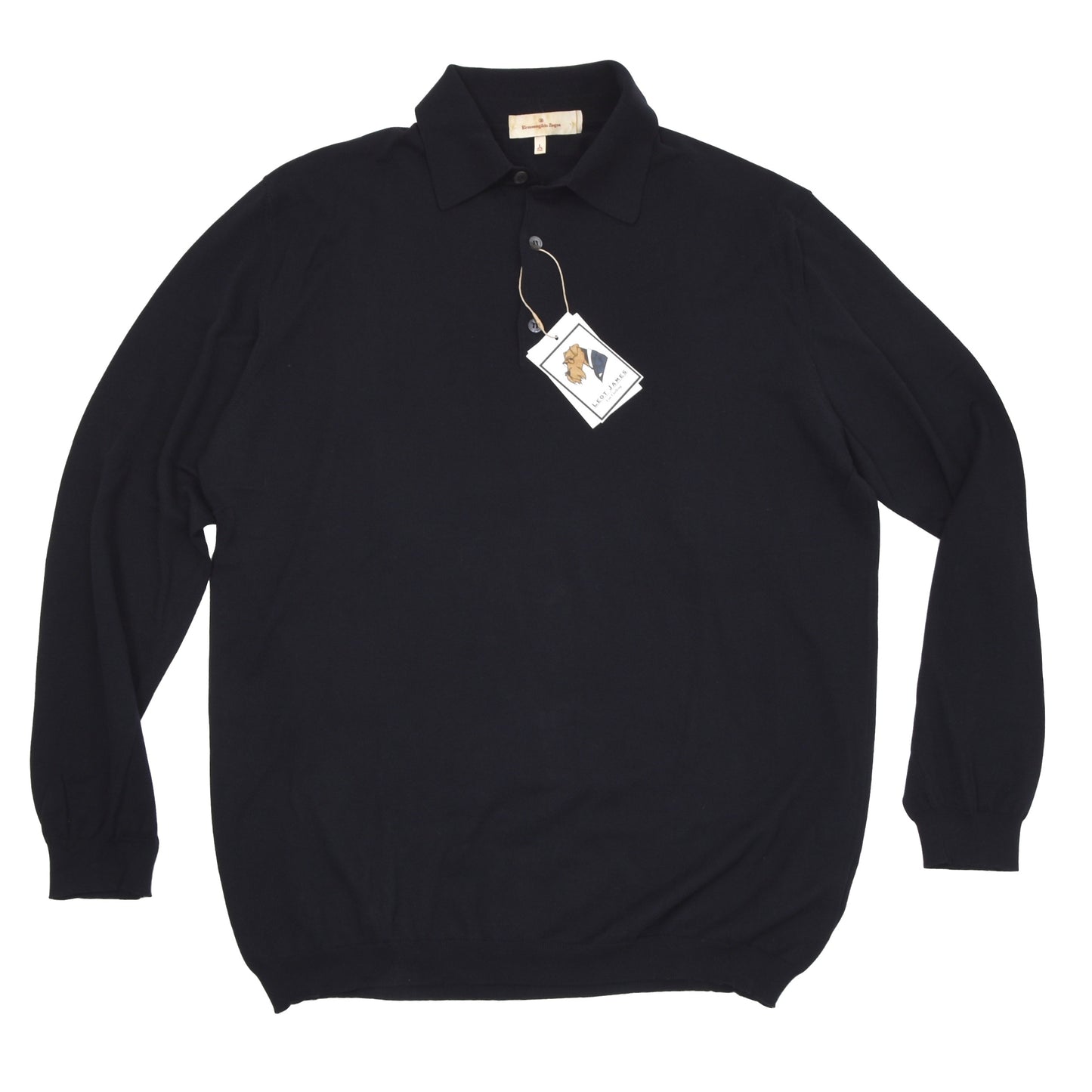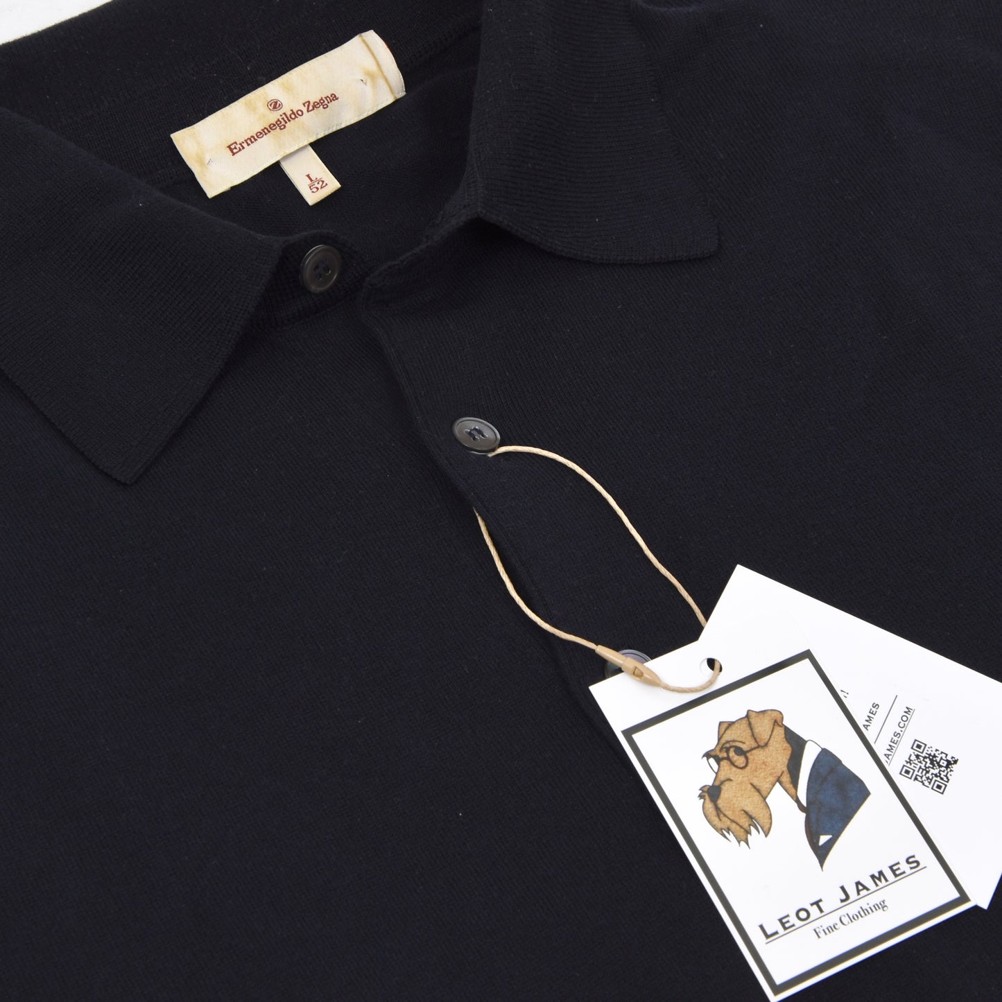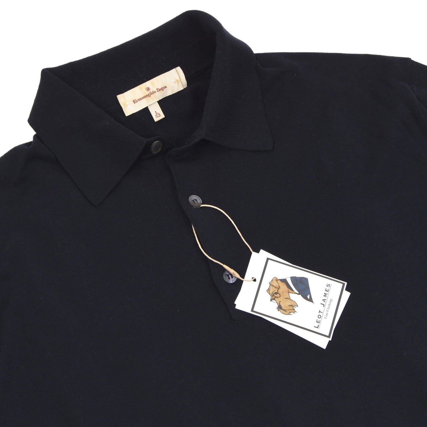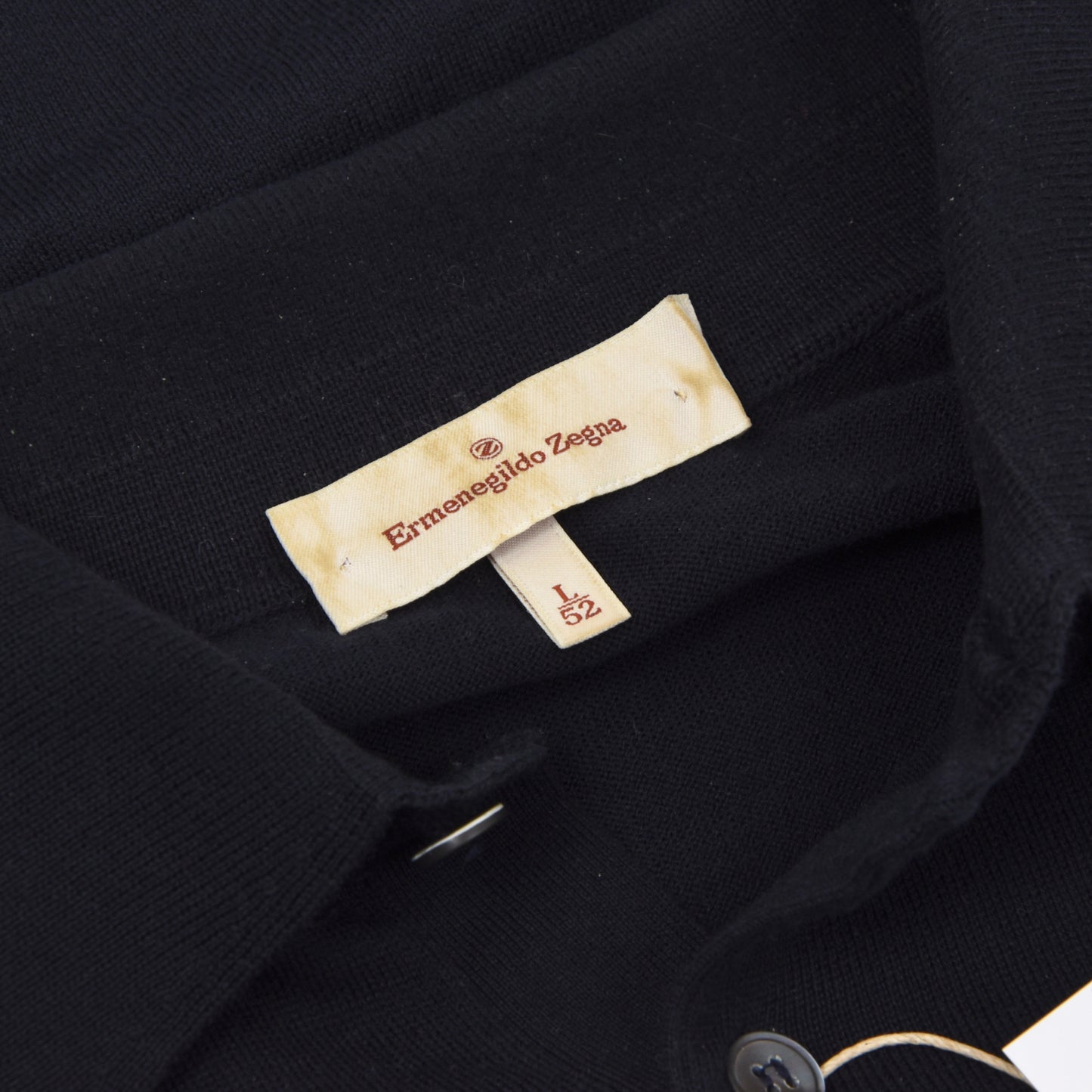 Ermenegildo Zegna Knit Cotton Polo Pullover Größe L 52 - Marineblau