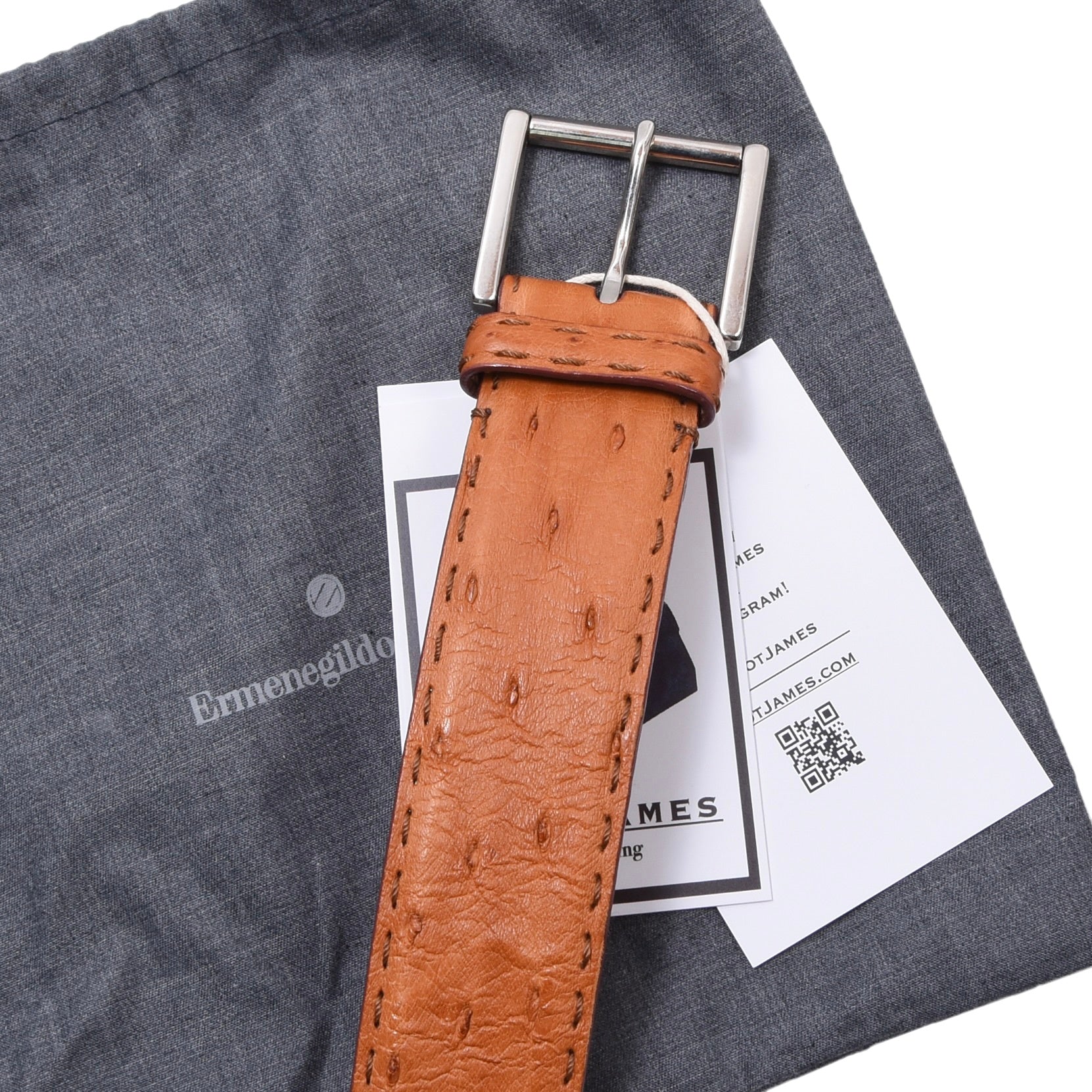 Ermenegildo Zegna Ostrich Leather Belt Size 90 ca. 102cm - Tan