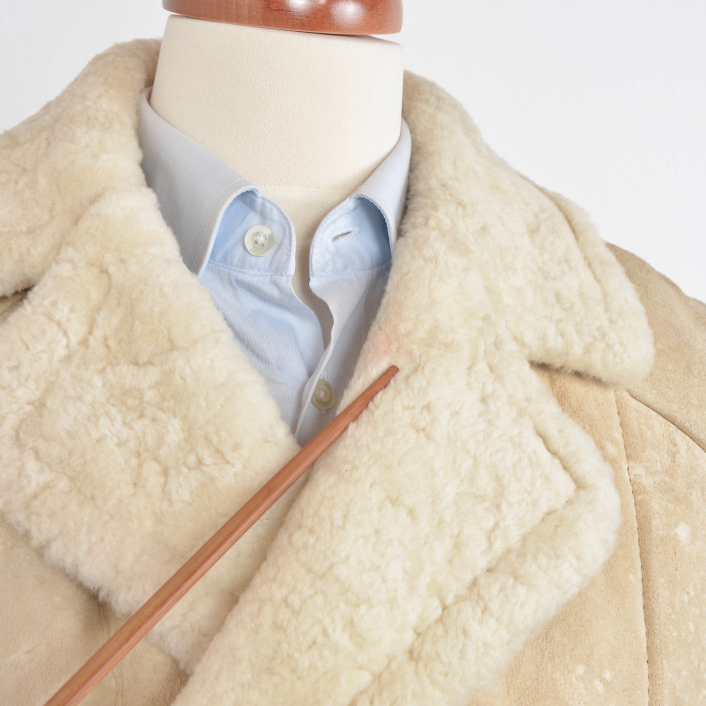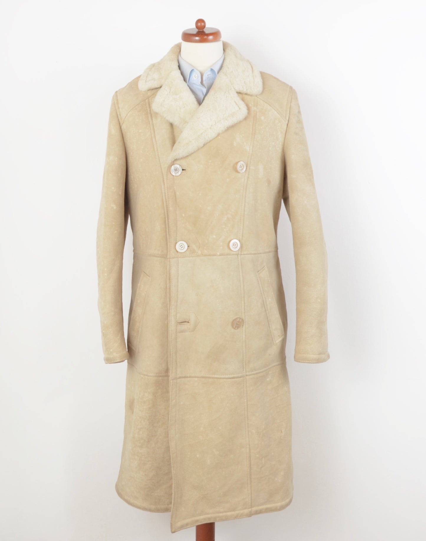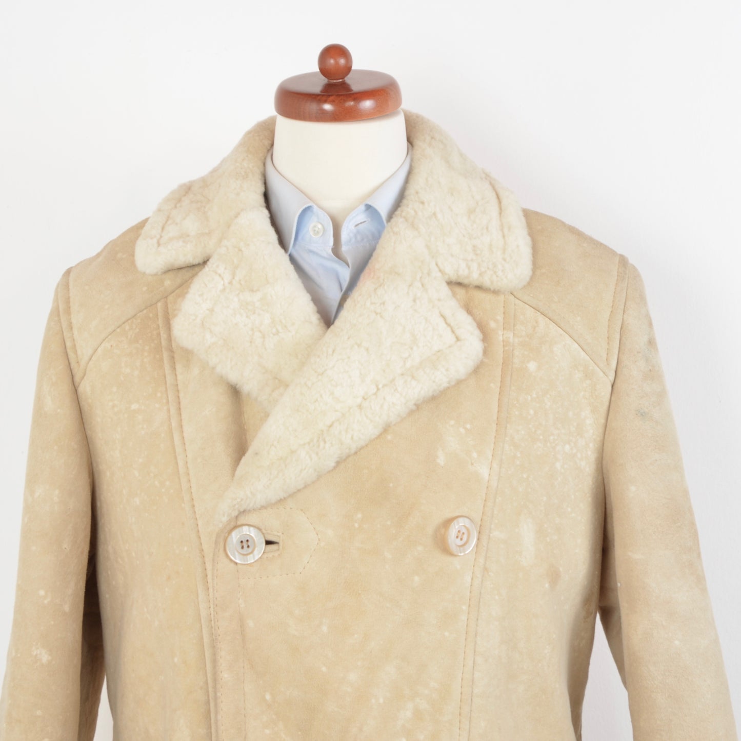 Zweireihiger Shearling-Mantel in voller Länge. Mit Größe 54 gekennzeichnet, fällt aber VIEL kleiner aus, siehe Maße.