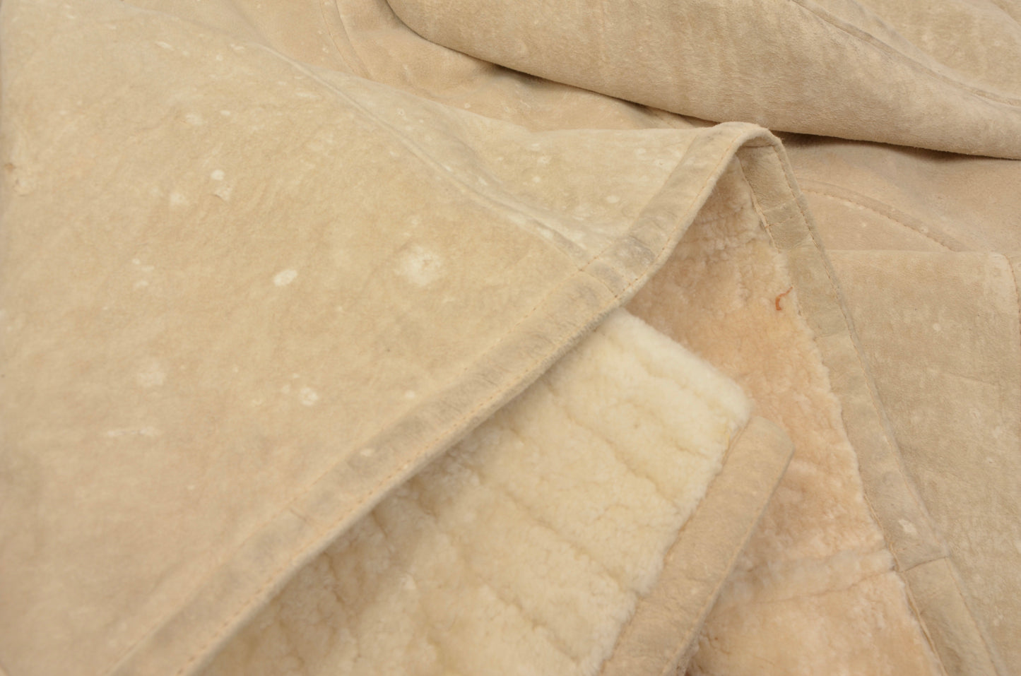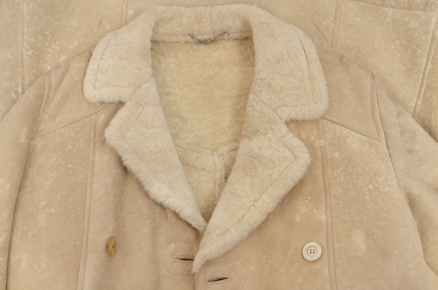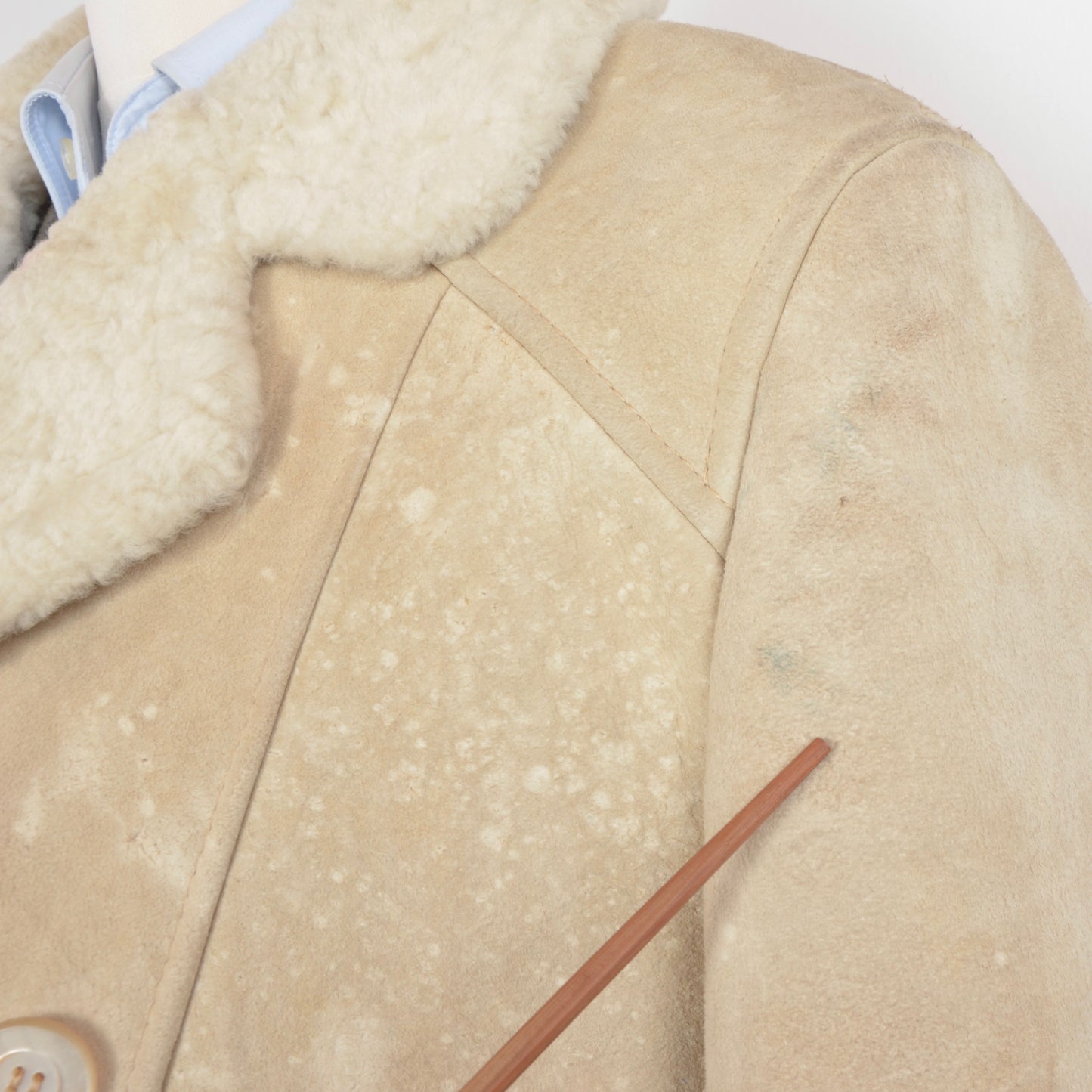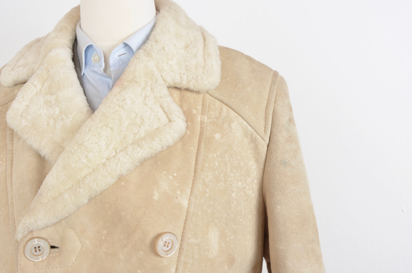 Zweireihiger Shearling-Mantel in voller Länge. Mit Größe 54 gekennzeichnet, fällt aber VIEL kleiner aus, siehe Maße.