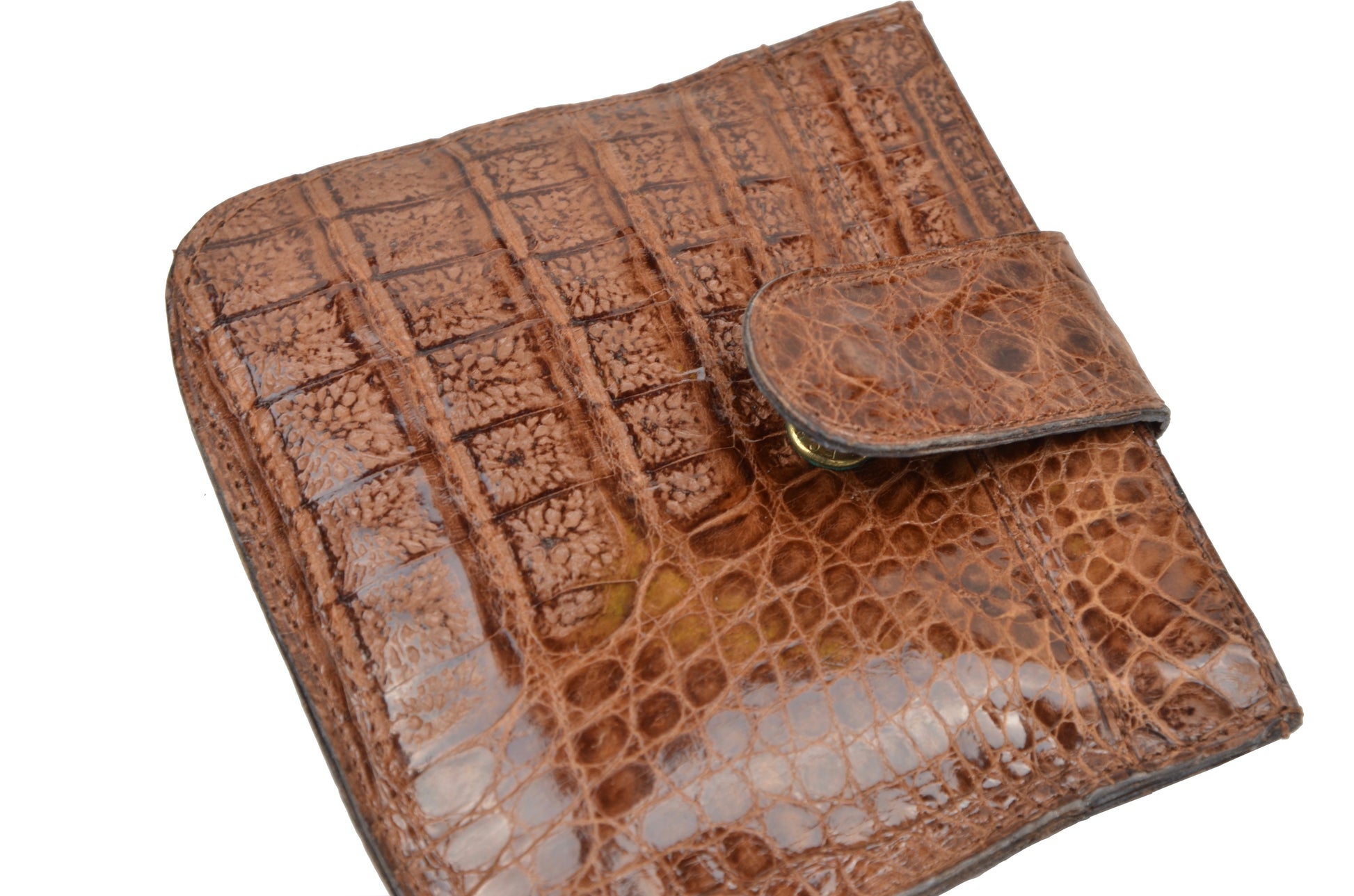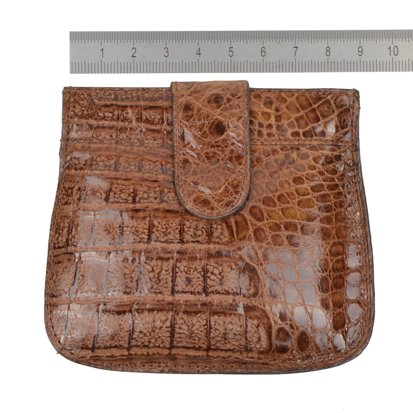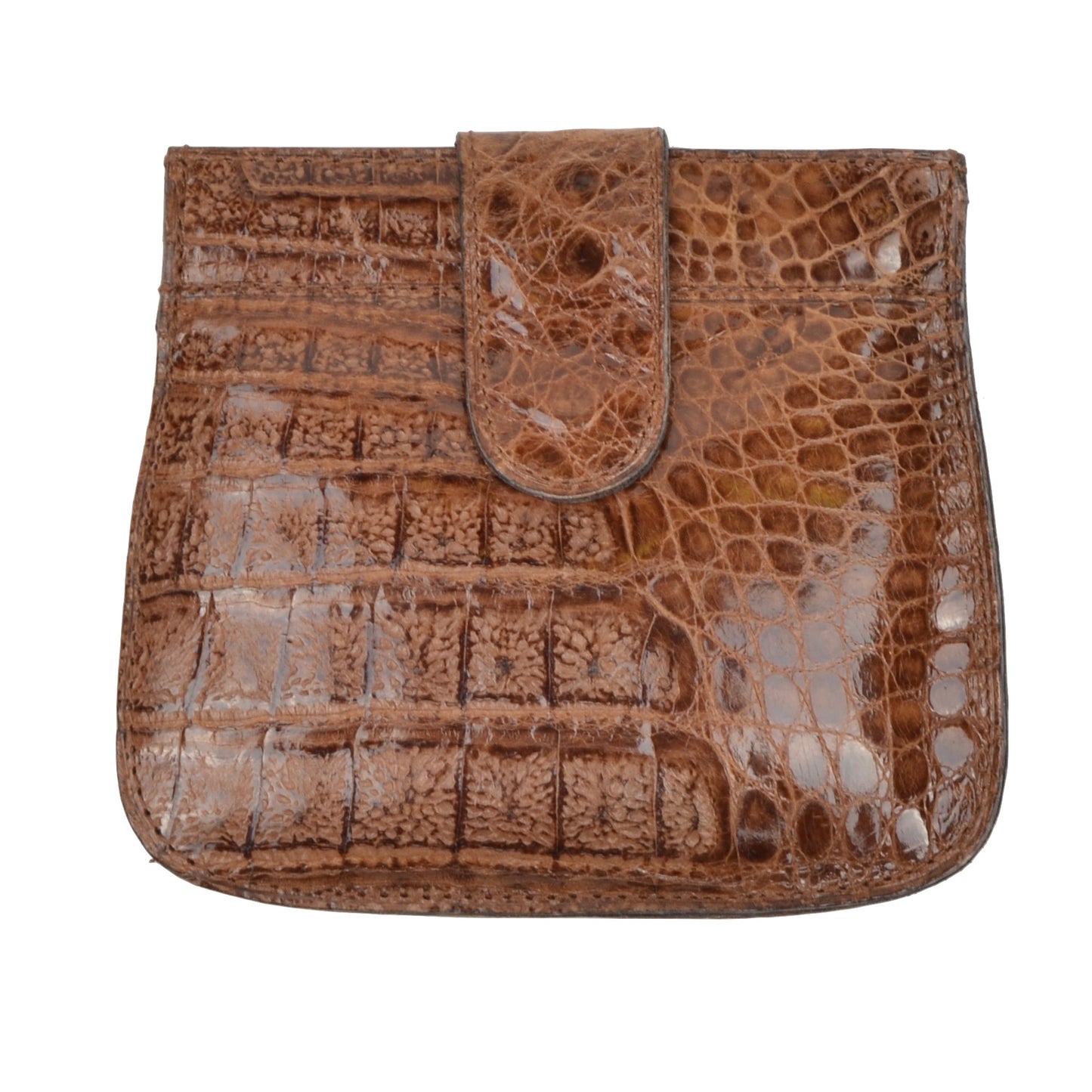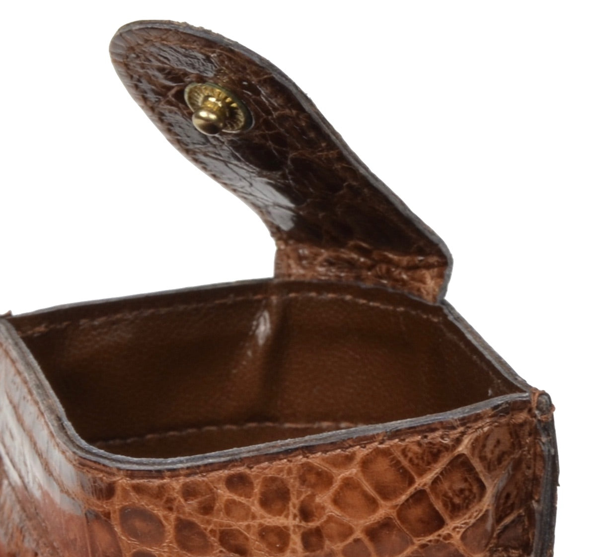 Echte Krokodil-Snap-Münzmappe – Hellbraun/Braun