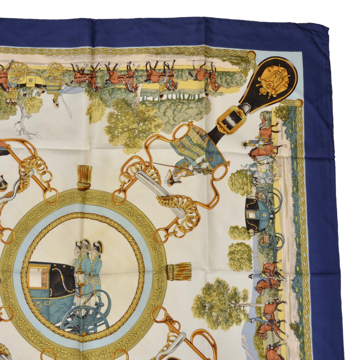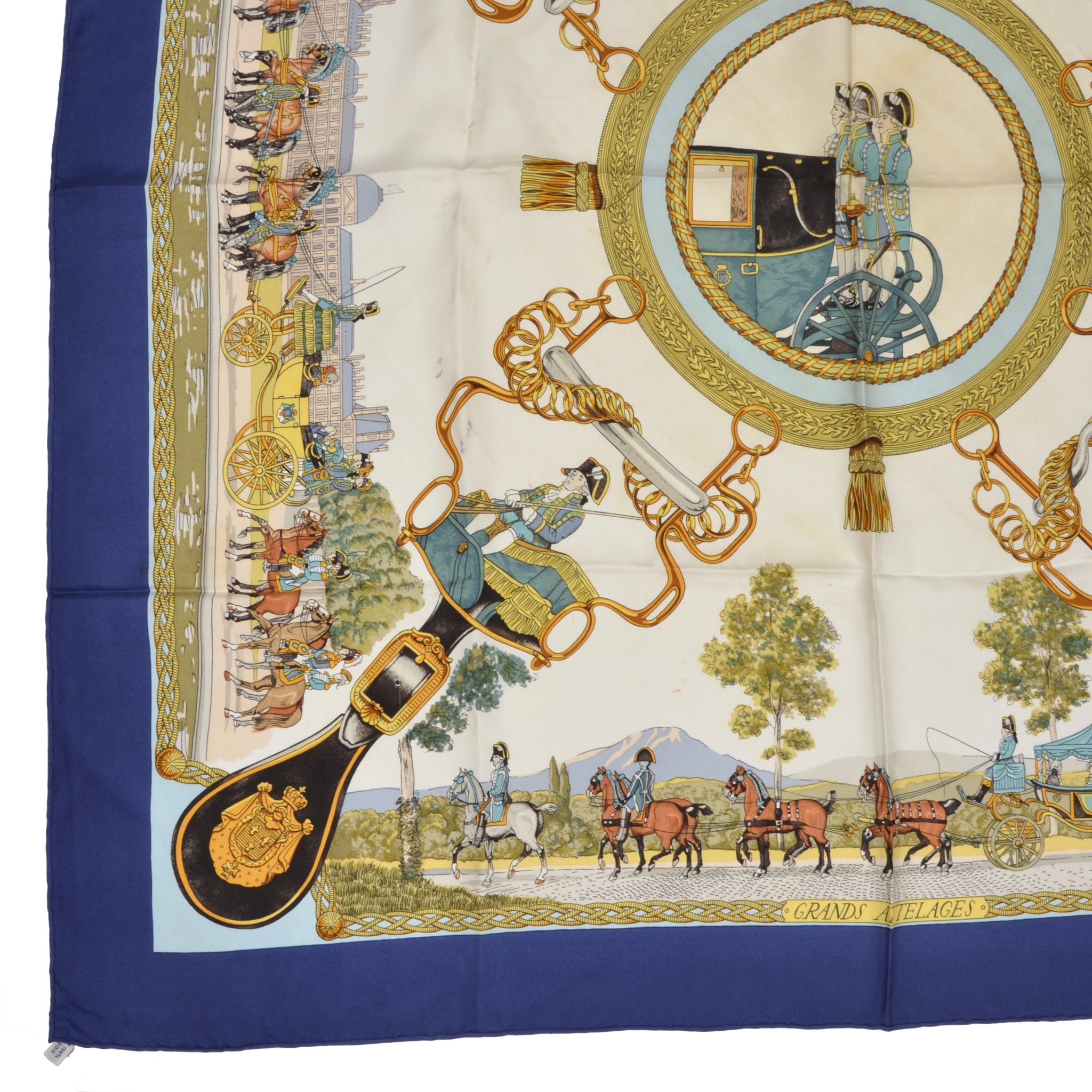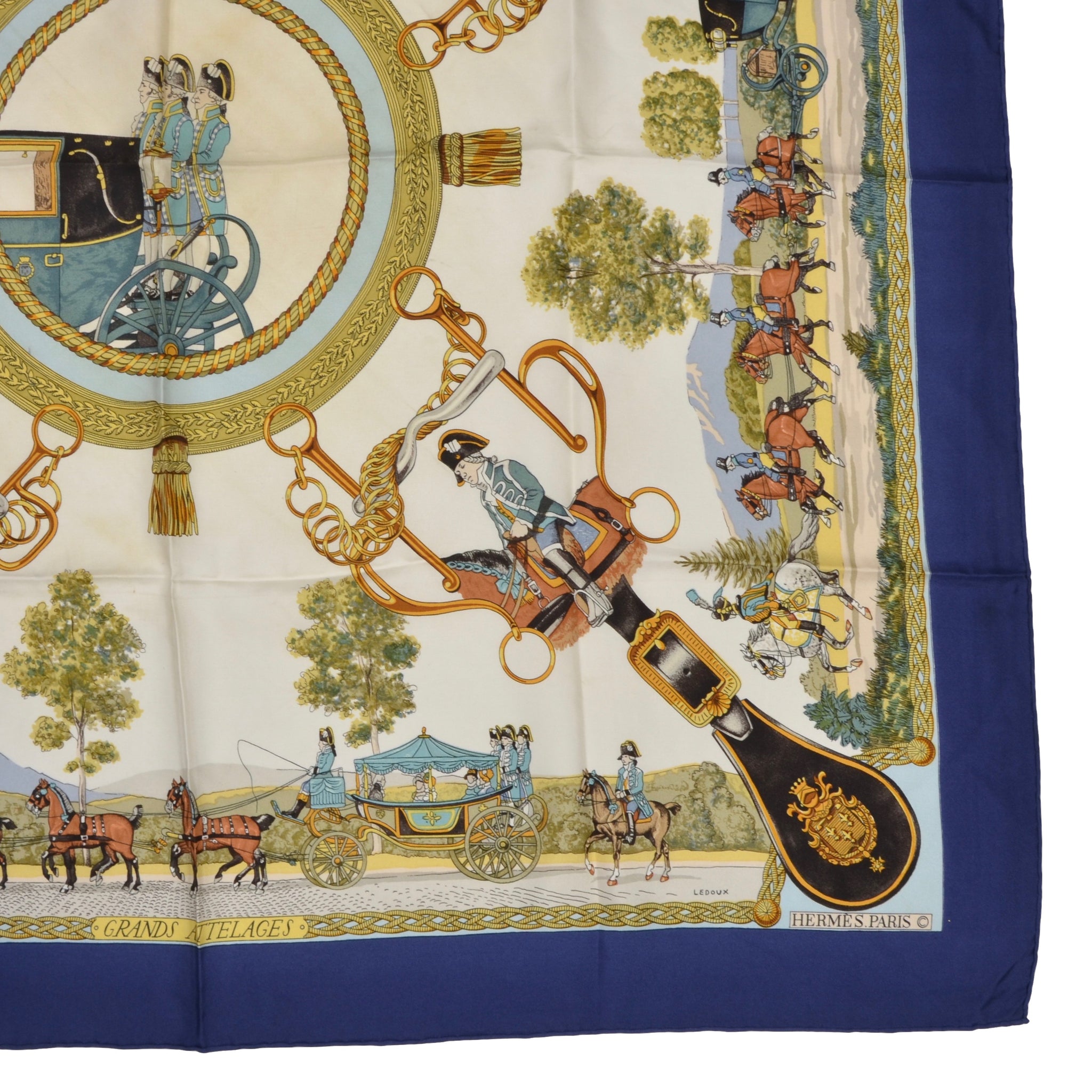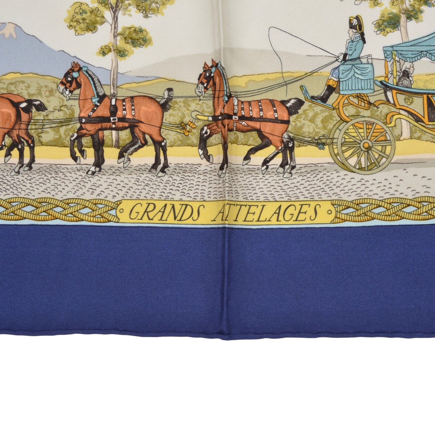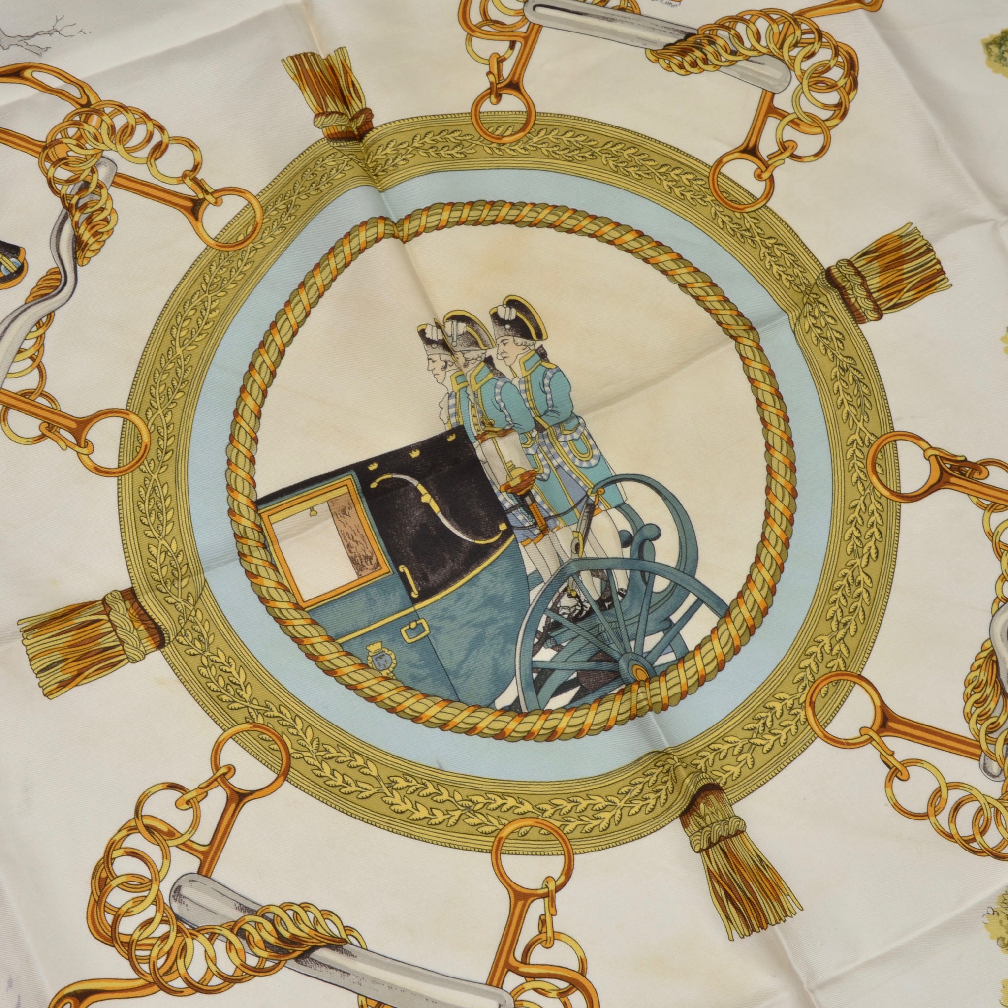 Seidenschal von Hermès Paris mit dem Titel Grands Attelages by Philippe Ledoux. Hergestellt in Frankreich aus 100 % Seide.