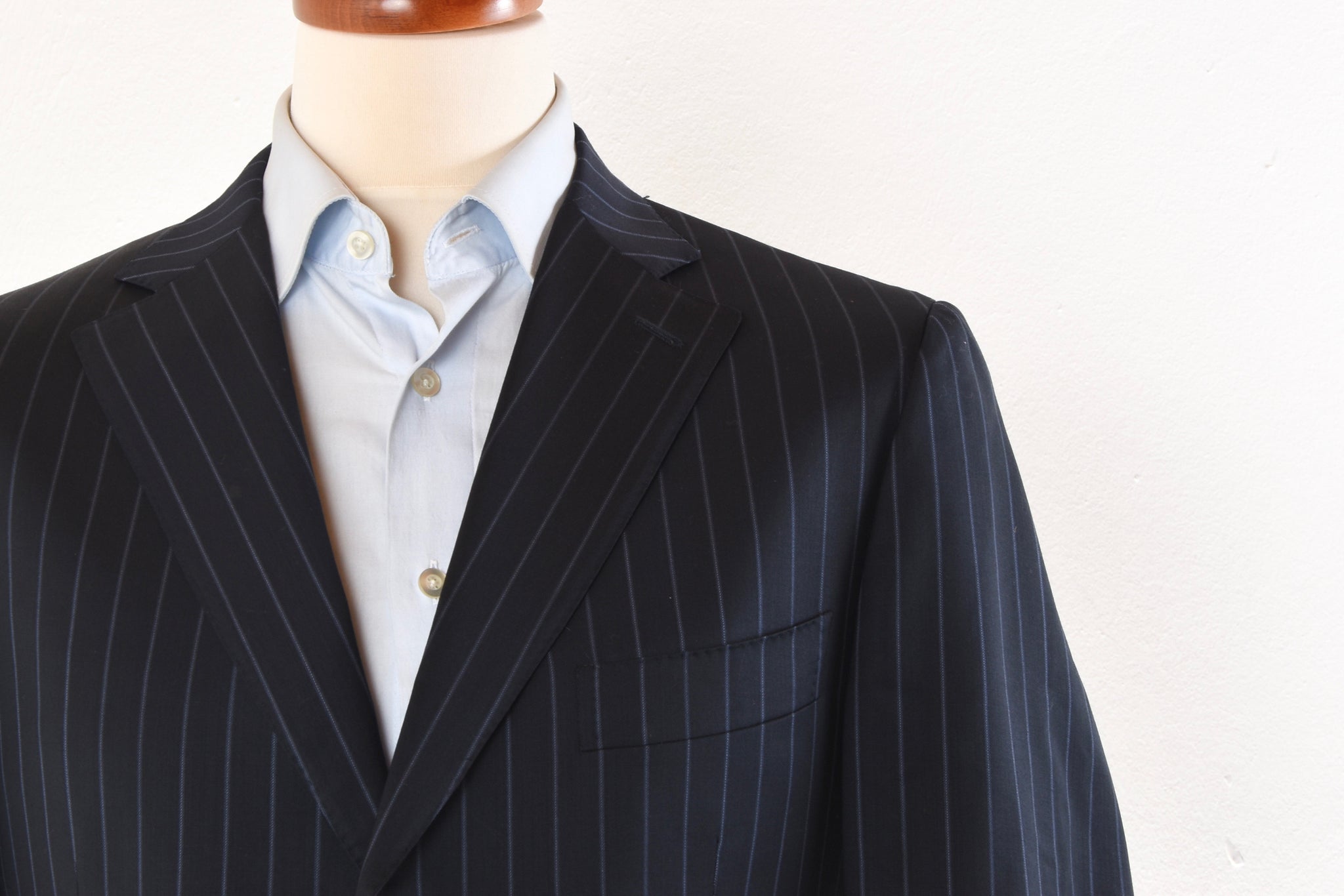 Isaia Napoli Super 110s Spinnenanzug Größe 52 - Navy Nadelstreifen