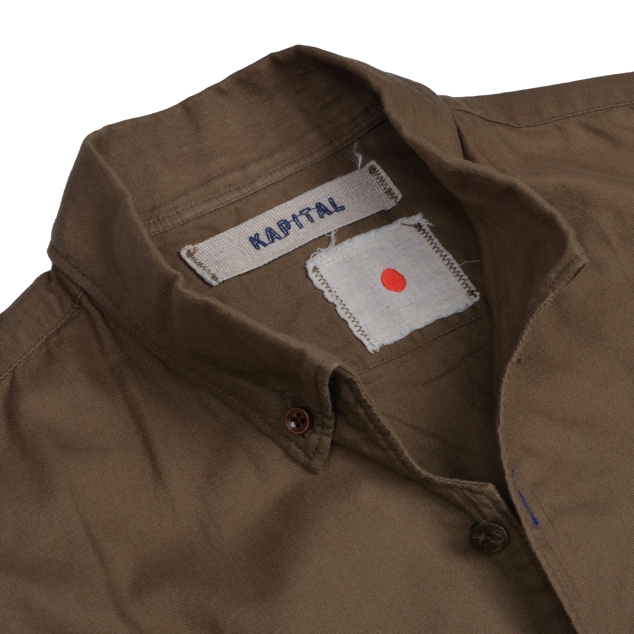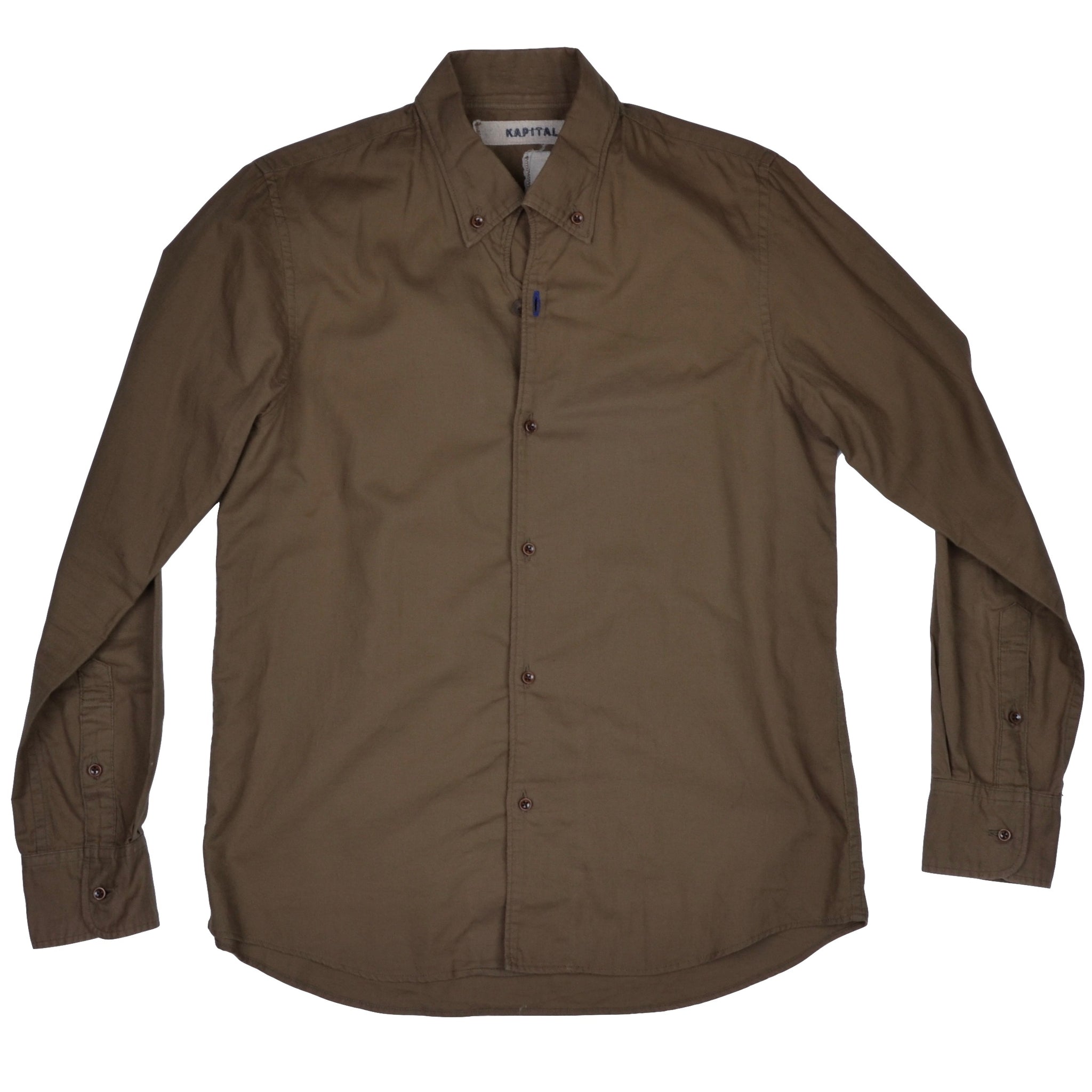 Kapital Japan Hemd in Olivgrün. Gekennzeichnet mit Größe 1/S, siehe Maße. Hergestellt aus 100 % Baumwolle.