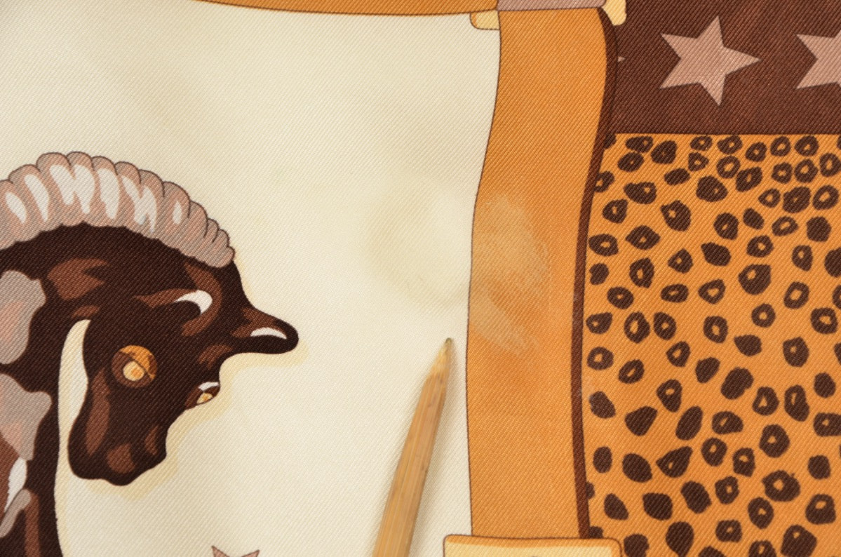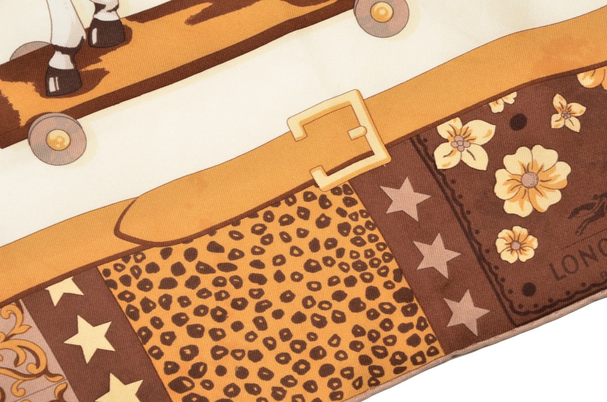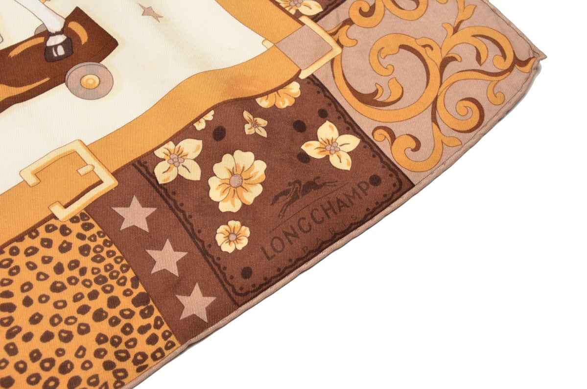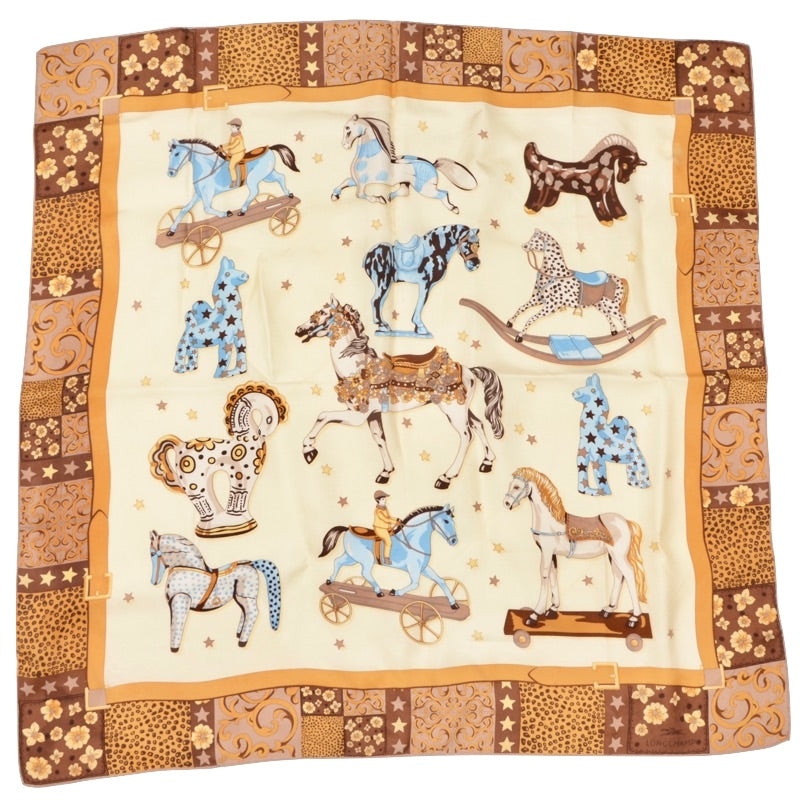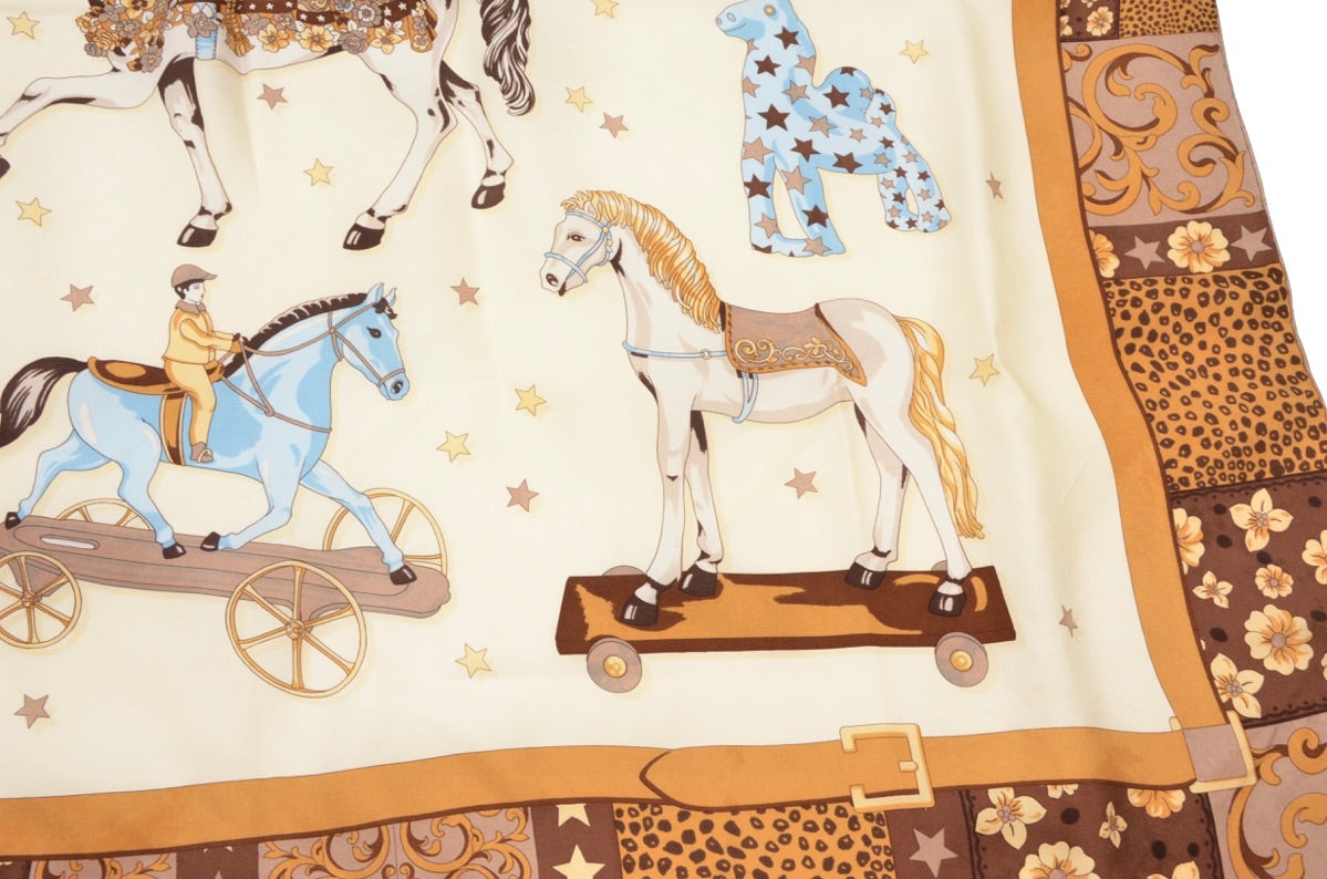 Seidenschal von Longchamp Paris mit Schaukelpferdmotiv. Hergestellt in Italien aus 100 % Seide.