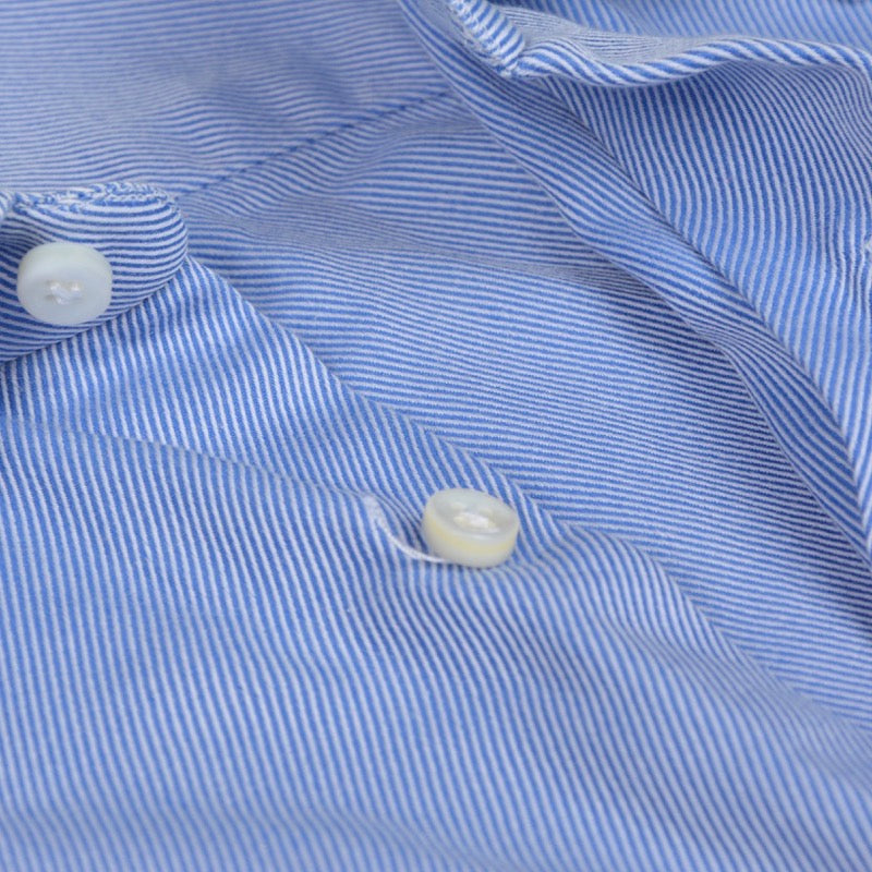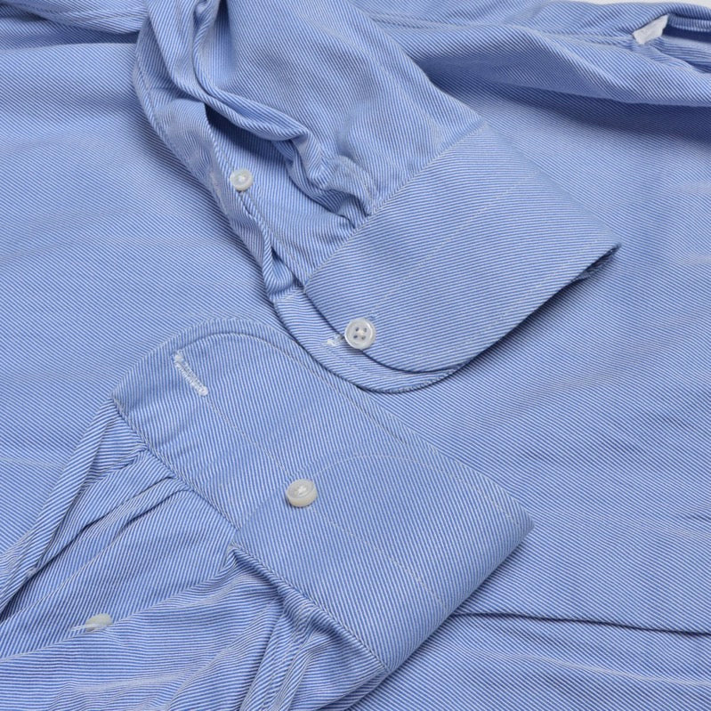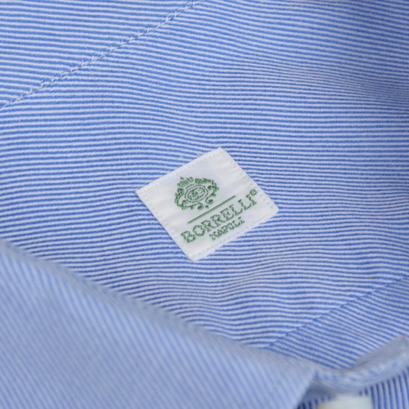 Blaues Hemd von Luigi Borrelli, Größe 41. Hergestellt in Italien aus 100 % Baumwolle.