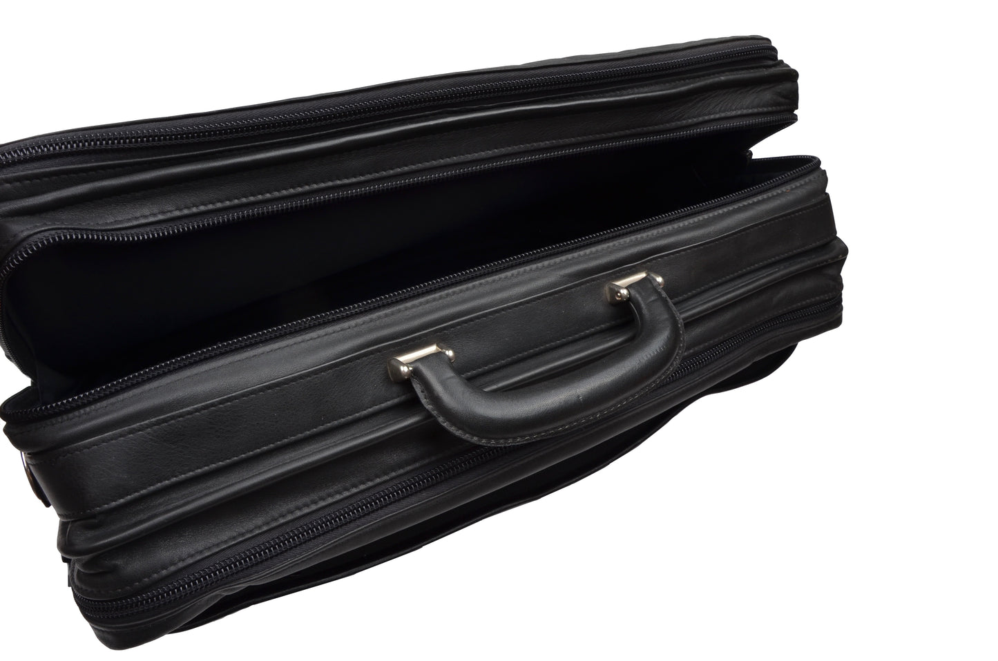 Schwarzer Lederkoffer von Offermann. Modell „der Flugumhänger“.