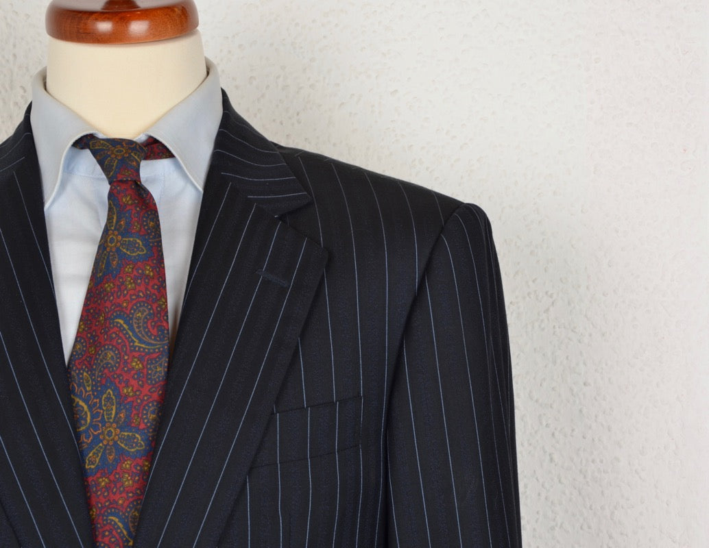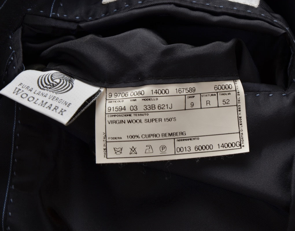 Pal Zileri Super 150s Gestreifter Anzug Größe 52 - Marineblau
