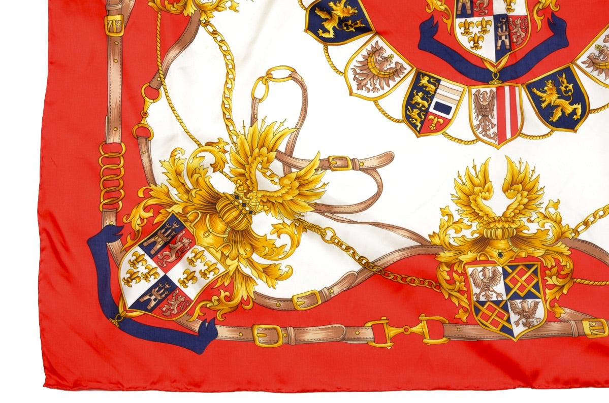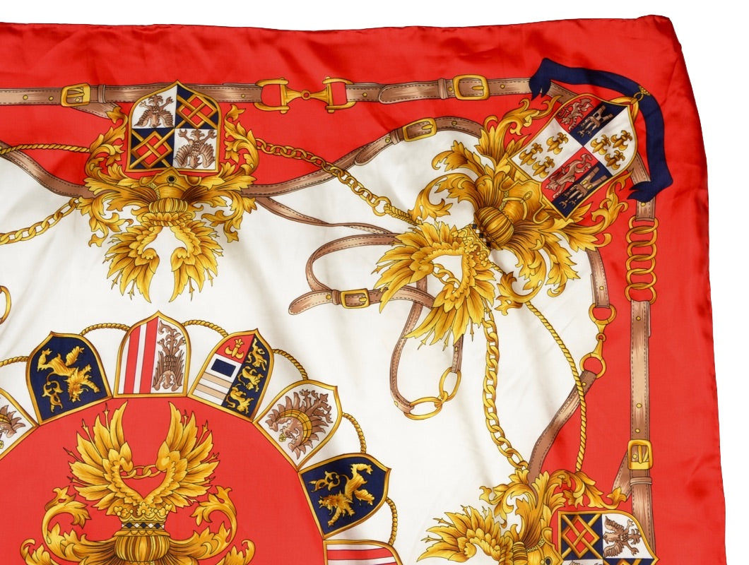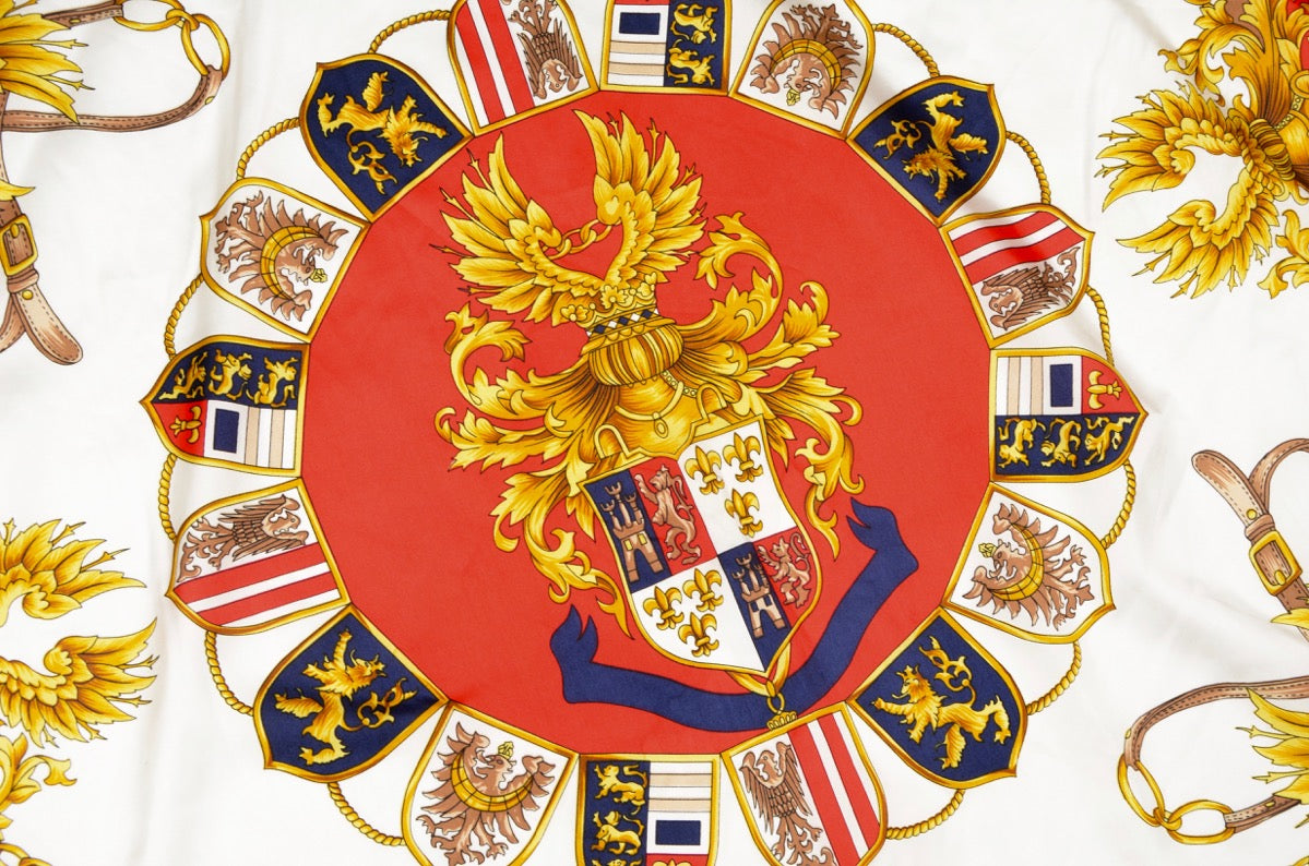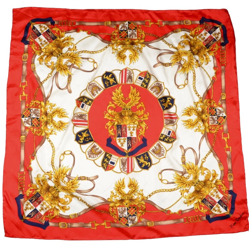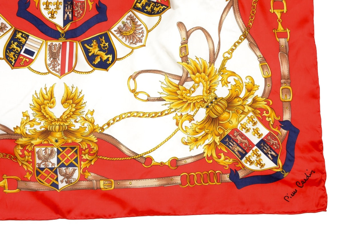 Seidenschal von Pierre Cardin mit königlichem Motiv und handgerollten Kanten. Kein Stoffanhänger, sondern aus Seide.