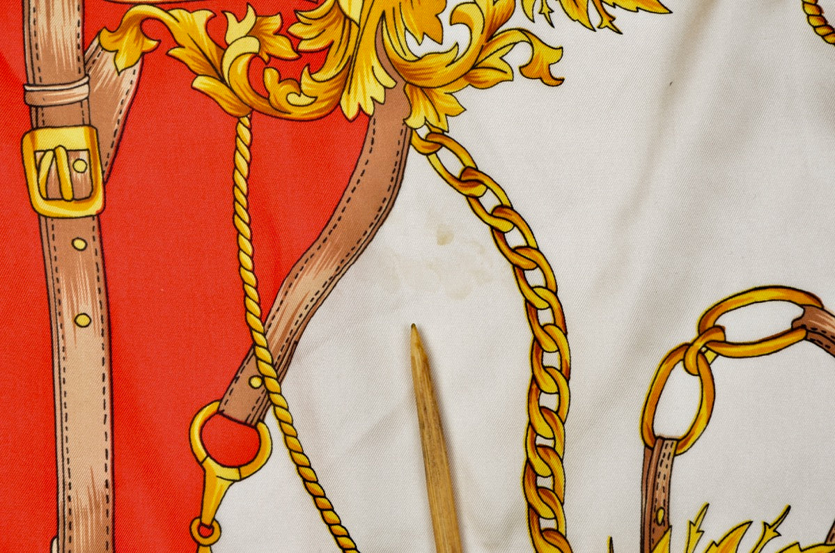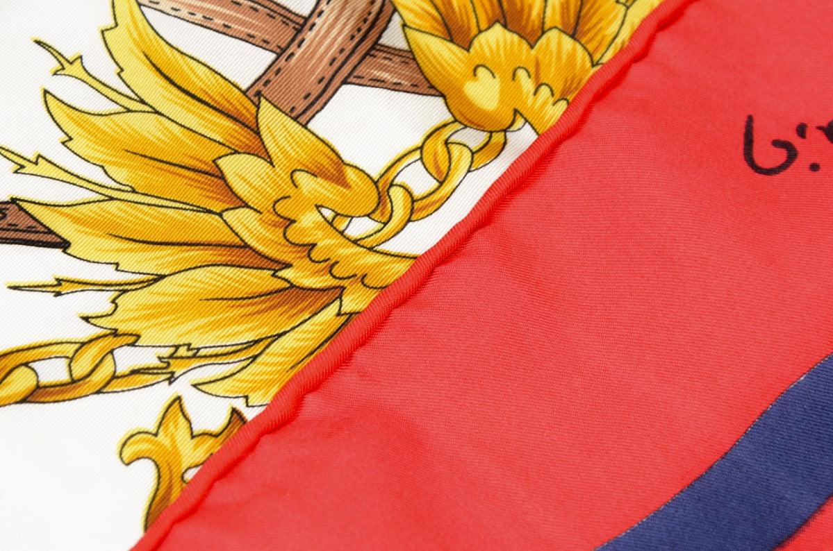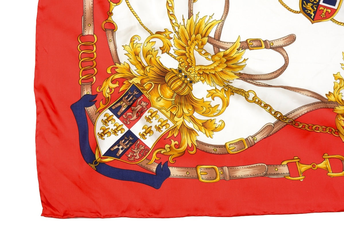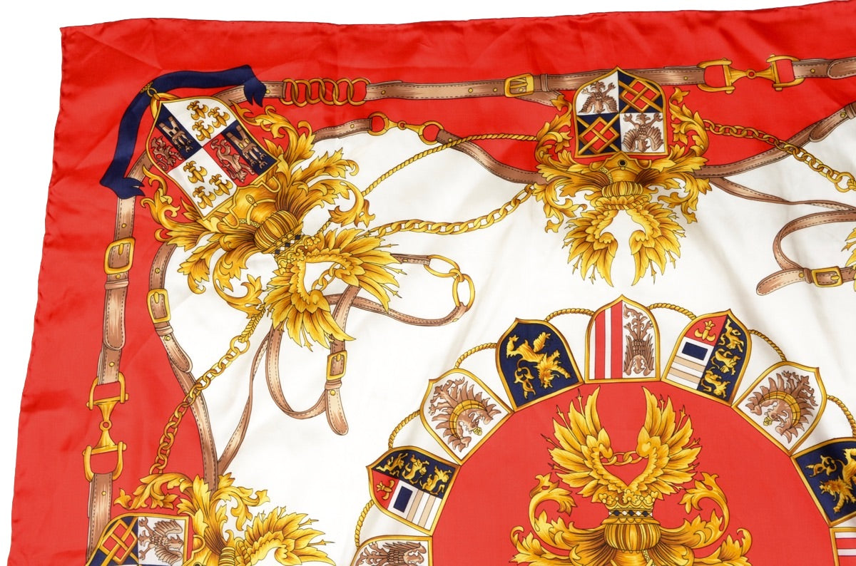 Seidenschal von Pierre Cardin mit königlichem Motiv und handgerollten Kanten. Kein Stoffanhänger, sondern aus Seide.