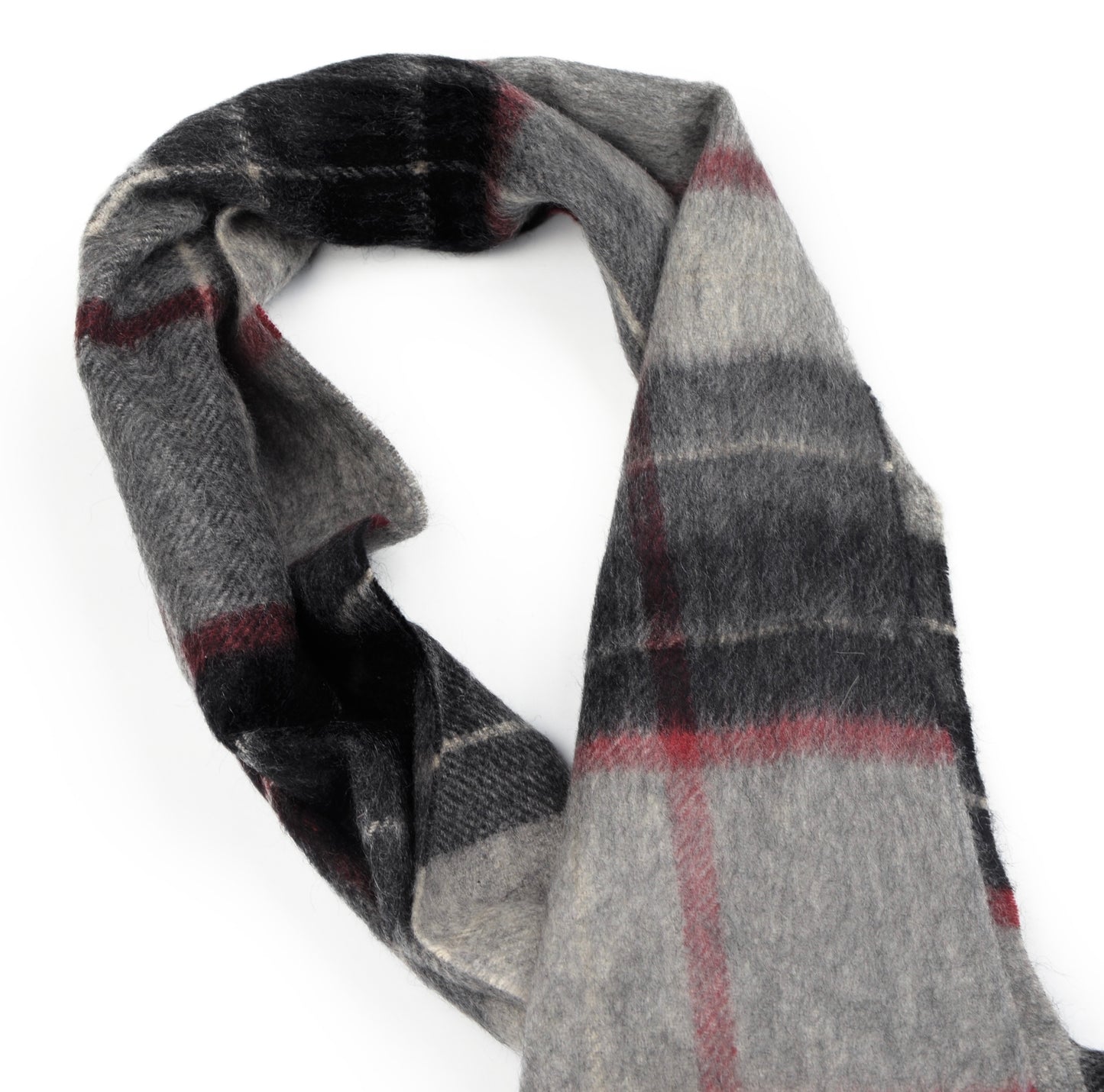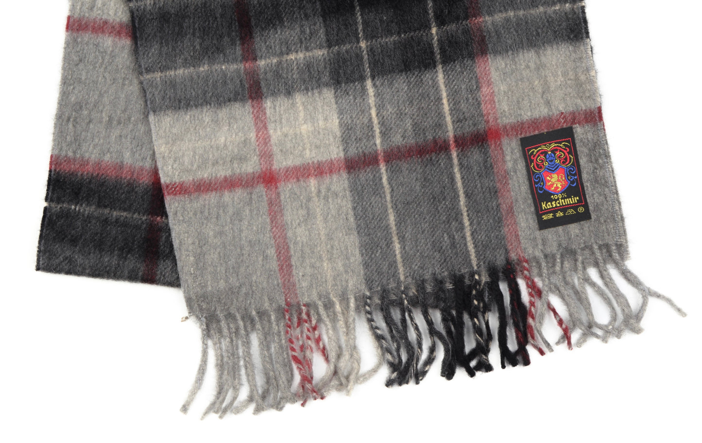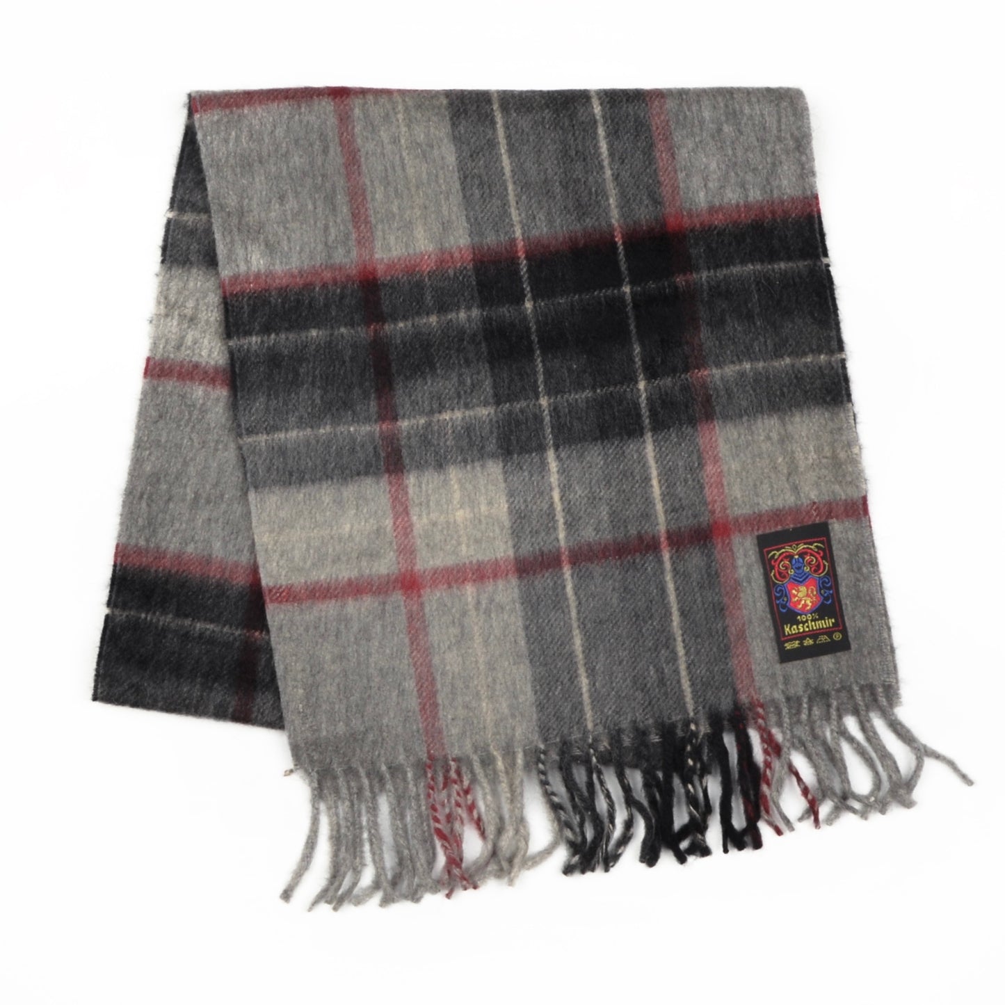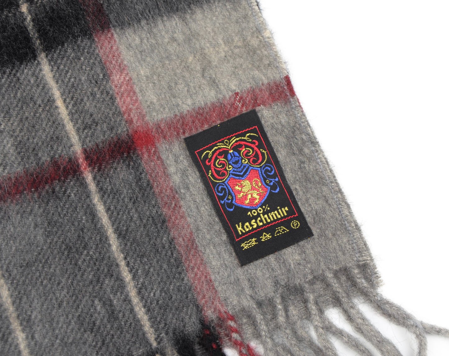 Karierter Kaschmirschal - Grau, Schwarz und Rot