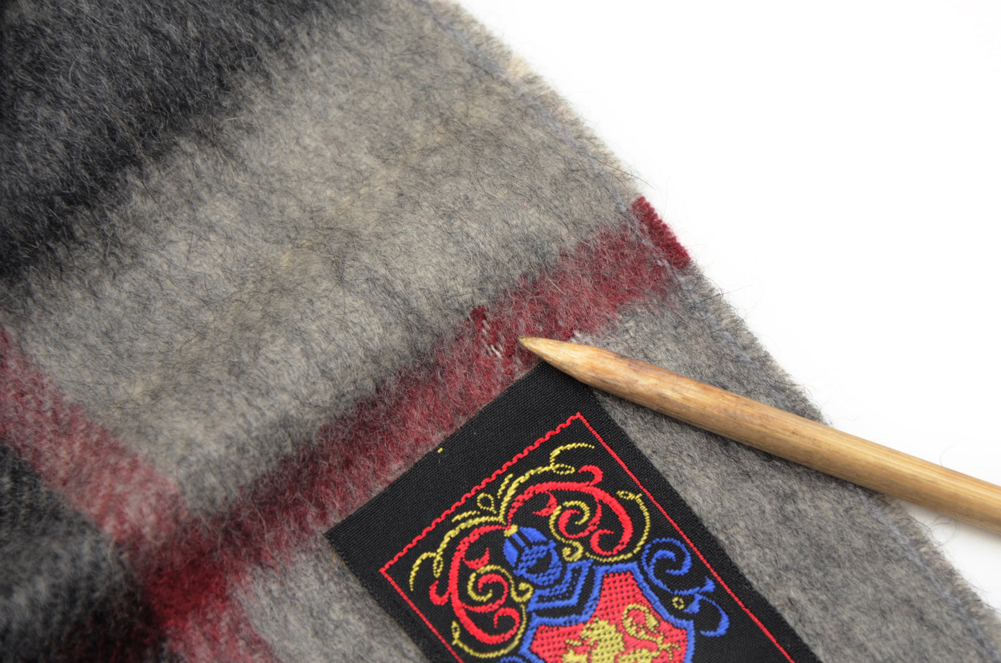 Karierter Schal in Grau, Schwarz und Rot. Hergestellt aus 100 % Kaschmir.