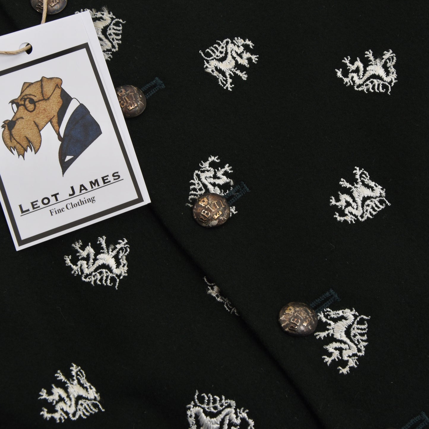 Wollgilet mit aufgesticktem Steirischen Panther von Rettl, Größe 56. Hergestellt in Österreich aus 100 % Wolle.