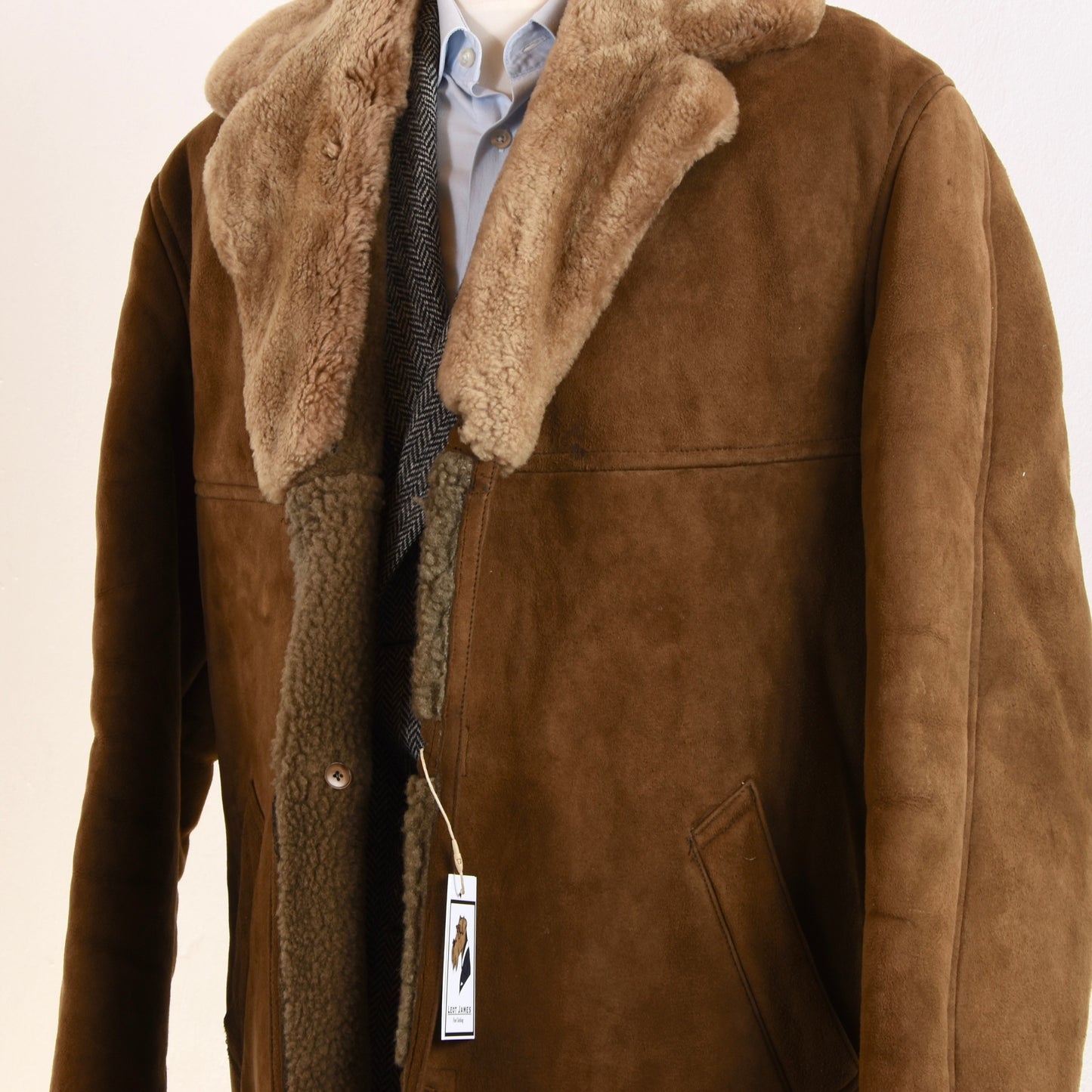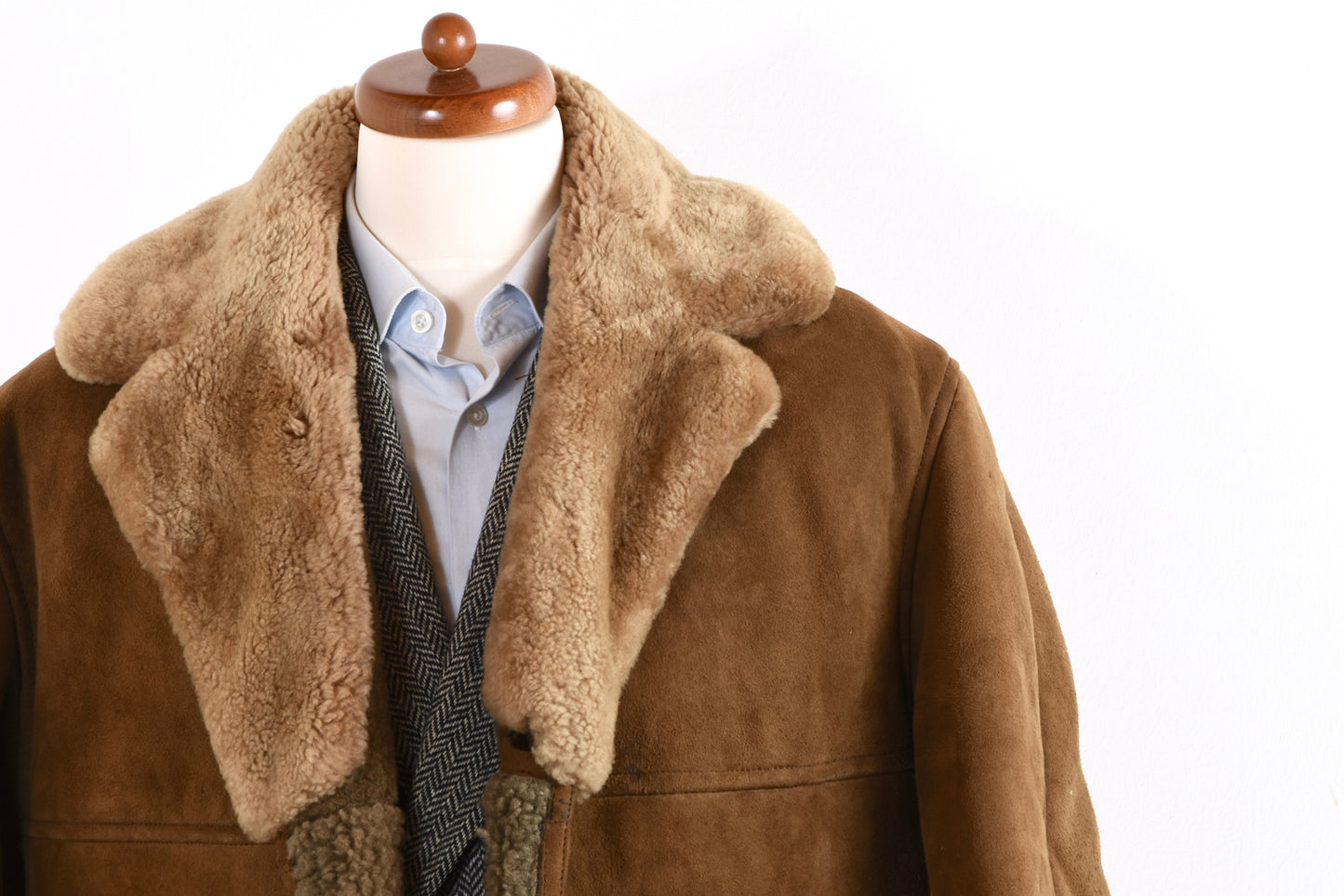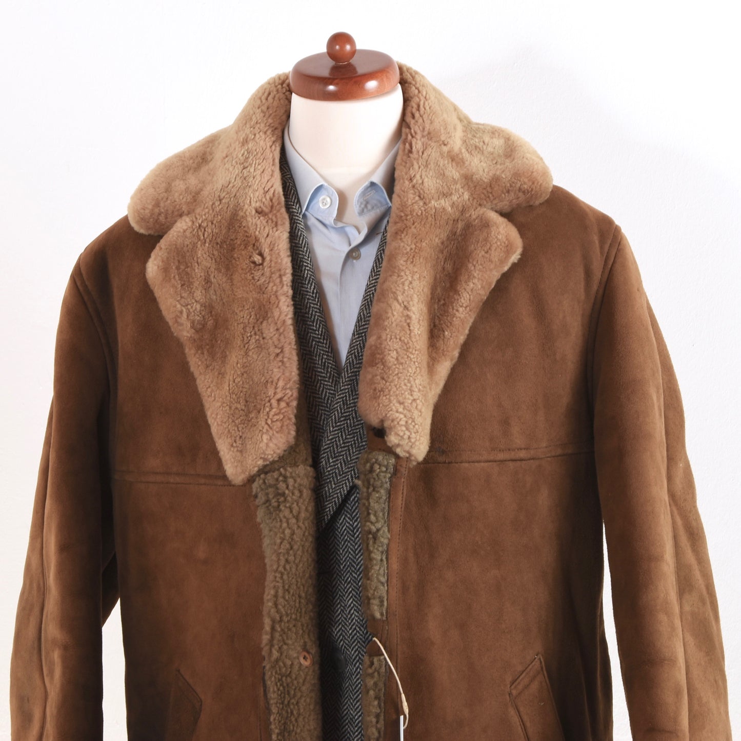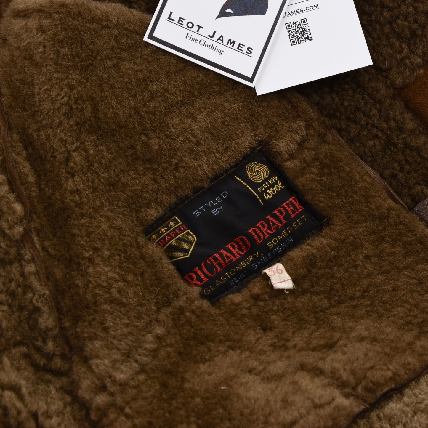 Richard Draper Lammfellmantel in Braun, Größe 56. Hergestellt in England aus Schaffell.