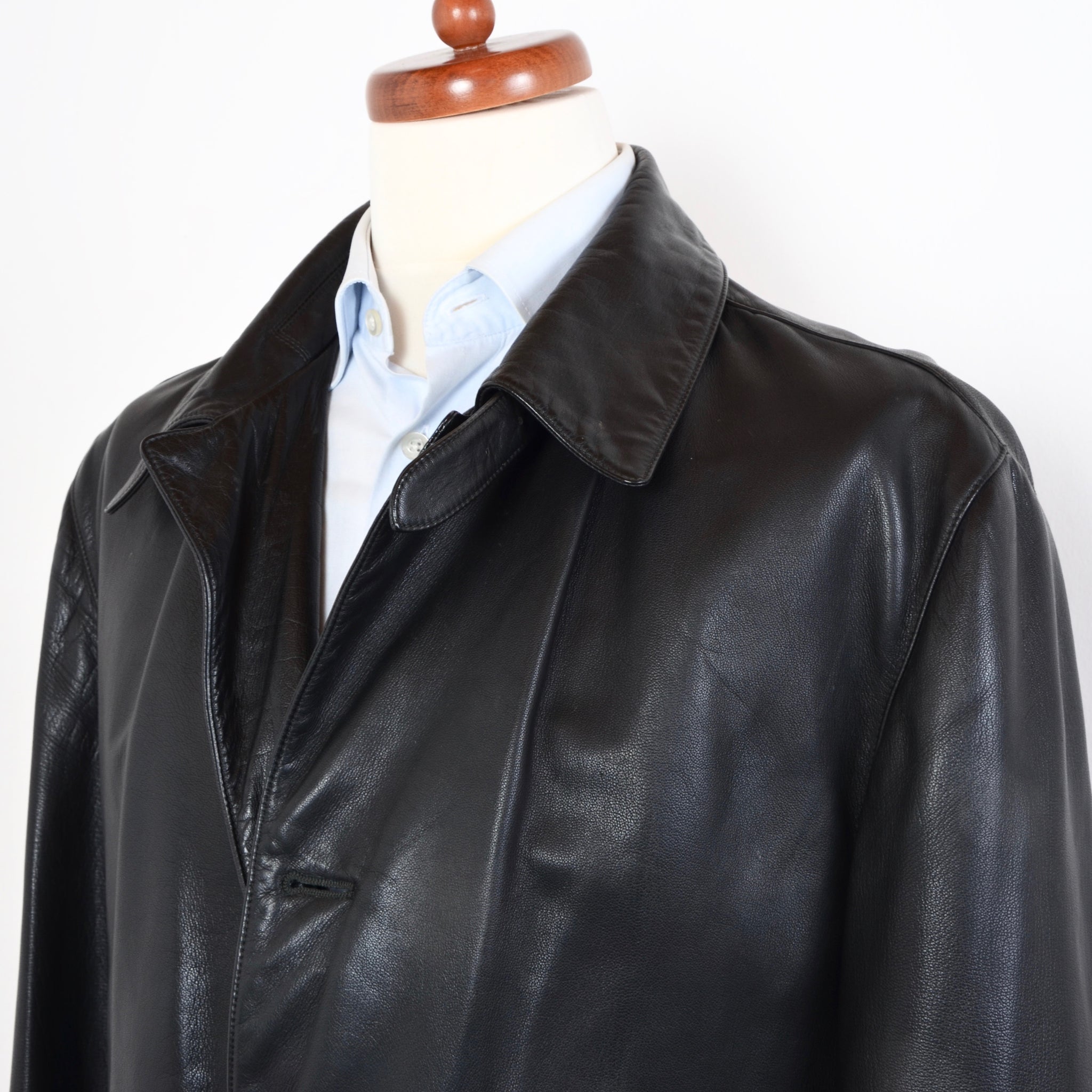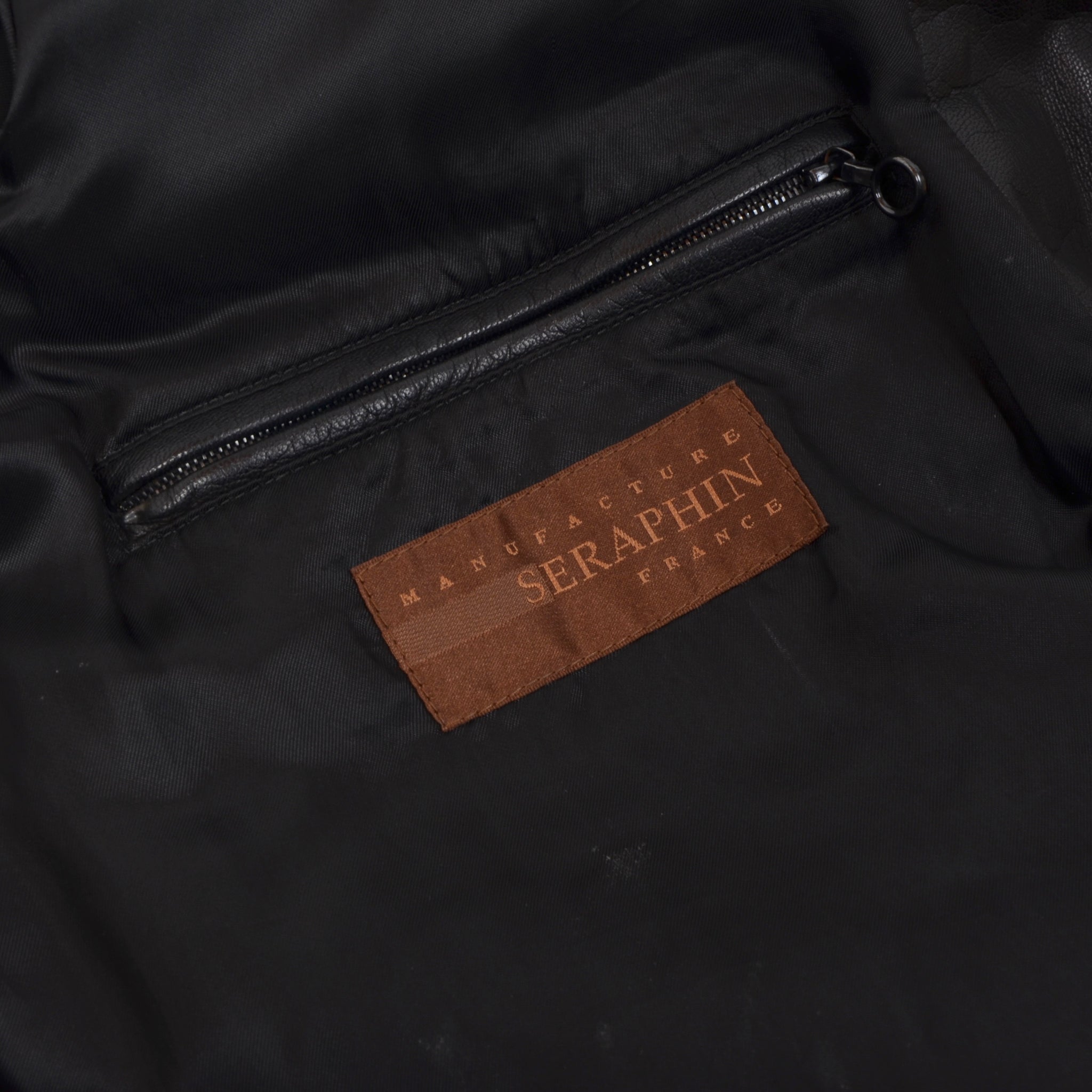 Seraphin Trenchcoat aus schwarzem Leder, Größe 54. Hergestellt in Frankreich aus Leder.