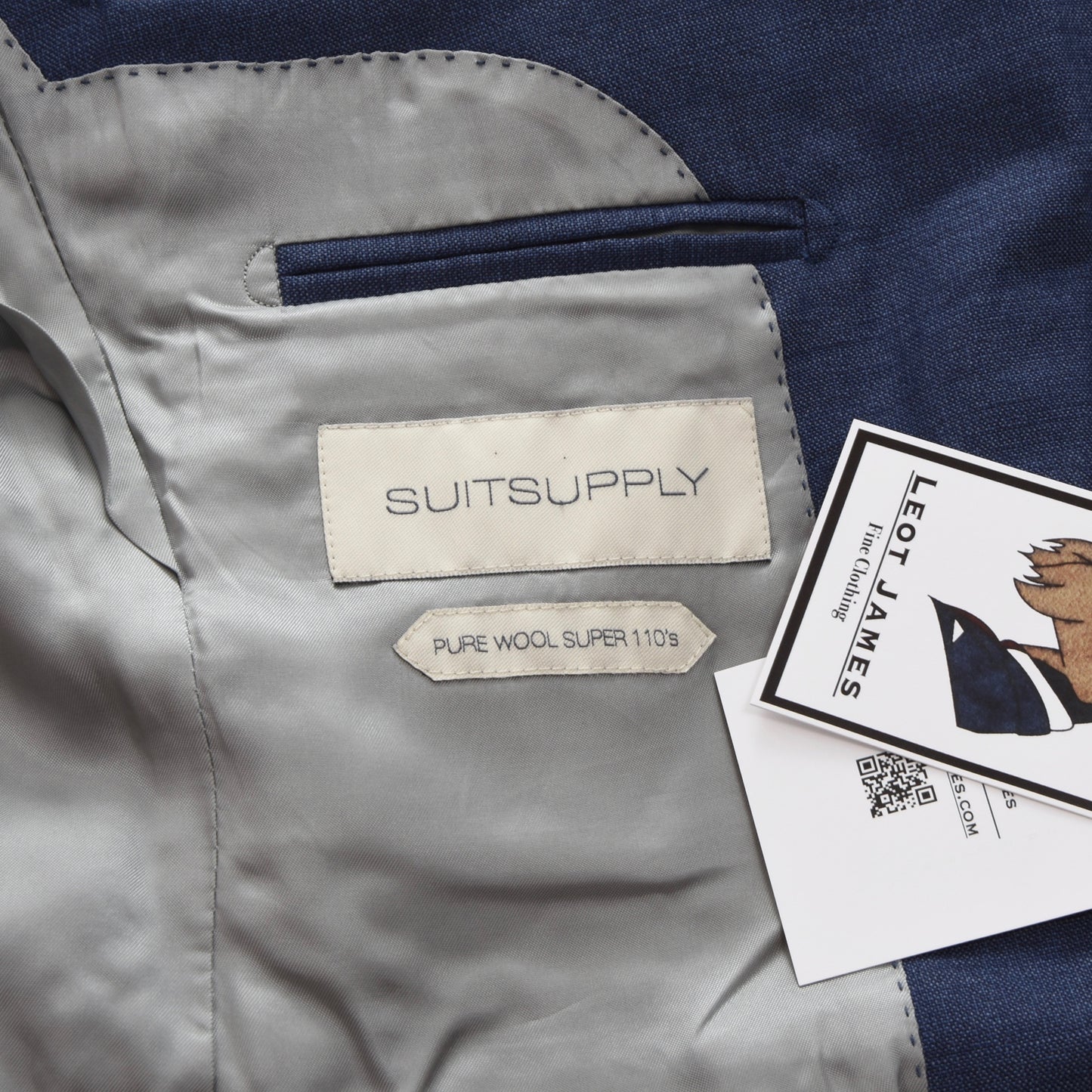Mittelblauer Wollanzug von SuitSupply (Modell: Lazio), Größe 46 schmal. Aus 100 % Super-110s-Wolle.
