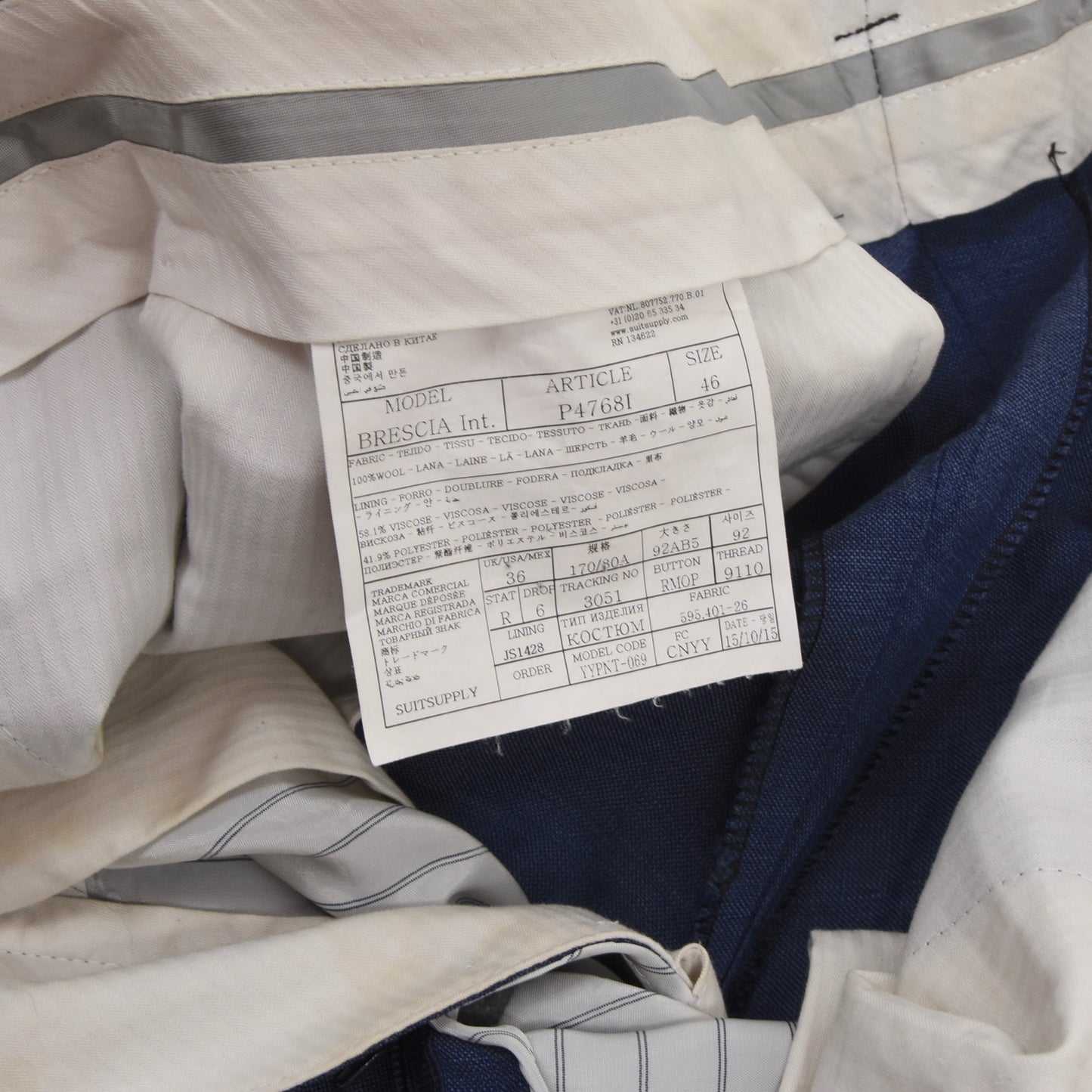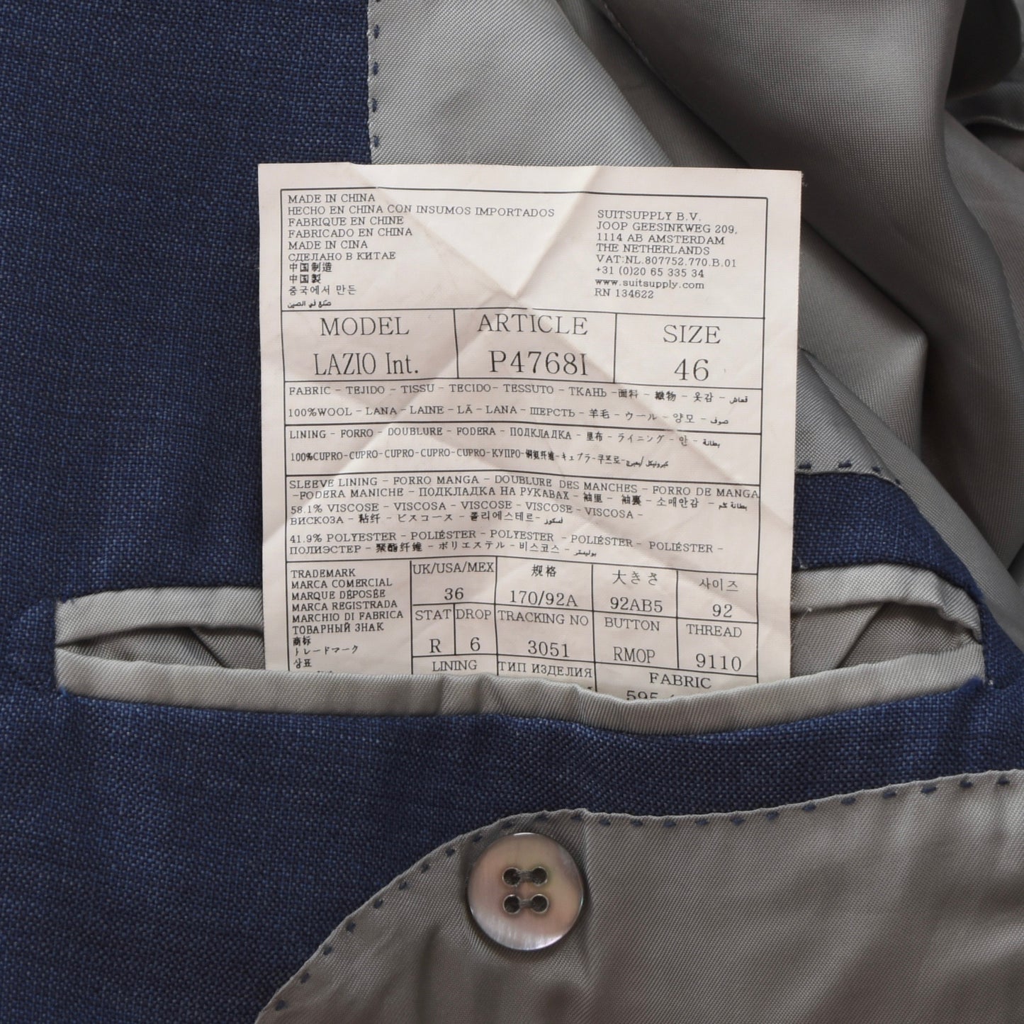 SuitSupply Lazio Wollanzug Größe 46 Slim - Mittelblau