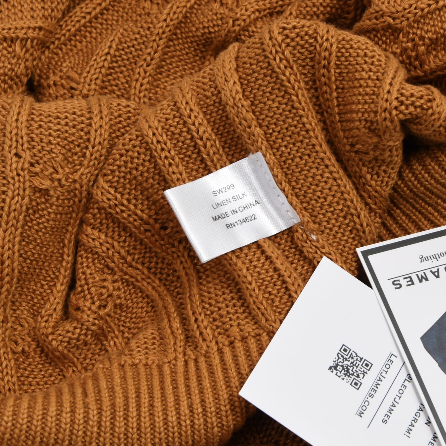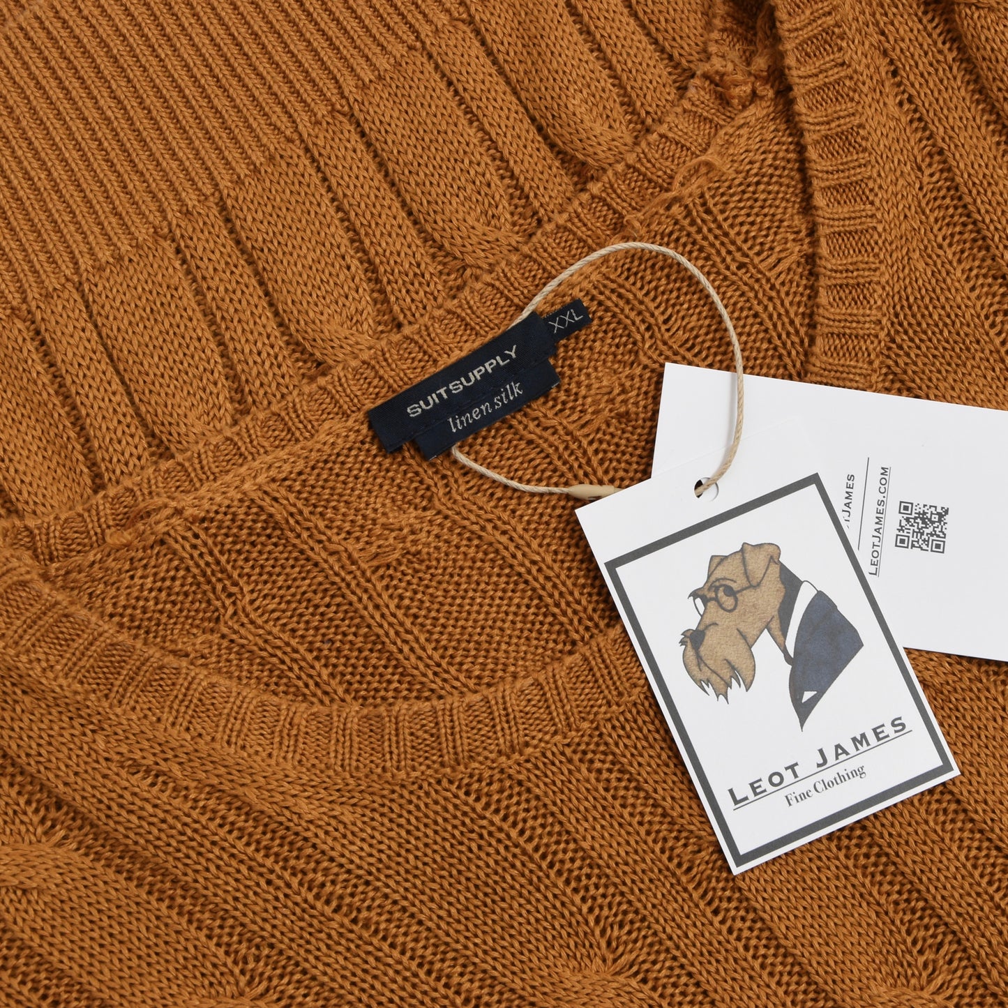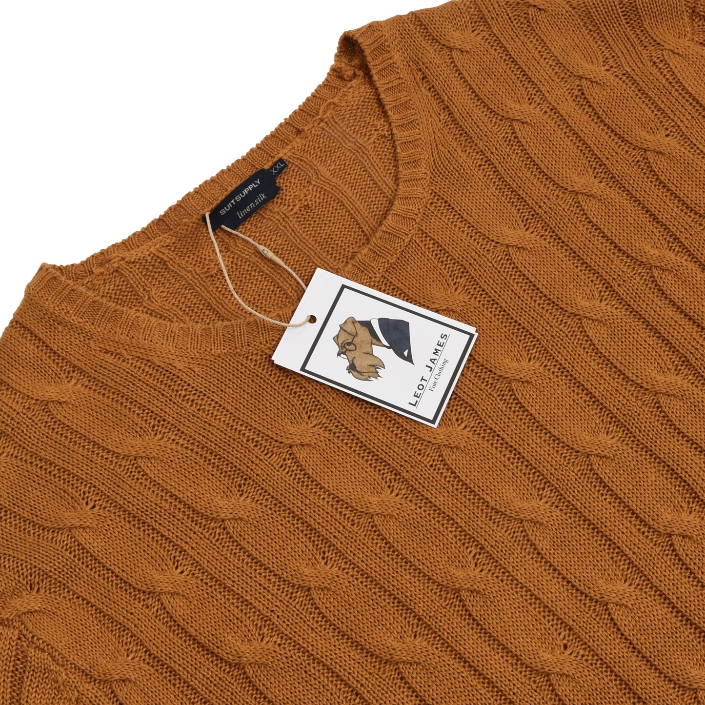 Suitsupply Kabelstrickpullover aus Leinen/Seide Größe XXL - Ocker