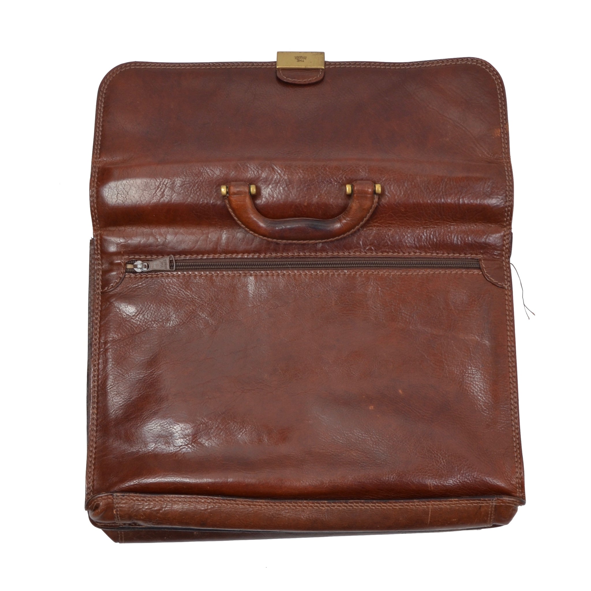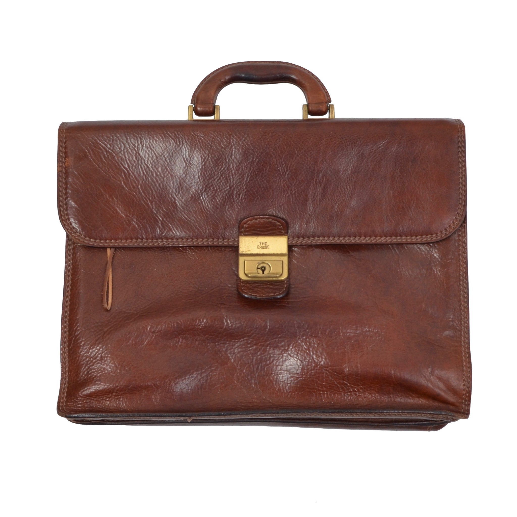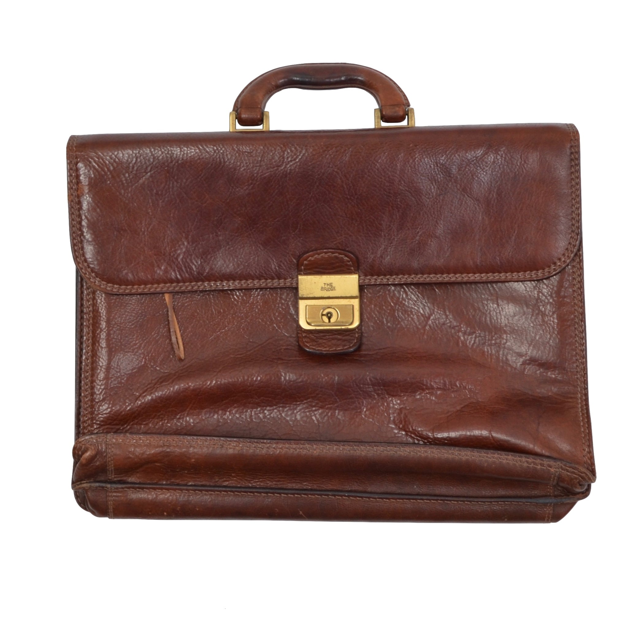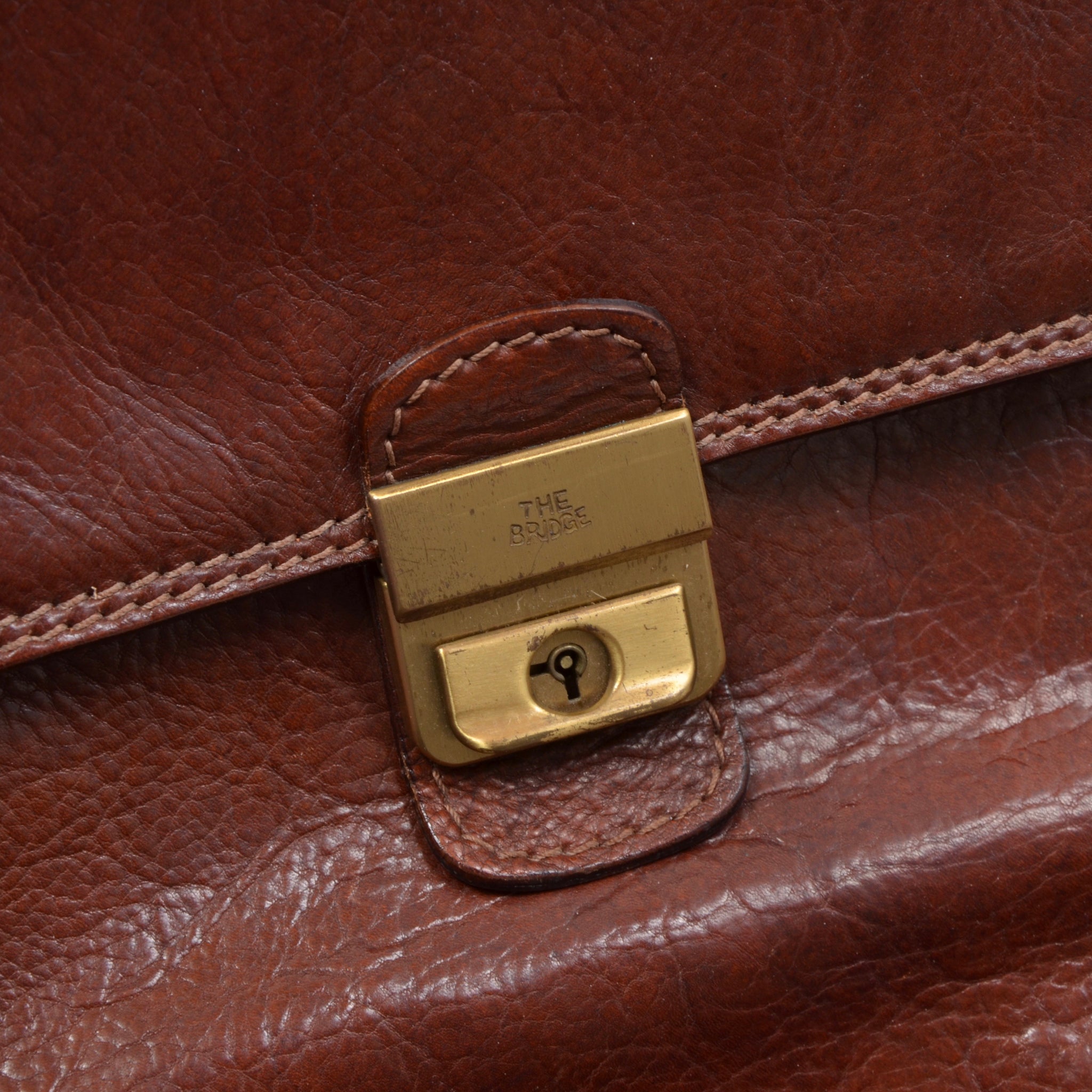 Braune Aktentasche aus Leder von The Bridge mit Messingbeschlägen.