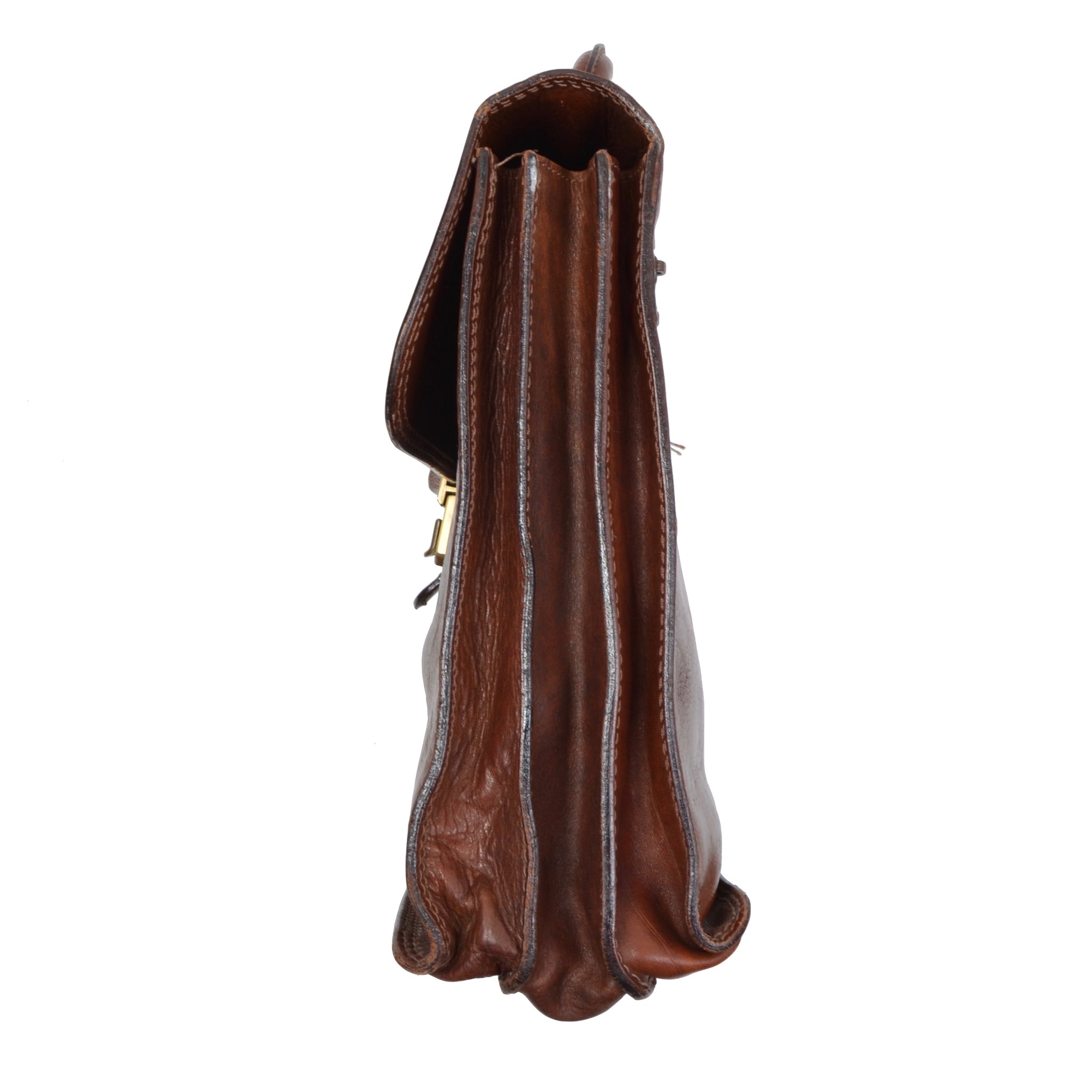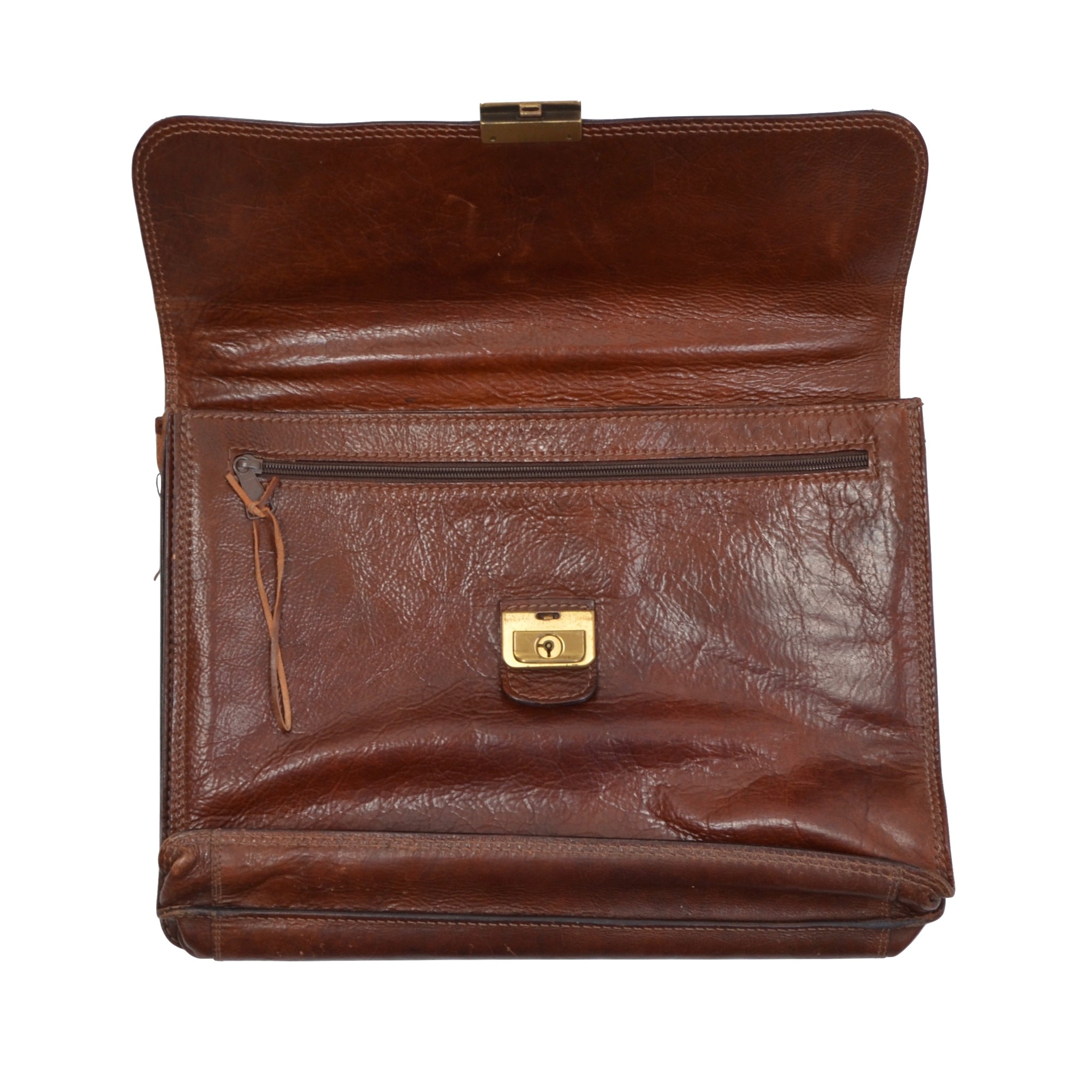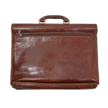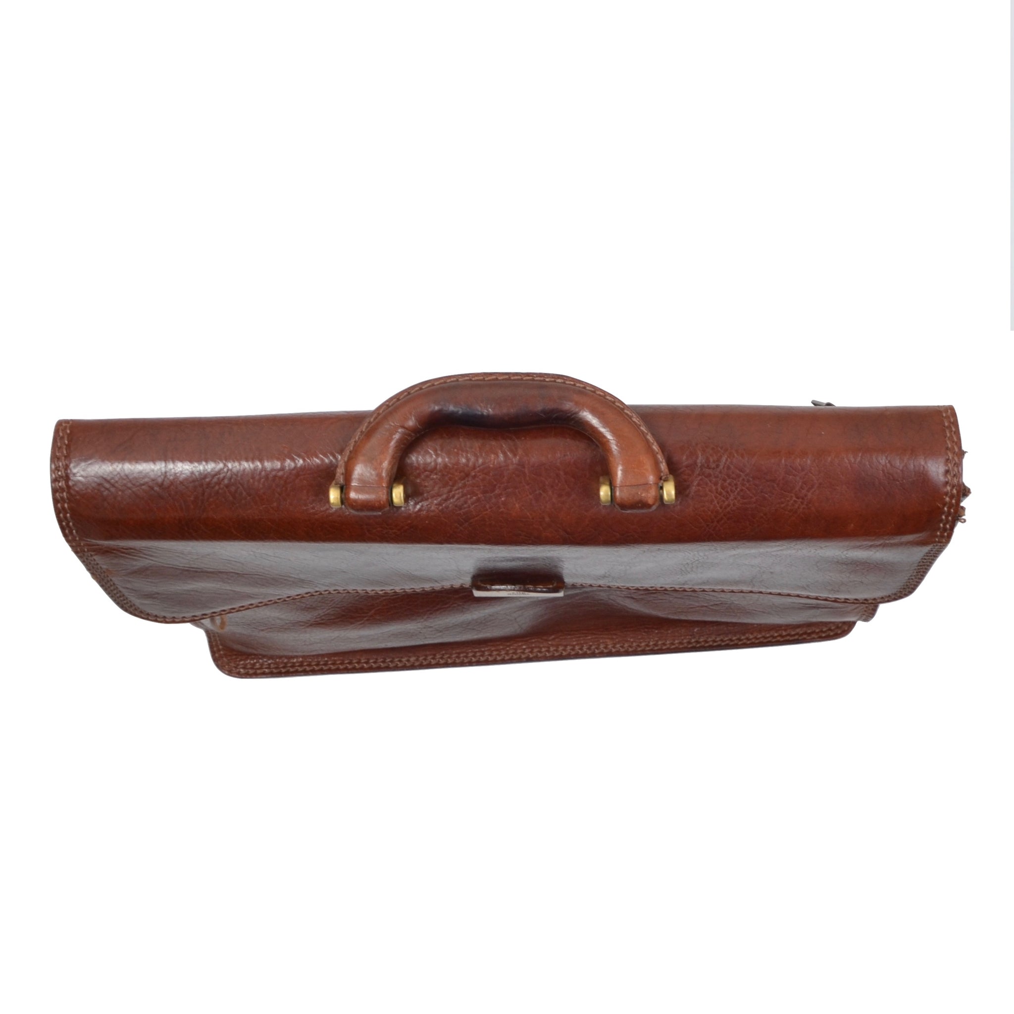 Braune Aktentasche aus Leder von The Bridge mit Messingbeschlägen.