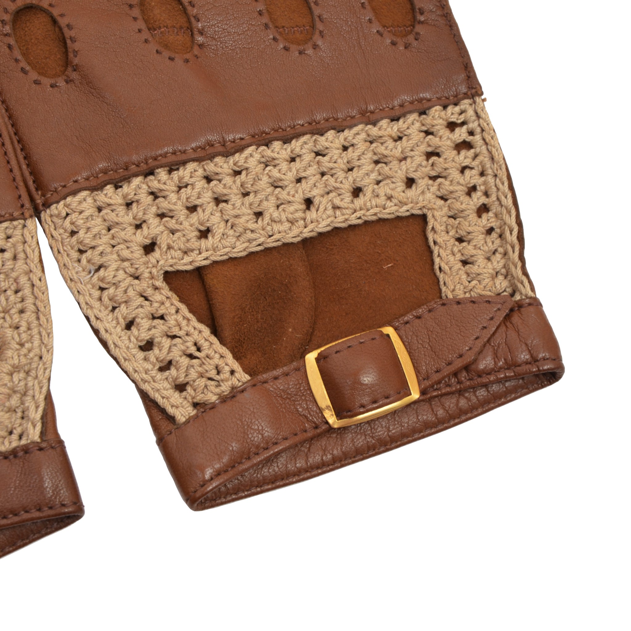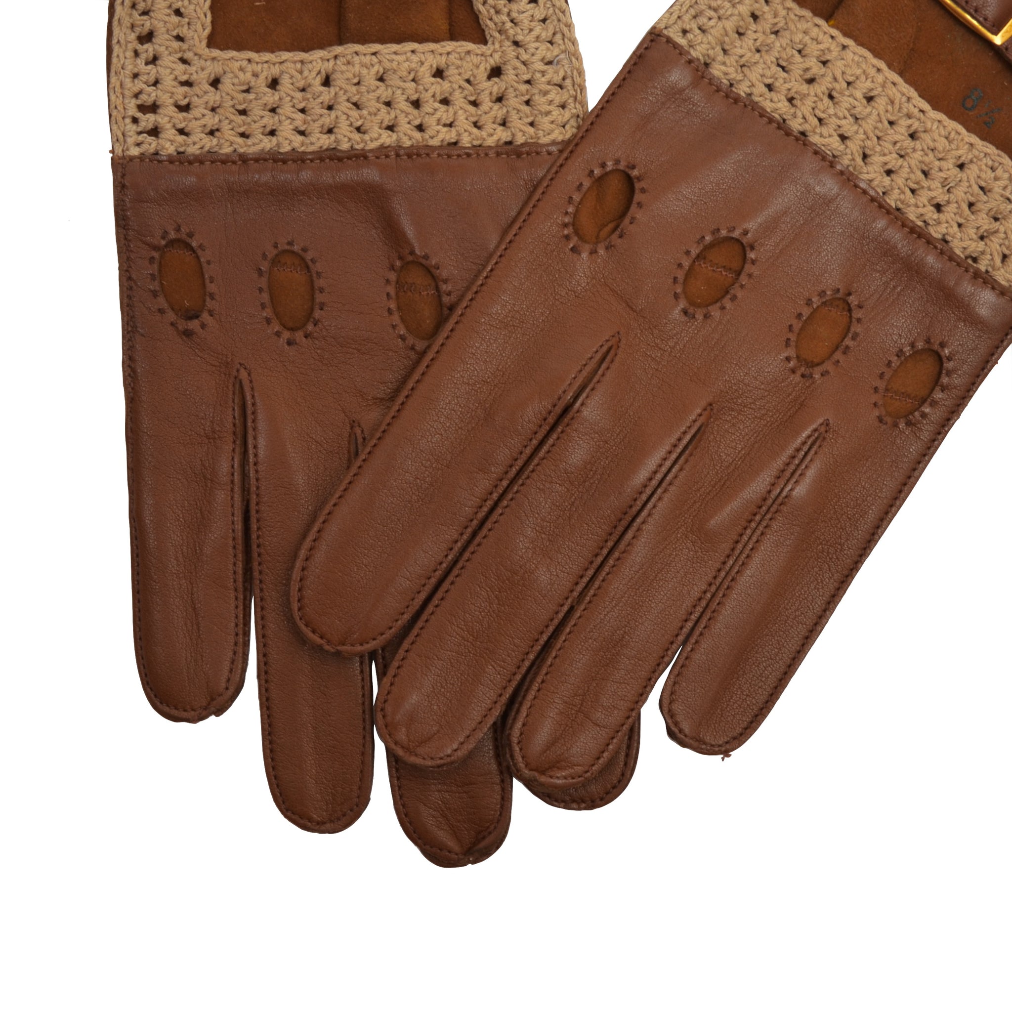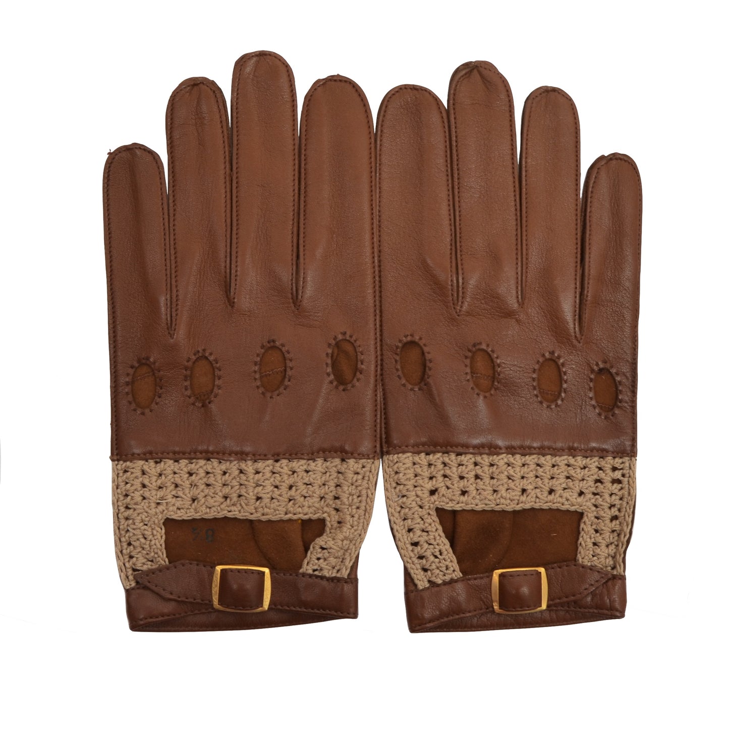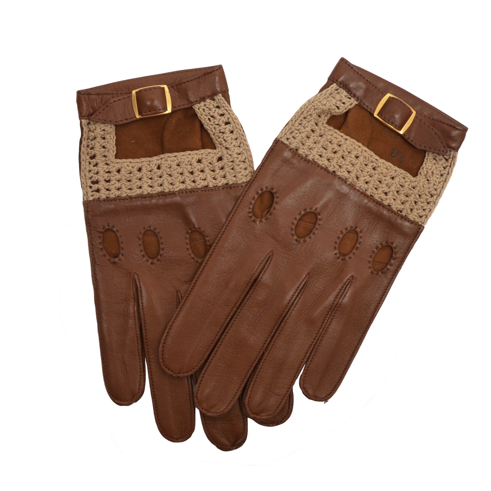 Ungefütterte Leder-/Strick-Fahrerhandschuhe Größe 8,5 - Braun