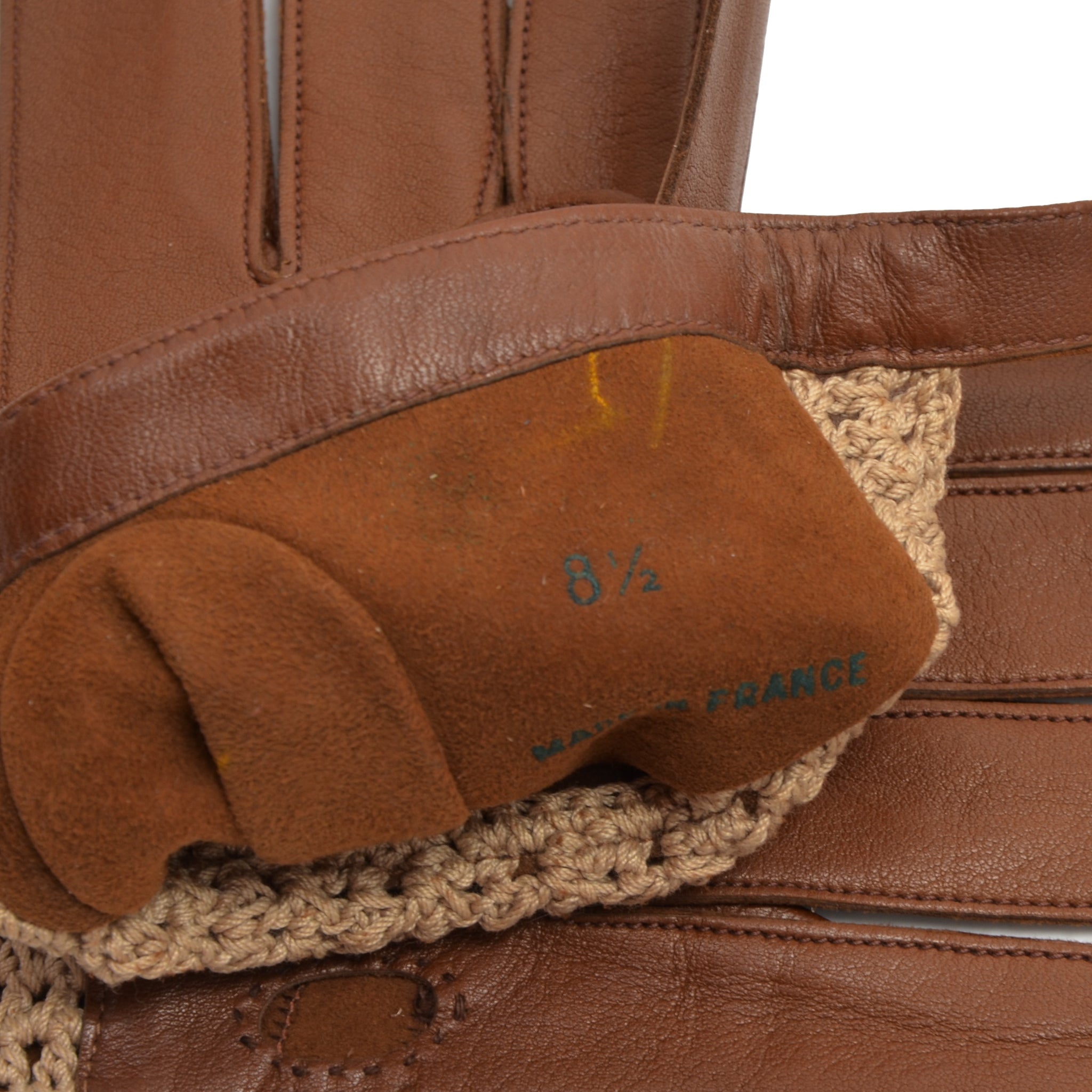 Ungefütterte Autofahrerhandschuhe aus Leder und Strick, Größe 8,5. Hergestellt in Frankreich.